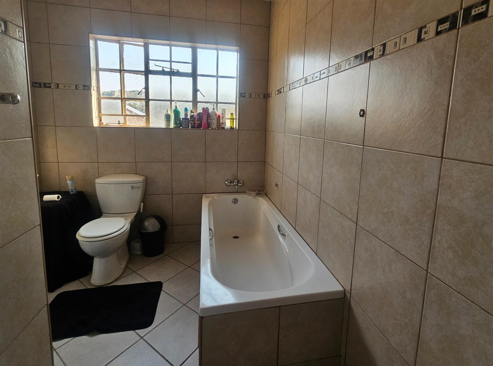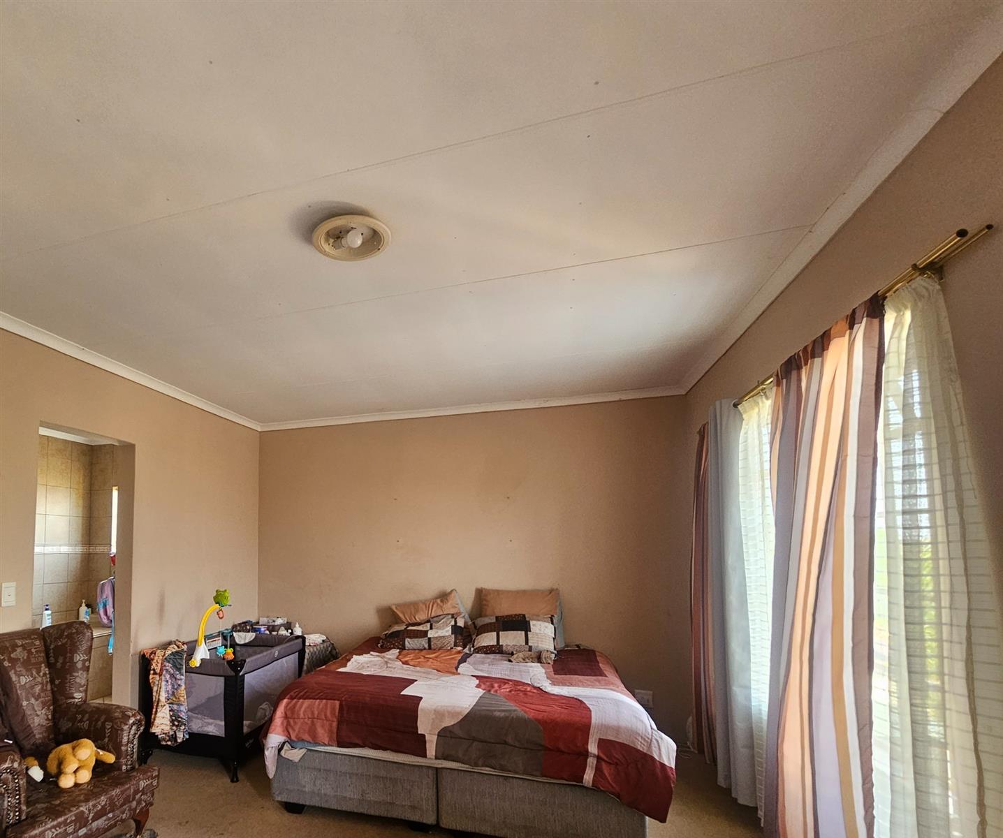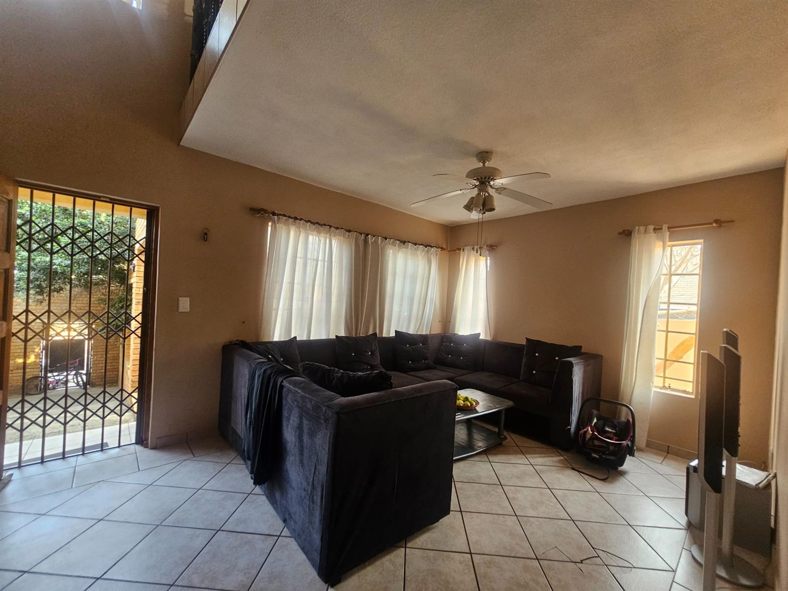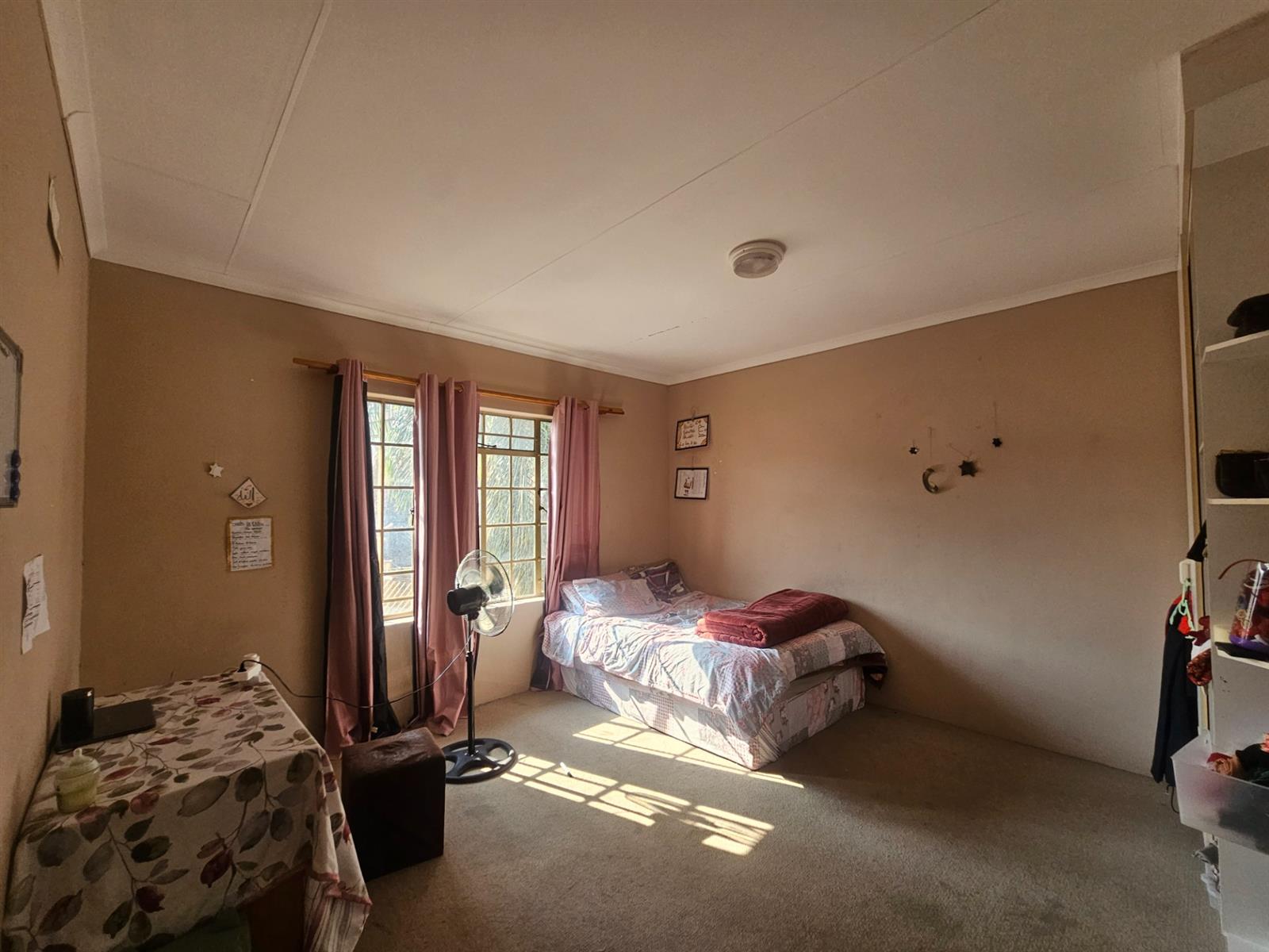 The bedrooms are all fitted with built-in cupboards, providing ample storage space for your belongings. The tiled floors throughout the house add a touch of elegance, while the carpeted bedrooms provide a cozy and comfortable feel. The steel windows and plaster walls give the house a modern and stylish look.
