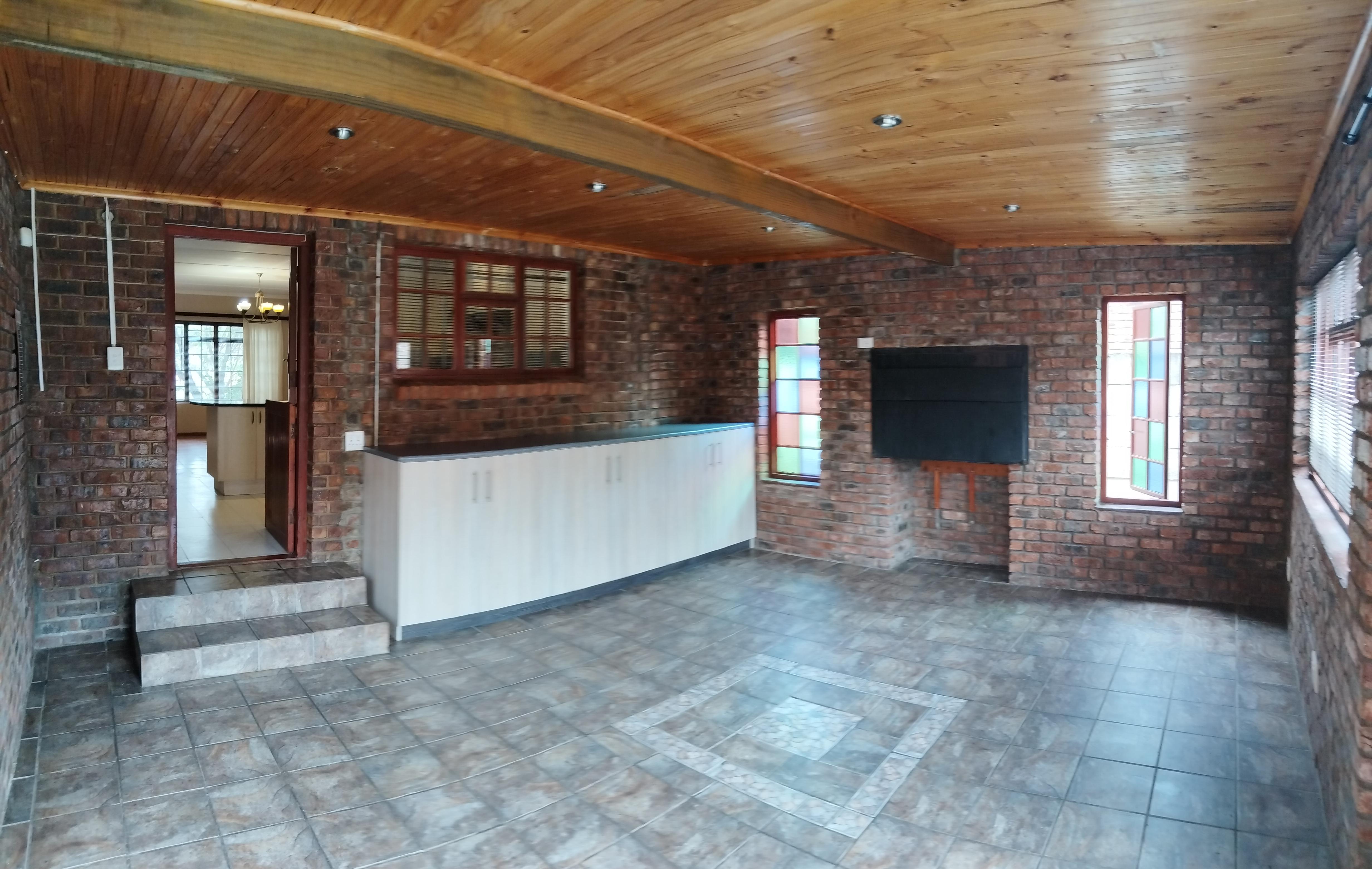 Flowing seamlessly from the kitchen is a lovely indoor braai area — perfect for entertaining all year round — with a beautiful outlook over the swimming pool, making it ideal for relaxed family gatherings and weekend get-togethers.