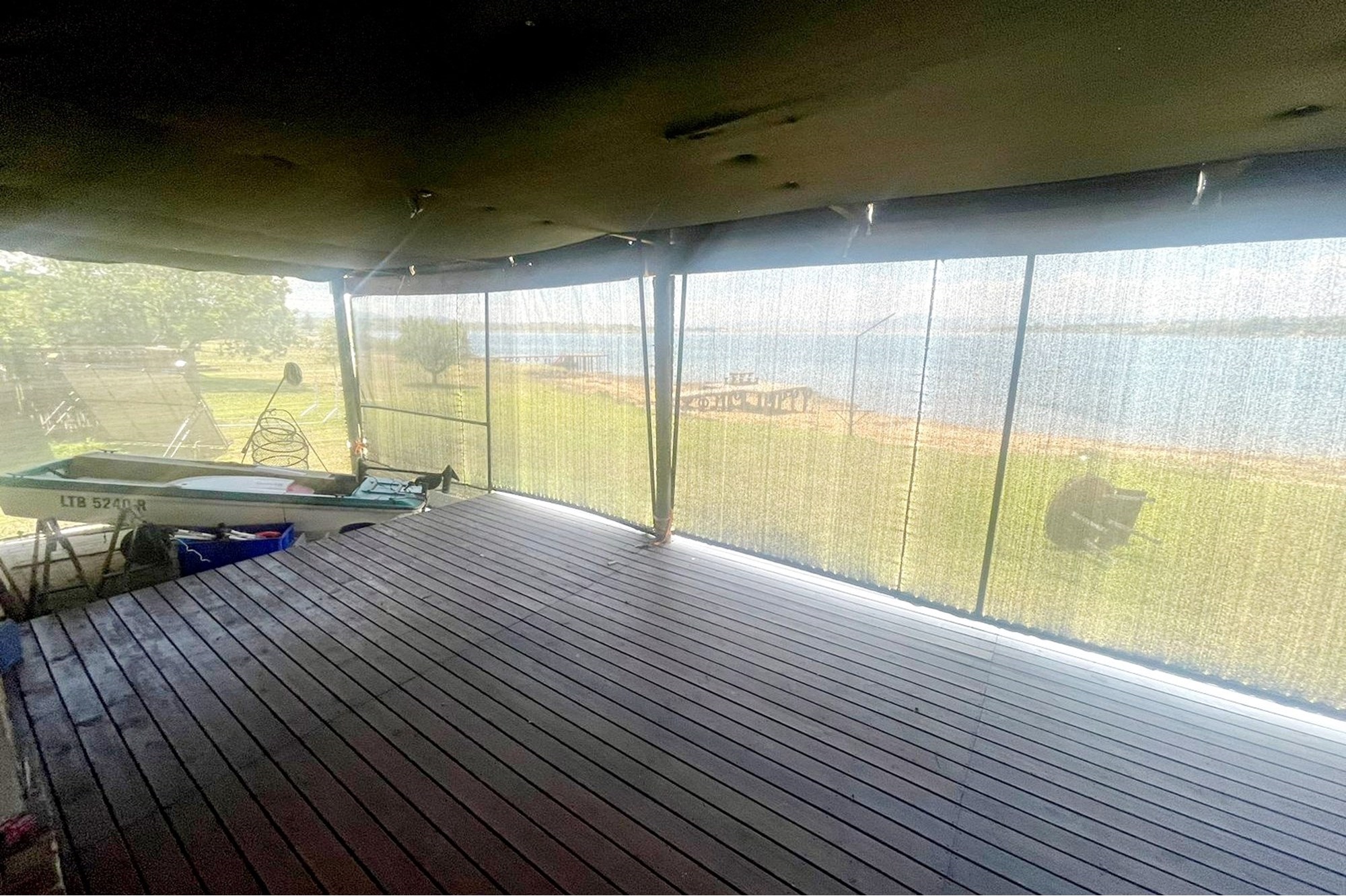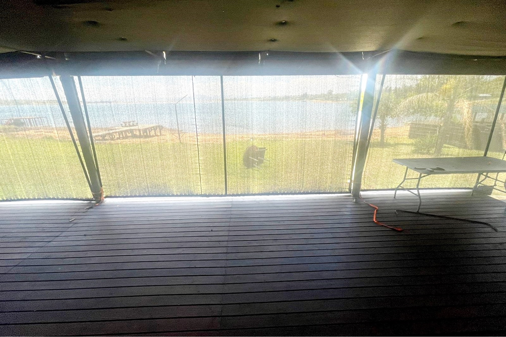 The house features open plan living with 2 bathrooms and comes partially furnished, with a large patio, just a few meters away from the water. mix of wood furniture and glass siding that invites natural light throughout.