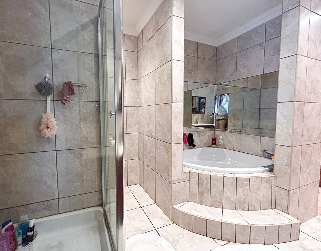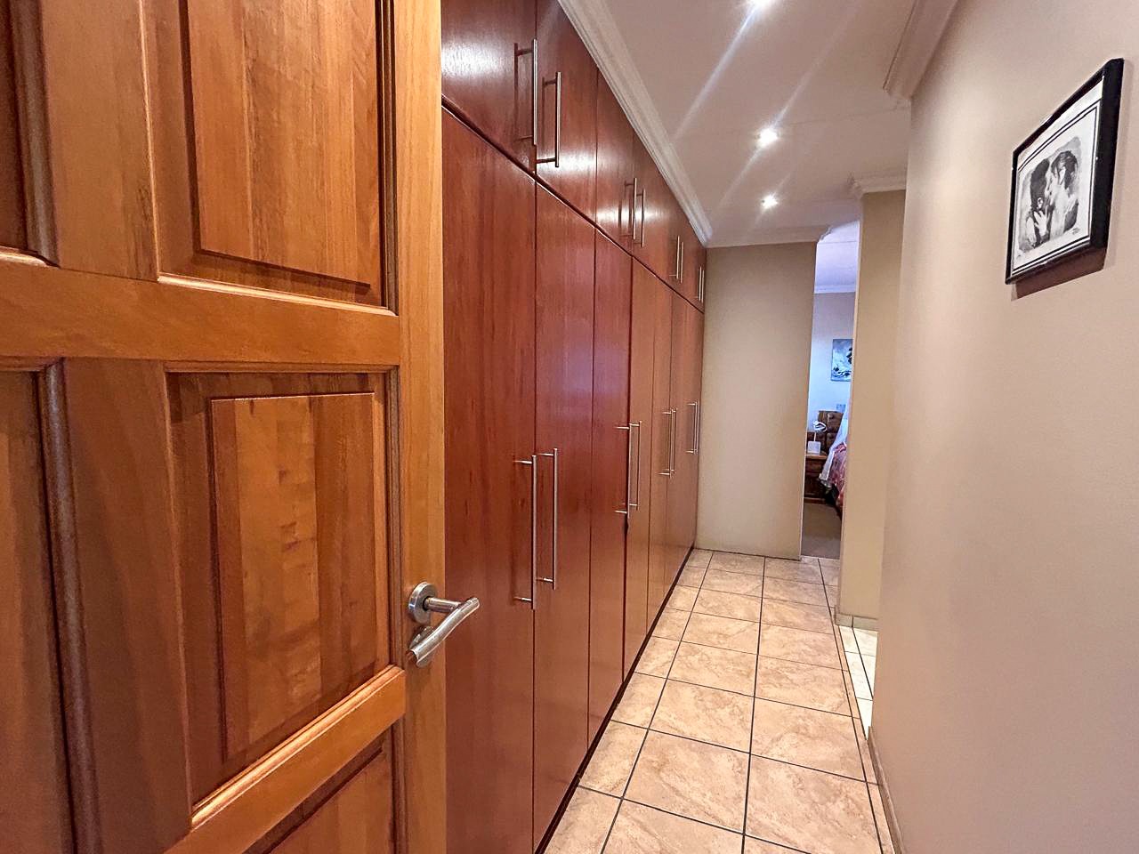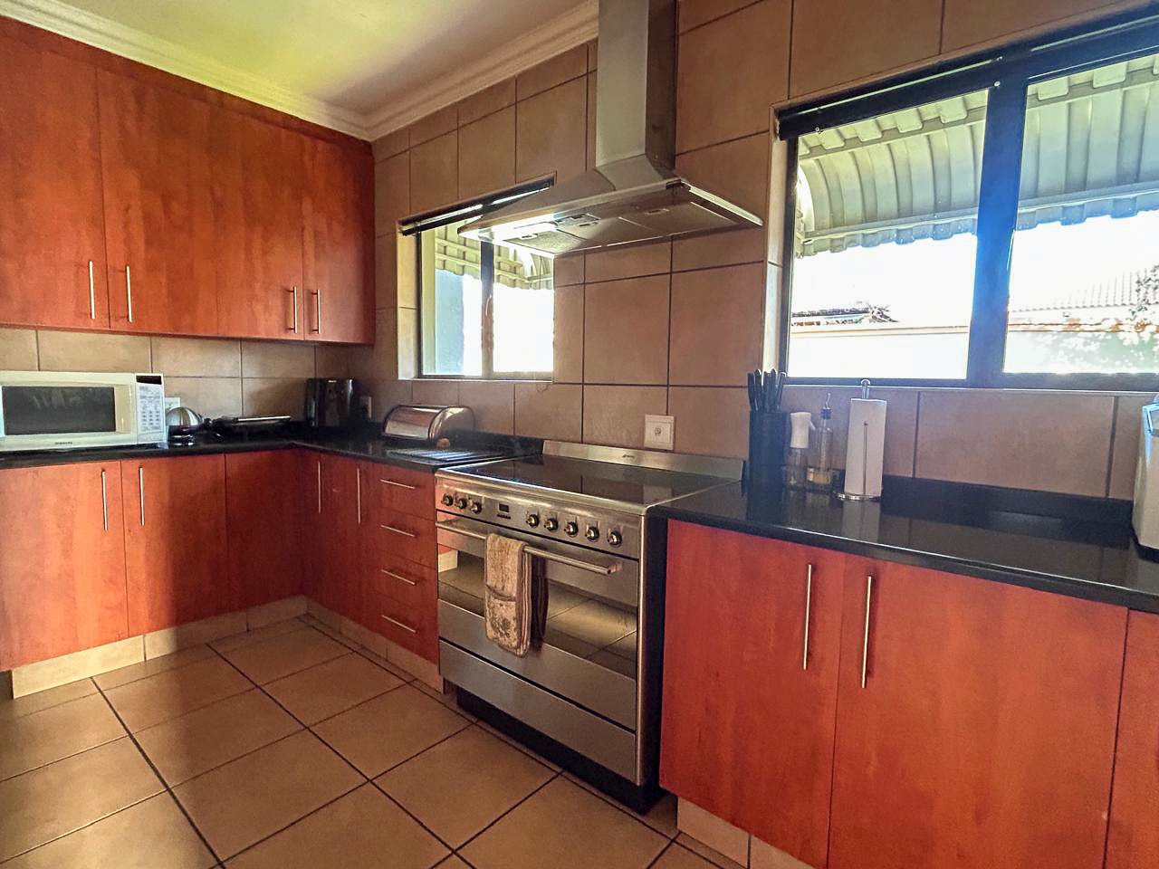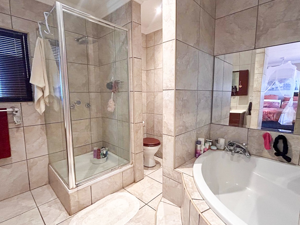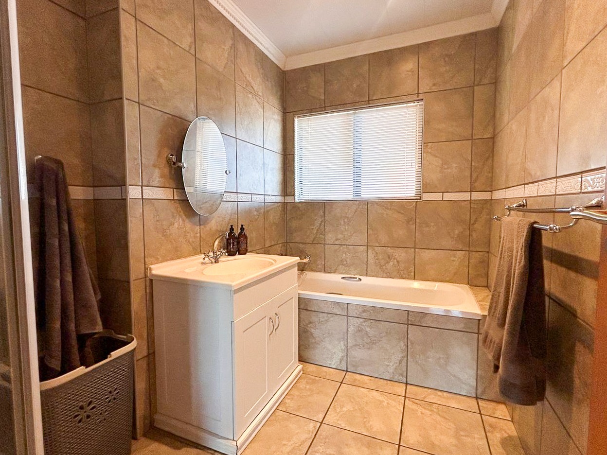 Step into a world of space and style, where sun-filled, open-plan living and dining areas create an inviting atmosphere, ideal for both intimate gatherings and grand-scale entertaining. A built-in bar adds a touch of luxury, while the sprawling covered patio—complete with a built-in braai and jacuzzi—effortlessly extends onto the pristine pool area, offering the perfect setting for alfresco dining and relaxation.