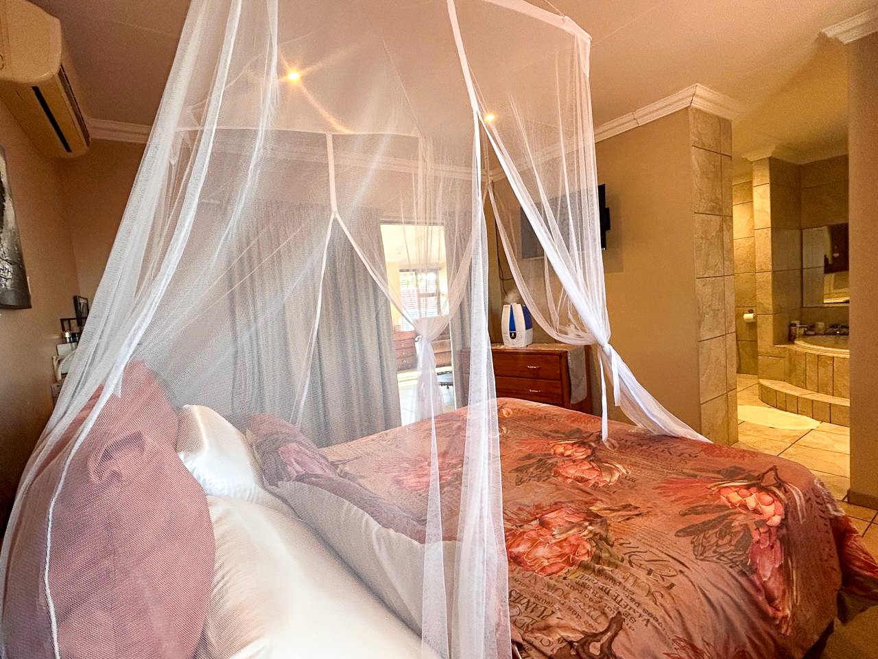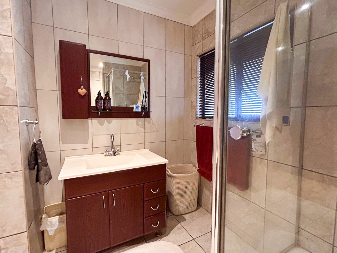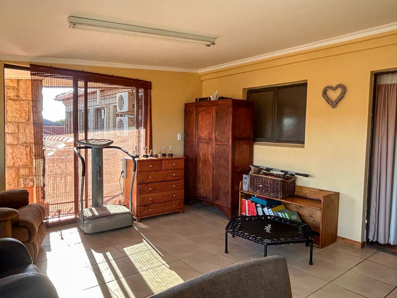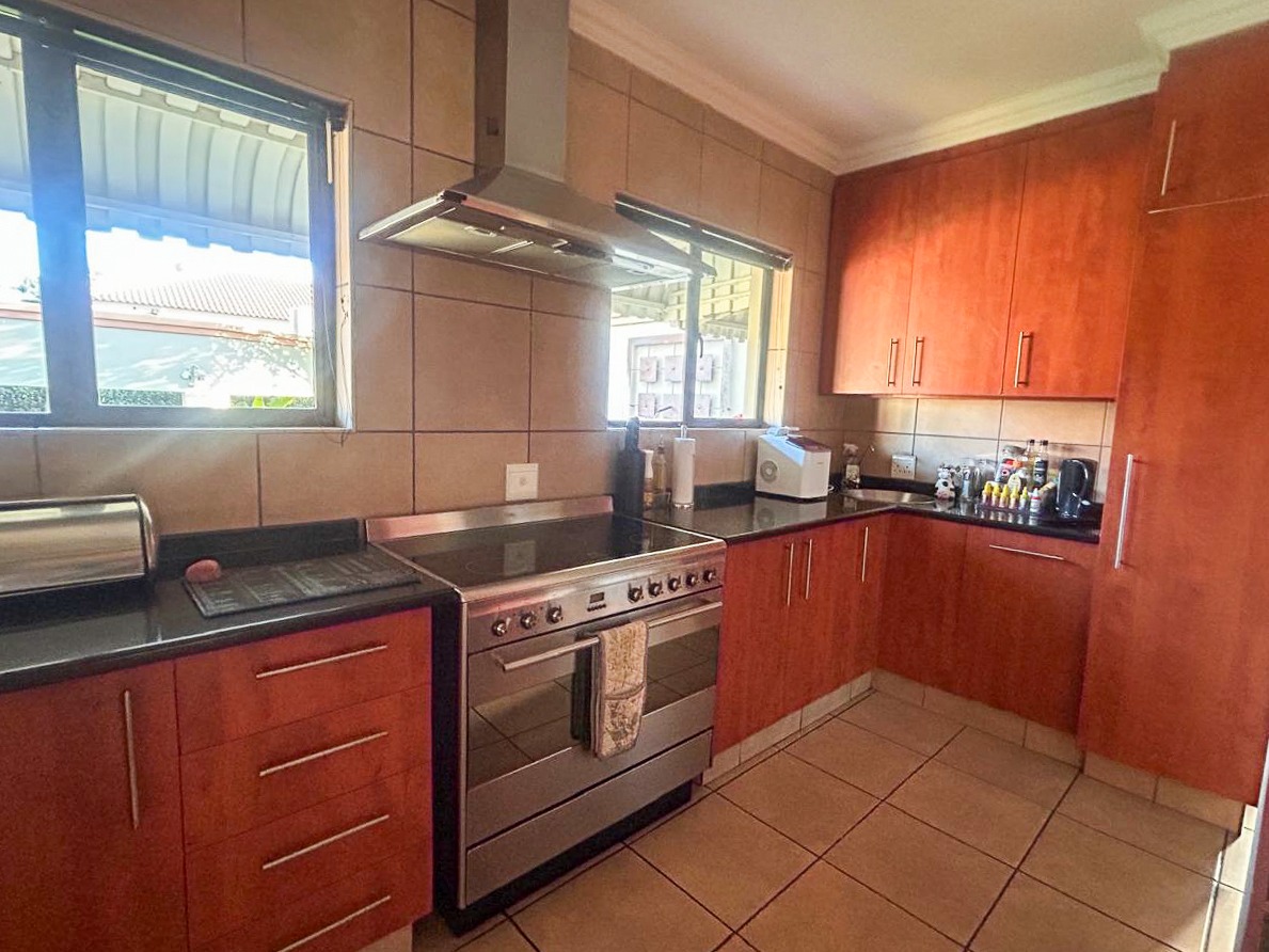 Step into a world of space and style, where sun-filled, open-plan living and dining areas create an inviting atmosphere, ideal for both intimate gatherings and grand-scale entertaining. A built-in bar adds a touch of luxury, while the sprawling covered patio—complete with a built-in braai and jacuzzi—effortlessly extends onto the pristine pool area, offering the perfect setting for alfresco dining and relaxation.