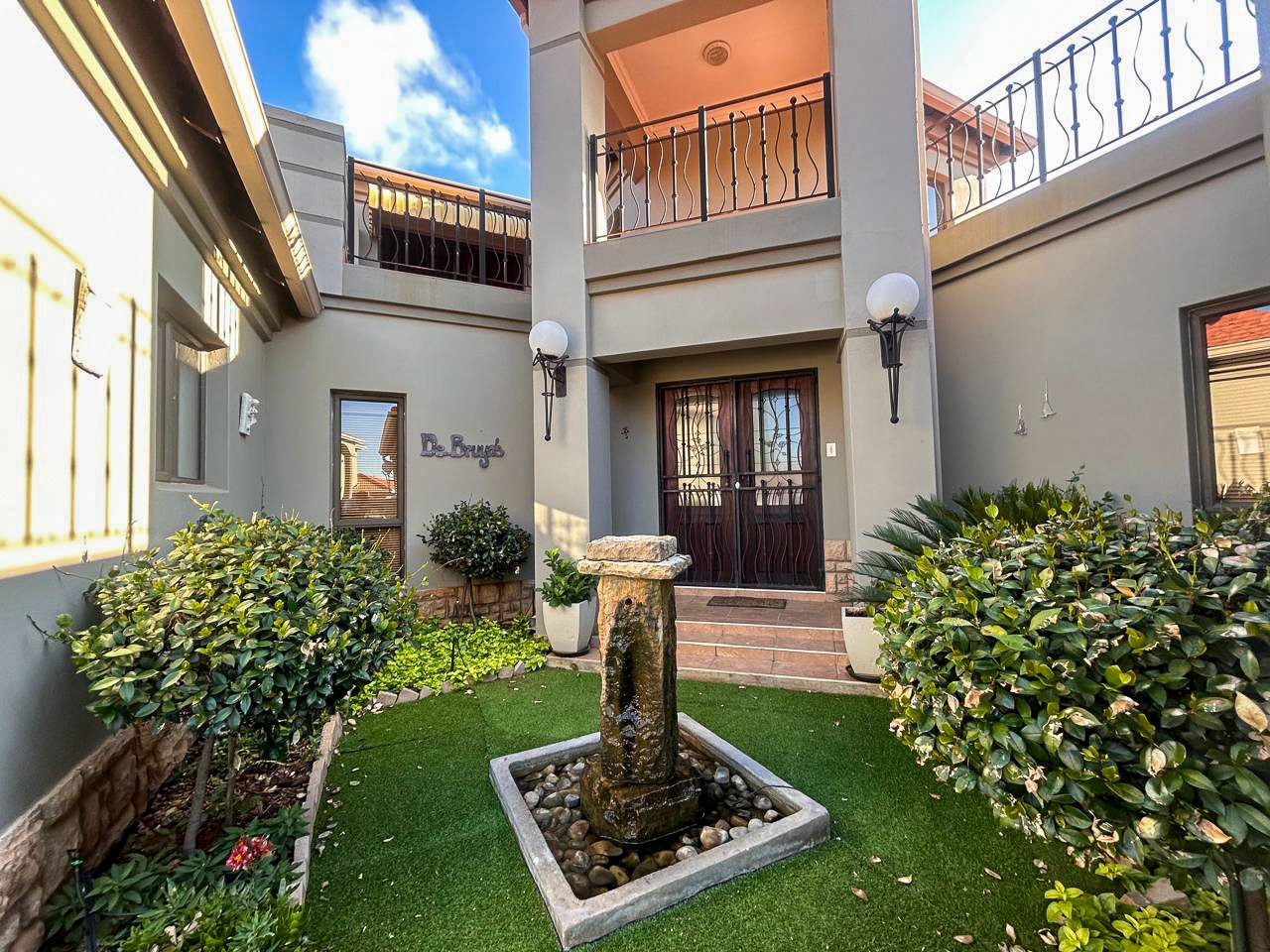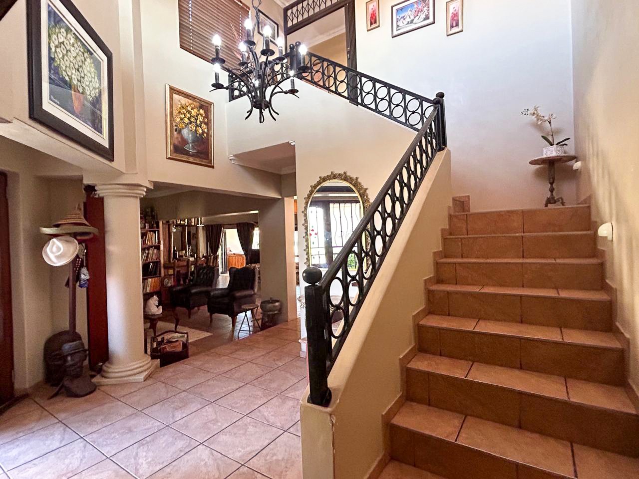 For the discerning homeowner, five automated garages ensure ample space for vehicles and storage. Sustainable and self-sufficient, this property includes a high-yield borehole with a water tank, a full solar energy system with panels, battery backup, and an inverter—offering true off-the-grid living.