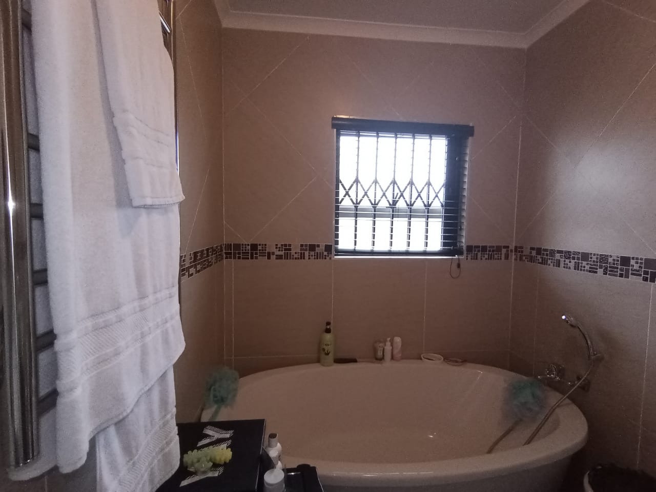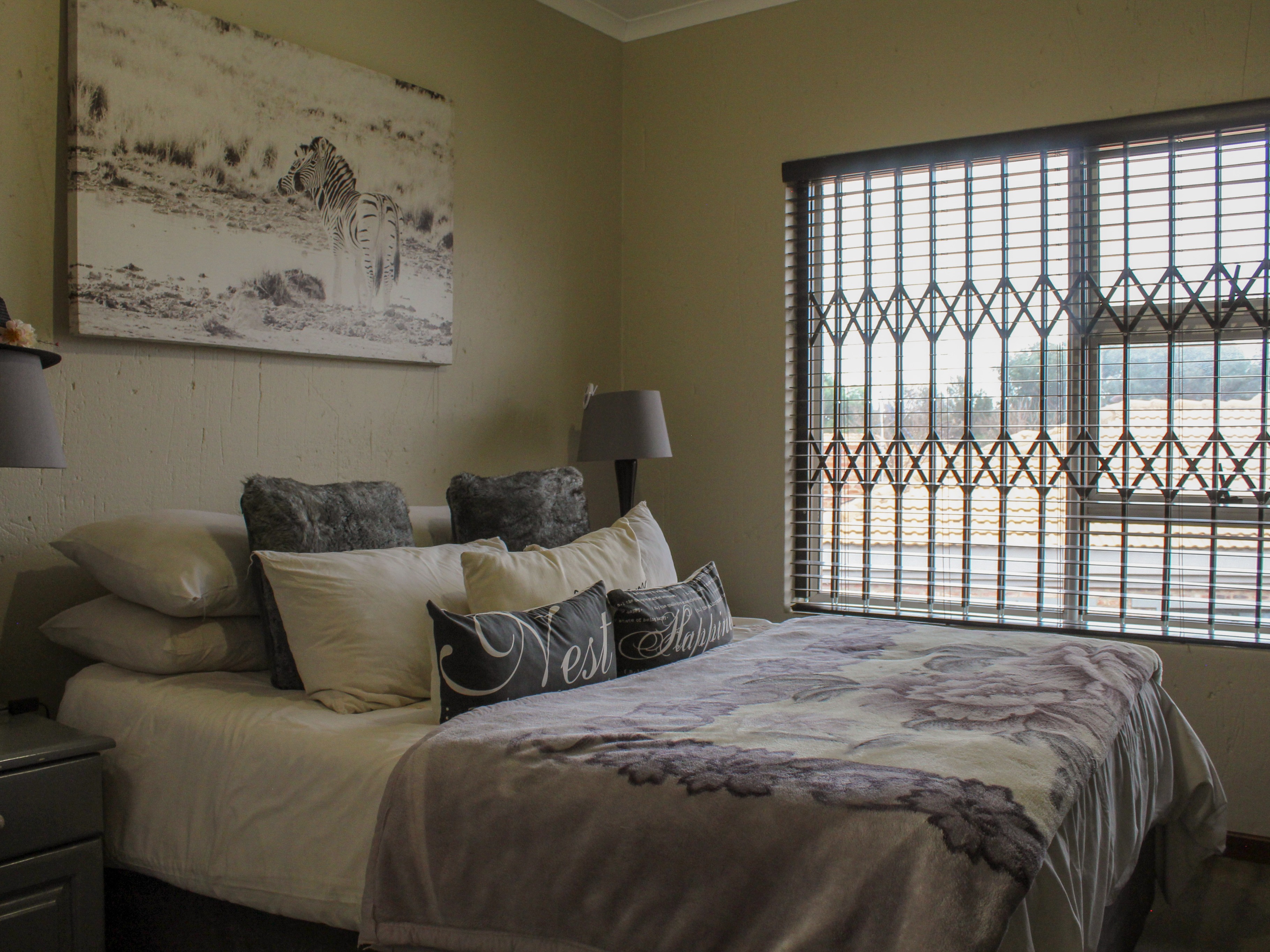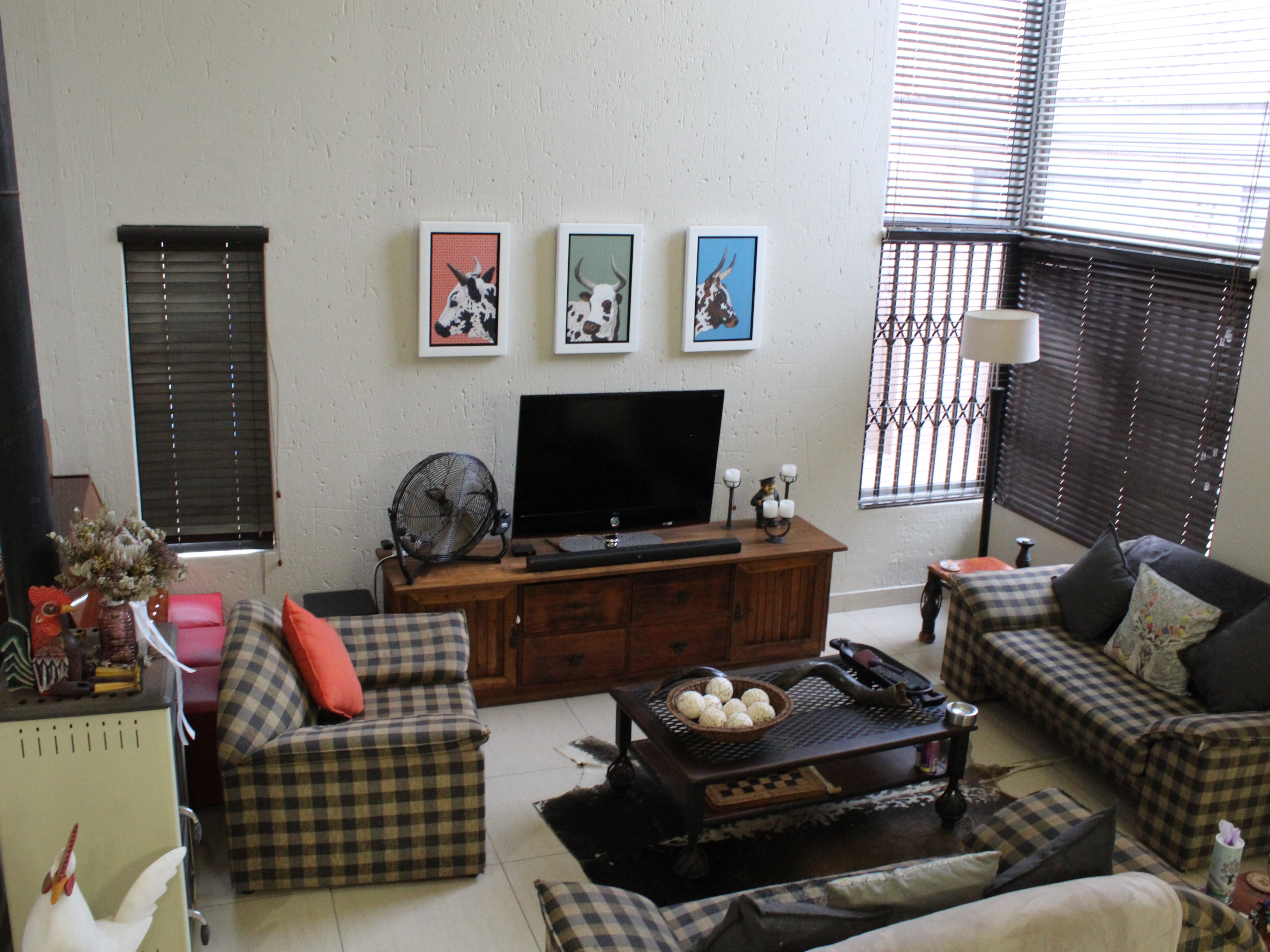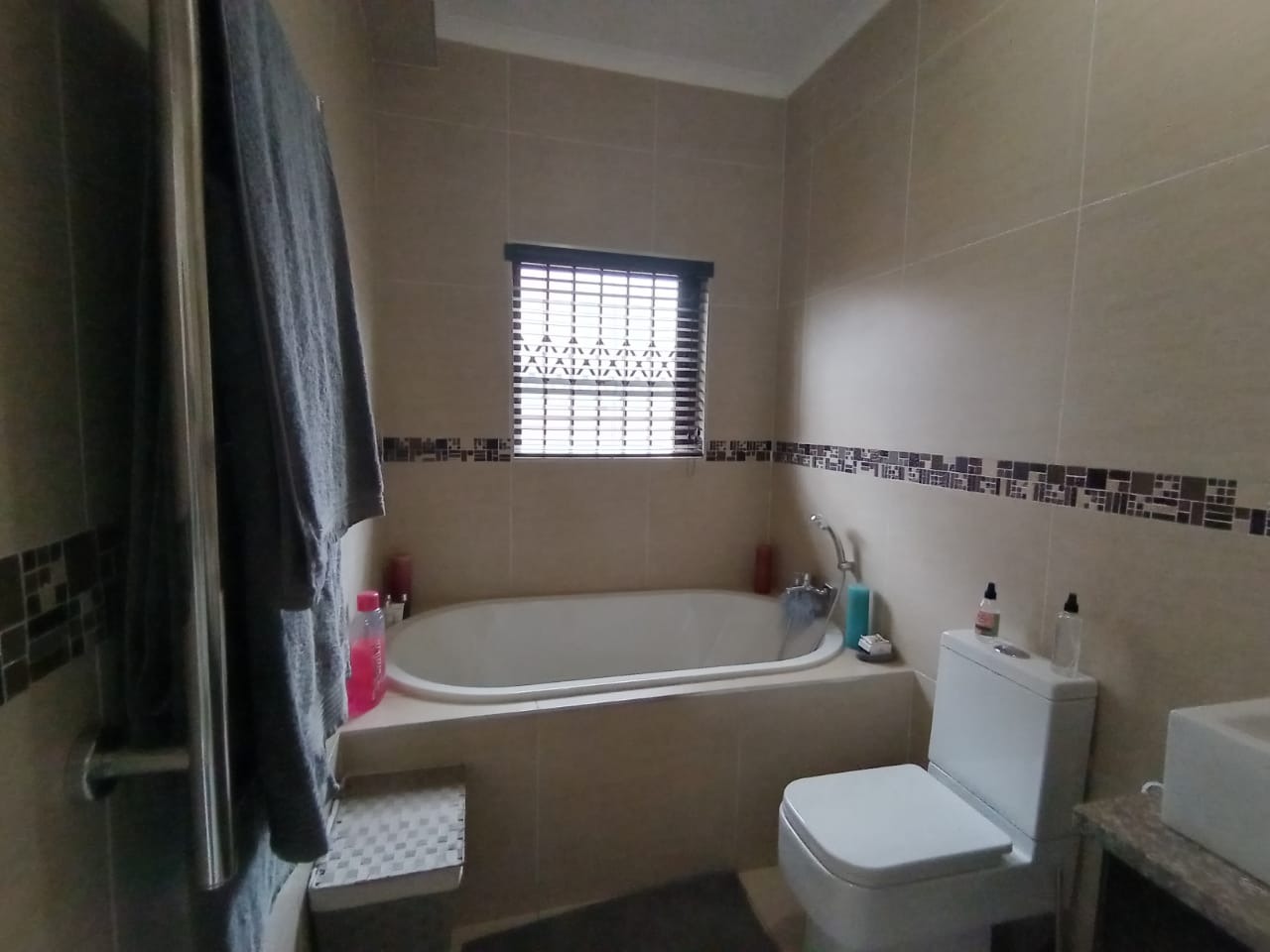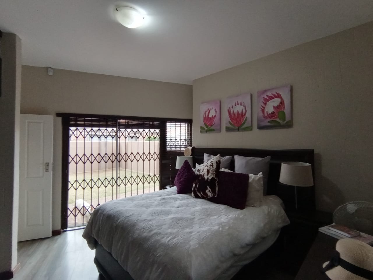 This modern double-storey home has so much to offer, including open plan living areas downstairs with tastefully finished open-plan kitchen with granite tops, oven, hob and extractor fan and separate scullery and laundry. A built-in braai with separate working space is ideally placed in the living area, with doors leading to the garden.