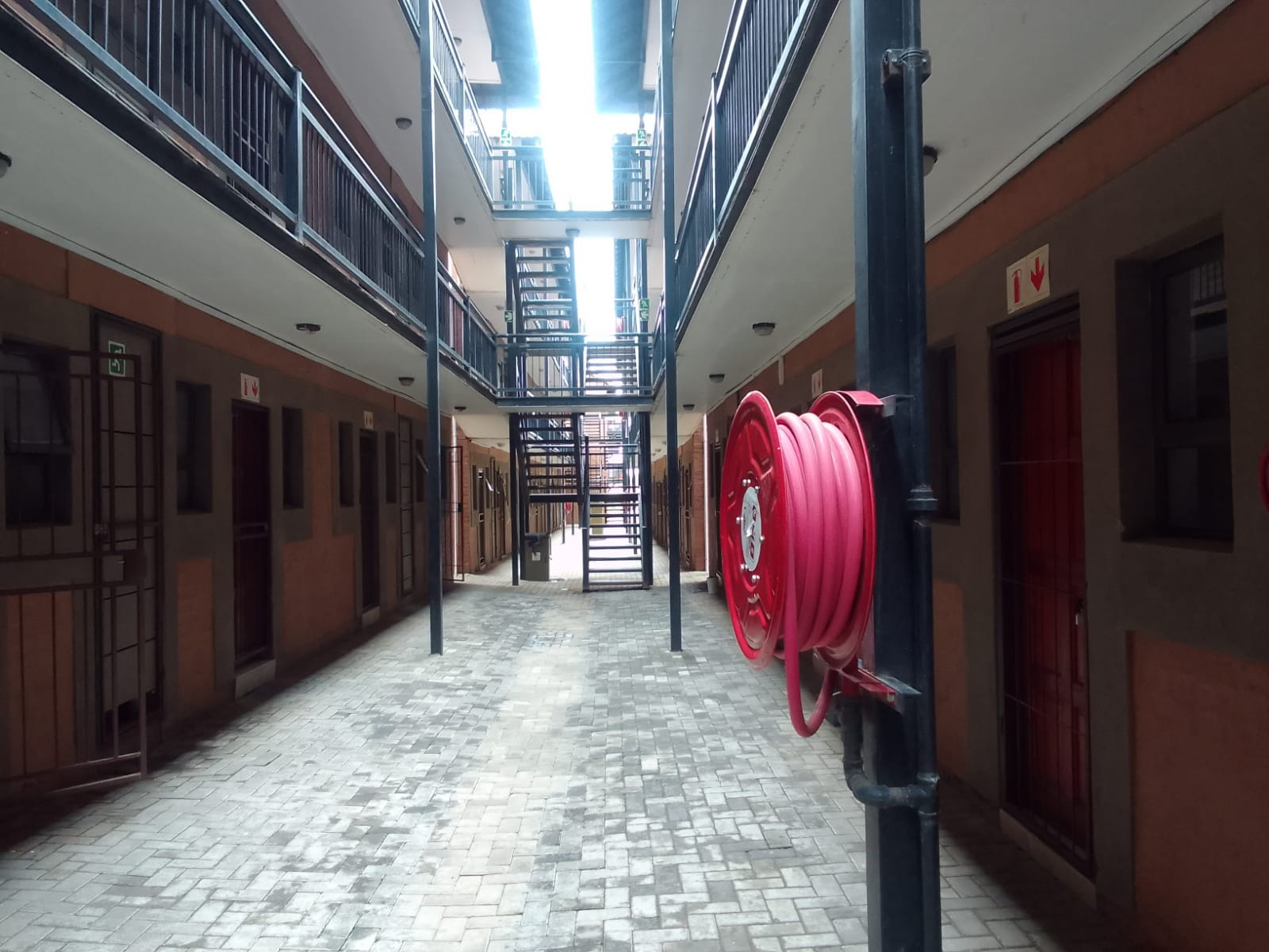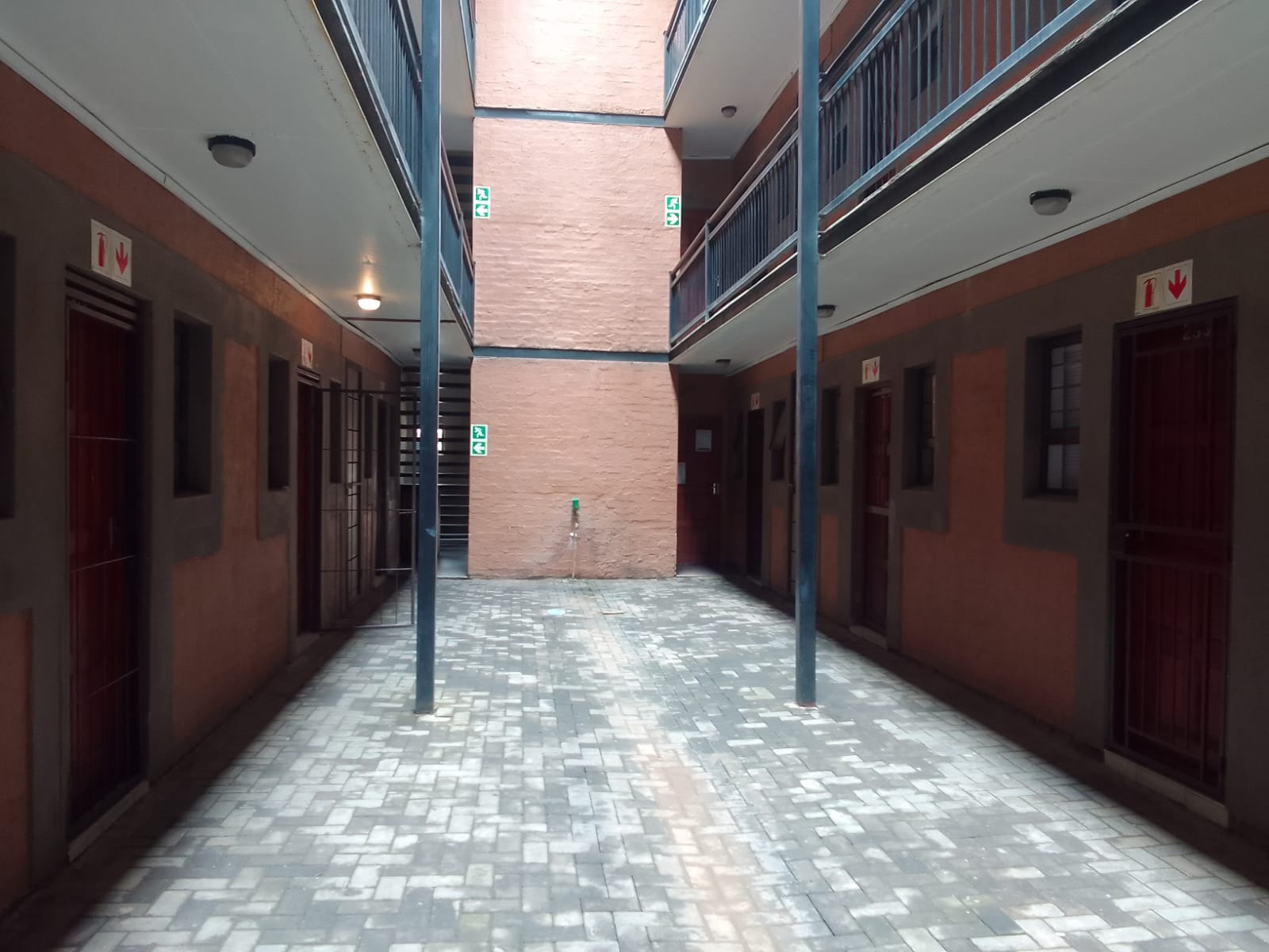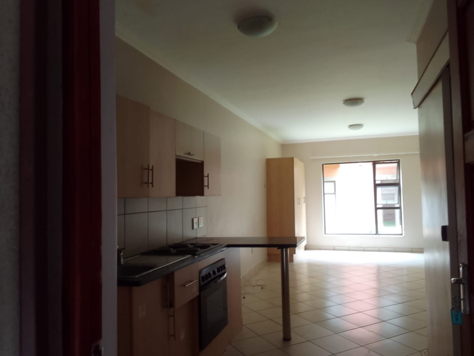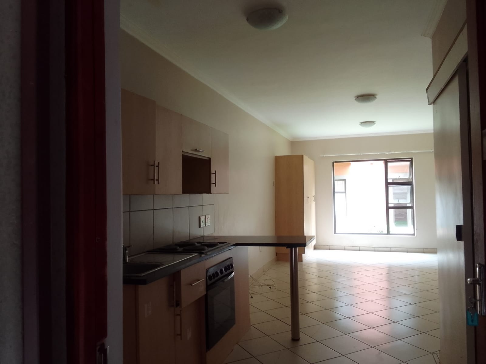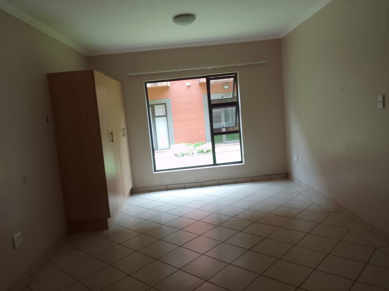 This open-plan bachelor apartment with air-conditioning is now available for sale, offering a modern and convenient living space. This unit features a combined bedroom and living area, along with a well-appointed bathroom including a shower, basin, and toilet.