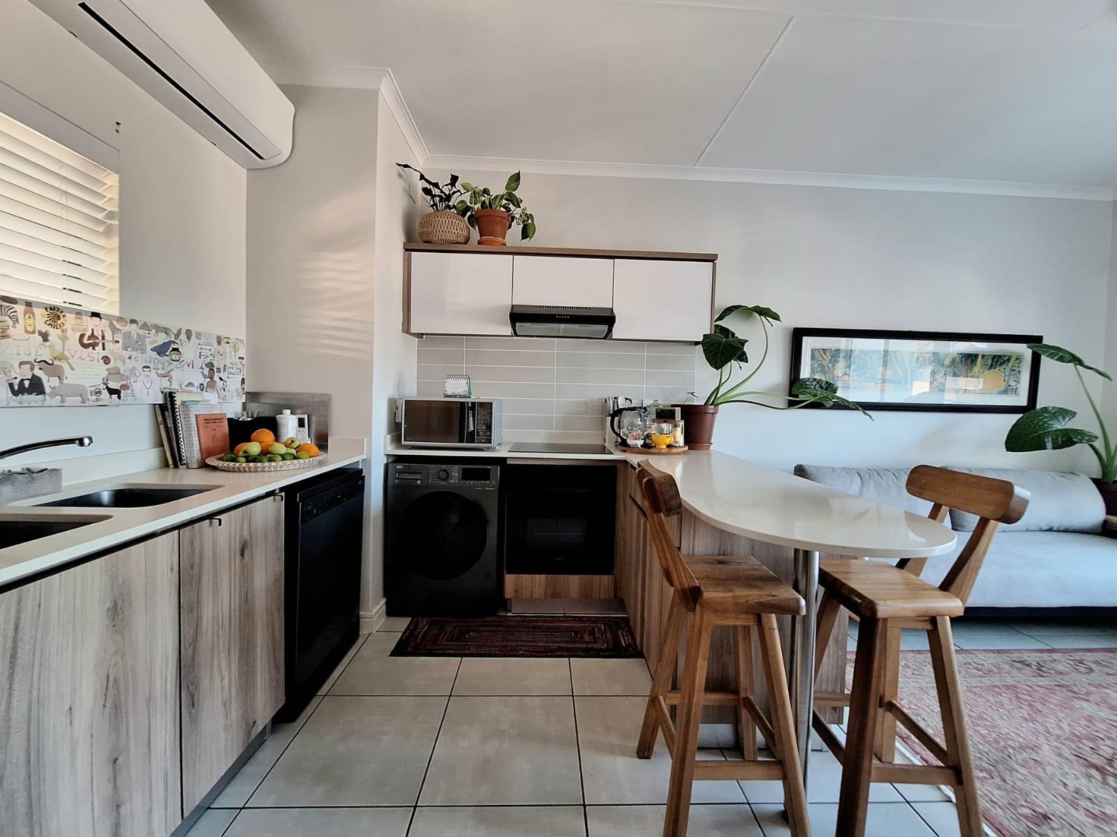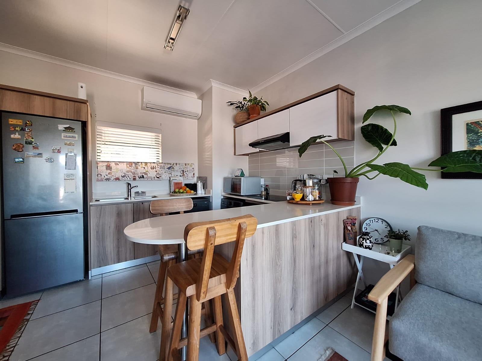 The apartment is almost stepless, with only a few steps leading to the front door, making it ideal for easy everyday living. The open-plan layout flows seamlessly onto a balcony where you can soak in the views and coastal breeze. Air-conditioning ensures year-round comfort.