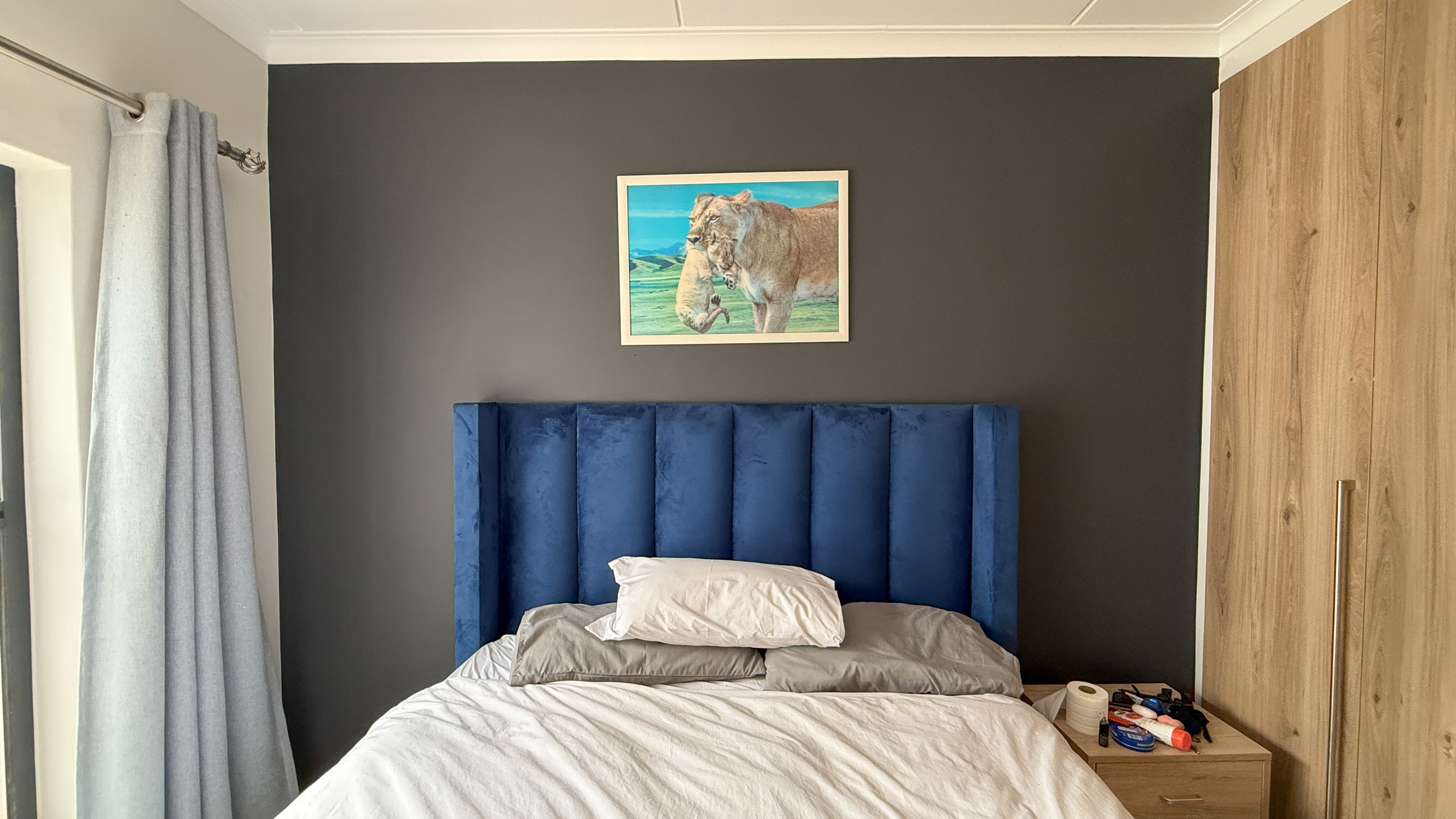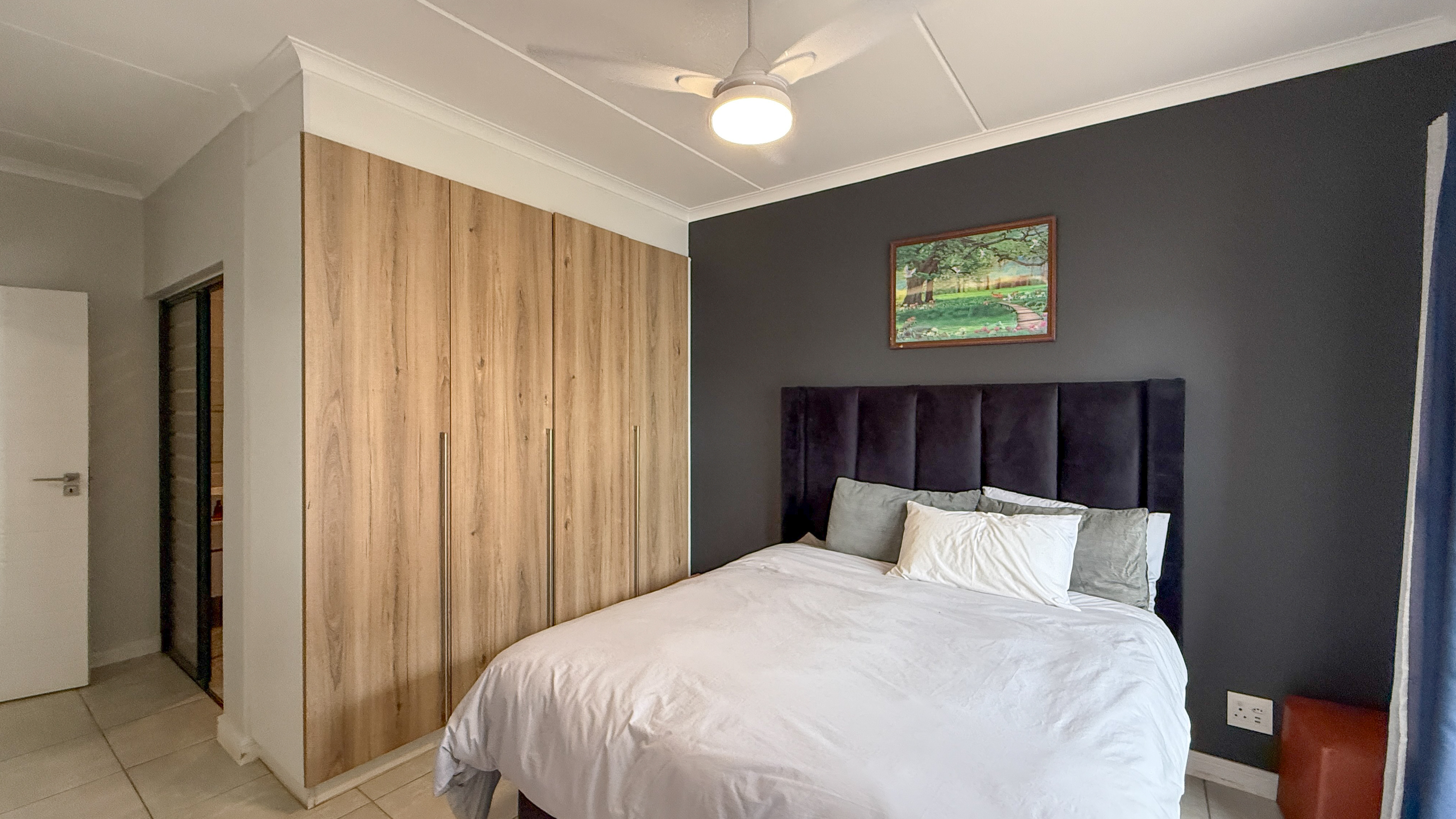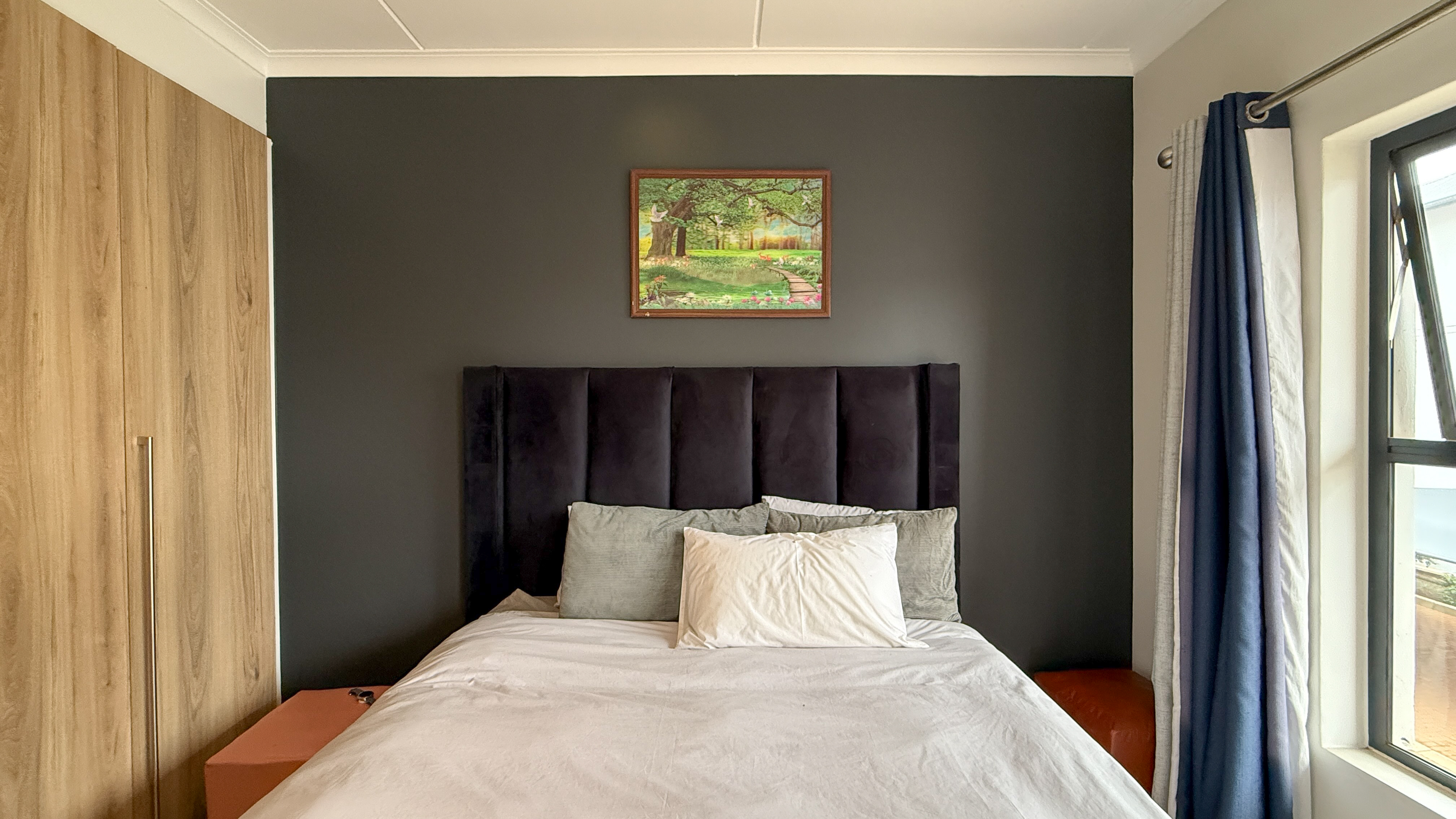 Step into this stylish apartment, welcomed by an open-plan living area and modern kitchen featuring Caesarstone countertops and all appliances included (fridge, dishwasher, and washer/dryer combo). The living space flows seamlessly onto a spacious balcony with a built-in braai — perfect for entertaining.
