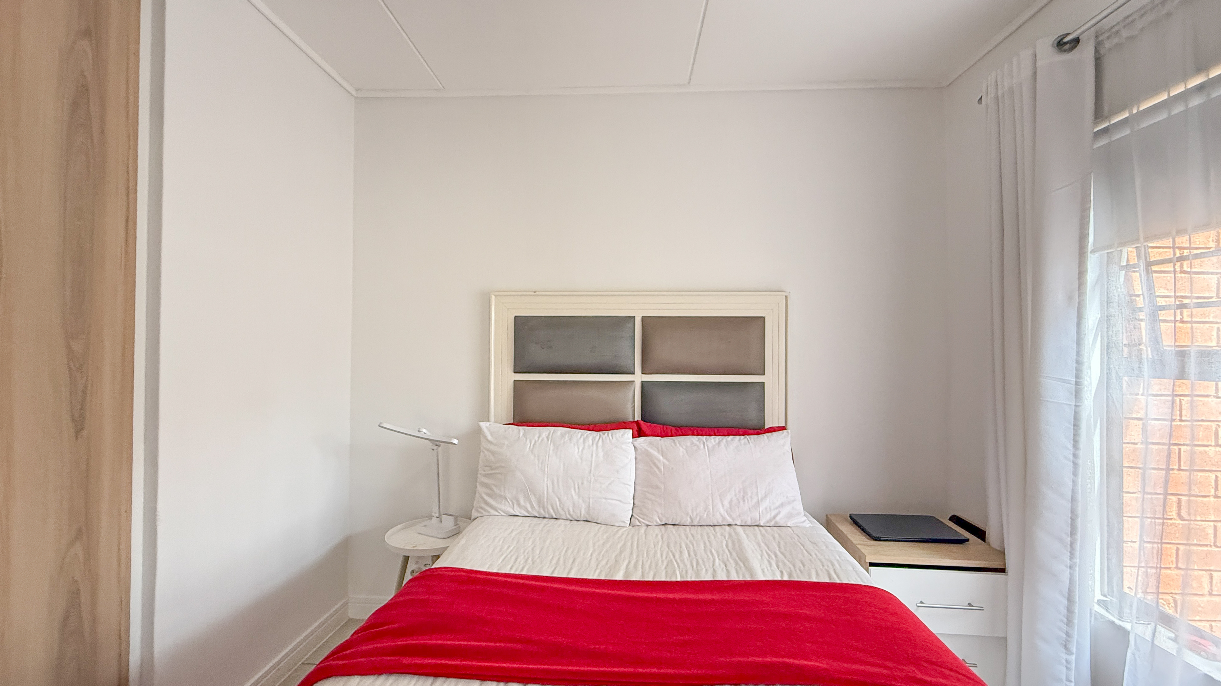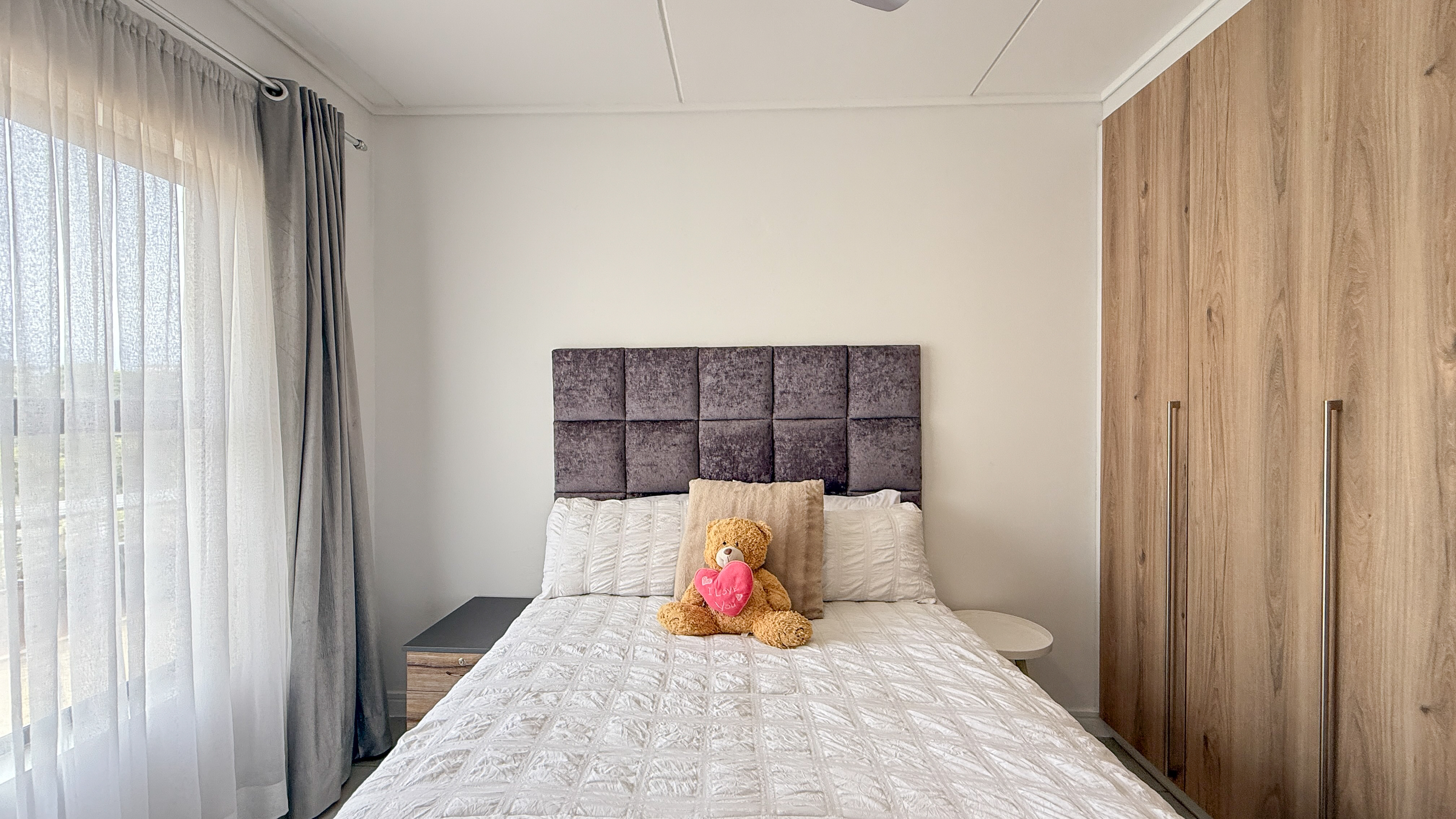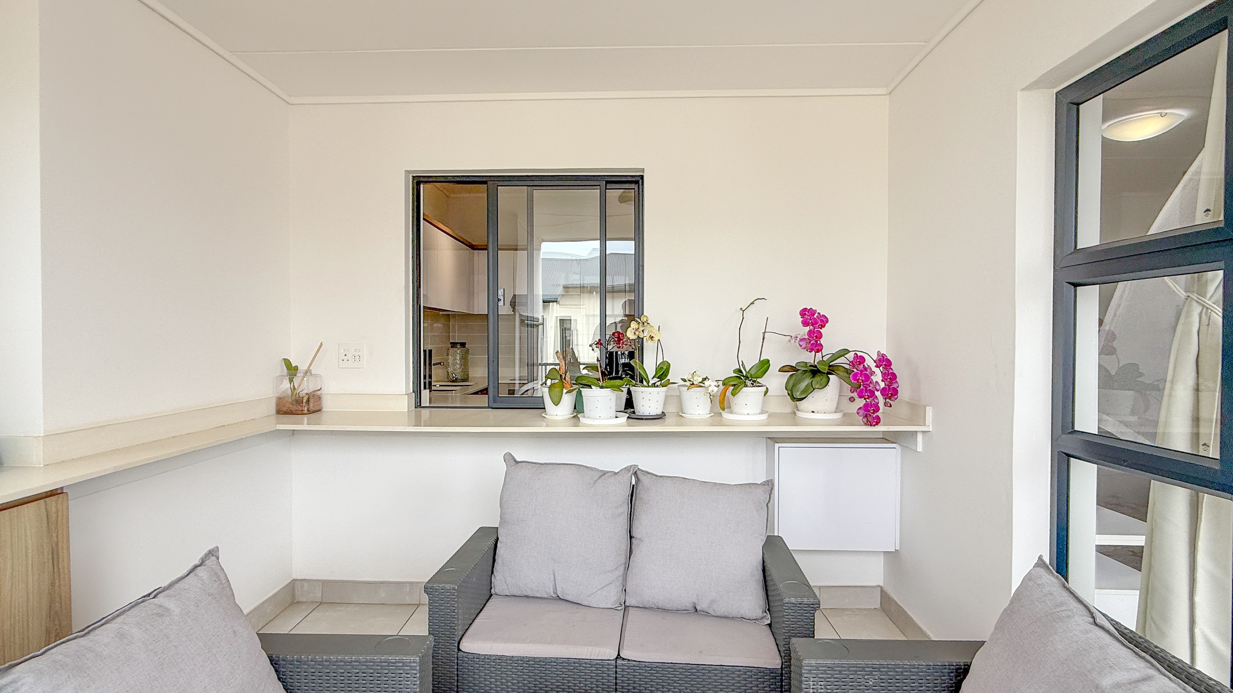Step into this stylish apartment, welcomed by an open-plan living area and modern kitchen featuring Caesarstone countertops and all appliances included (fridge, dishwasher, and washer/dryer combo). The living space flows seamlessly onto a spacious balcony with a built-in braai — perfect for entertaining. This apartment offers privacy and tranquility due to where it is located.