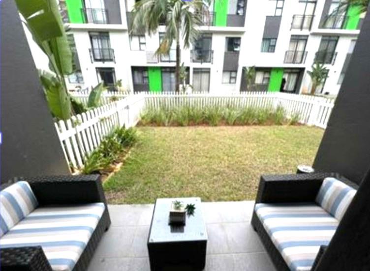 This large and stylish two-bedroom apartment is situated in the hub of Ballito. The unit has a beautiful open plan kitchen and lounge. Newly installed air conditioner has been added to the lounge, for those very hot summer days in Durban. The large windows provide a bright and airy feel to the rooms, with sliding doors leading onto your own private little garden, where you can just relax and spend some quiet time reading. The fully tiled apartment includes a fitted kitchen with ample built in cupboards, a space for your washing machine or dish washer, an oven, hob and extractor. The two bedrooms have their own respective built in cupboards and ceiling fans to keep you cool in the summer months. There is a lovely patio area that can be decorated with garden furniture. The unit includes 2 parking bays. Water is included in the rental and electricity is on a pre-paid metering system.