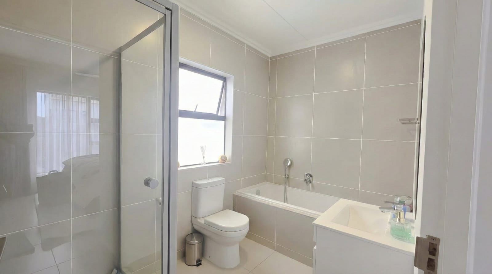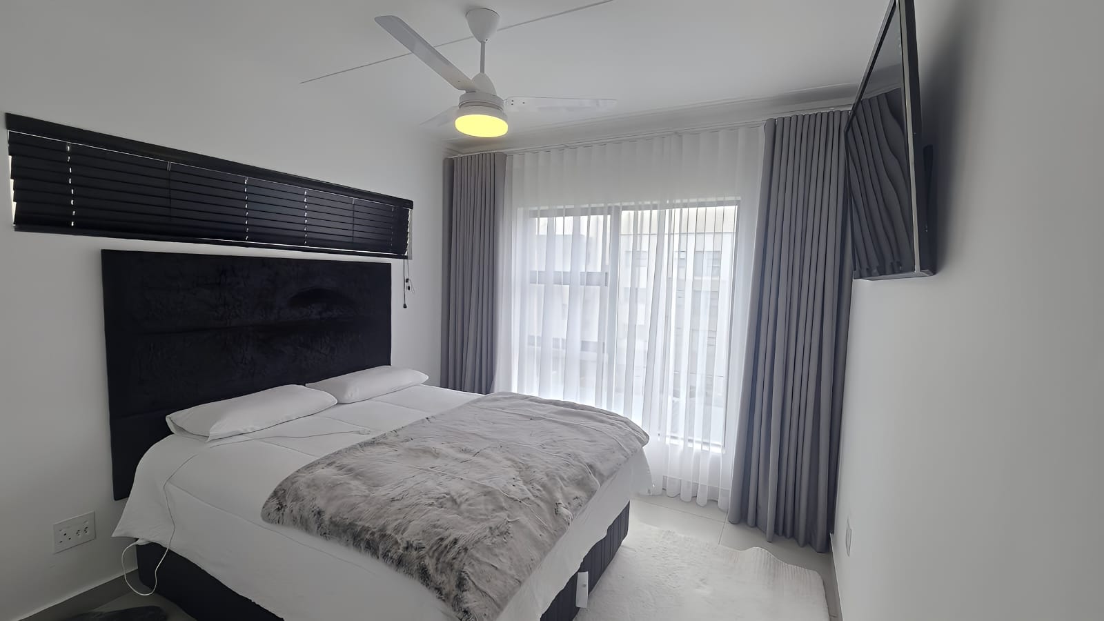 This stunning 2-bedroom, 2-bathroom apartment is available for rent in the sought-after Ballito Village. Designed for modern comfort, this home is fitted with a sleek hob, extractor fan, and oven, making meal preparation a breeze. The air-conditioned living room ensures you can unwind in comfort, while the built-in inverter guarantees uninterrupted power, perfect for today’s lifestyle.