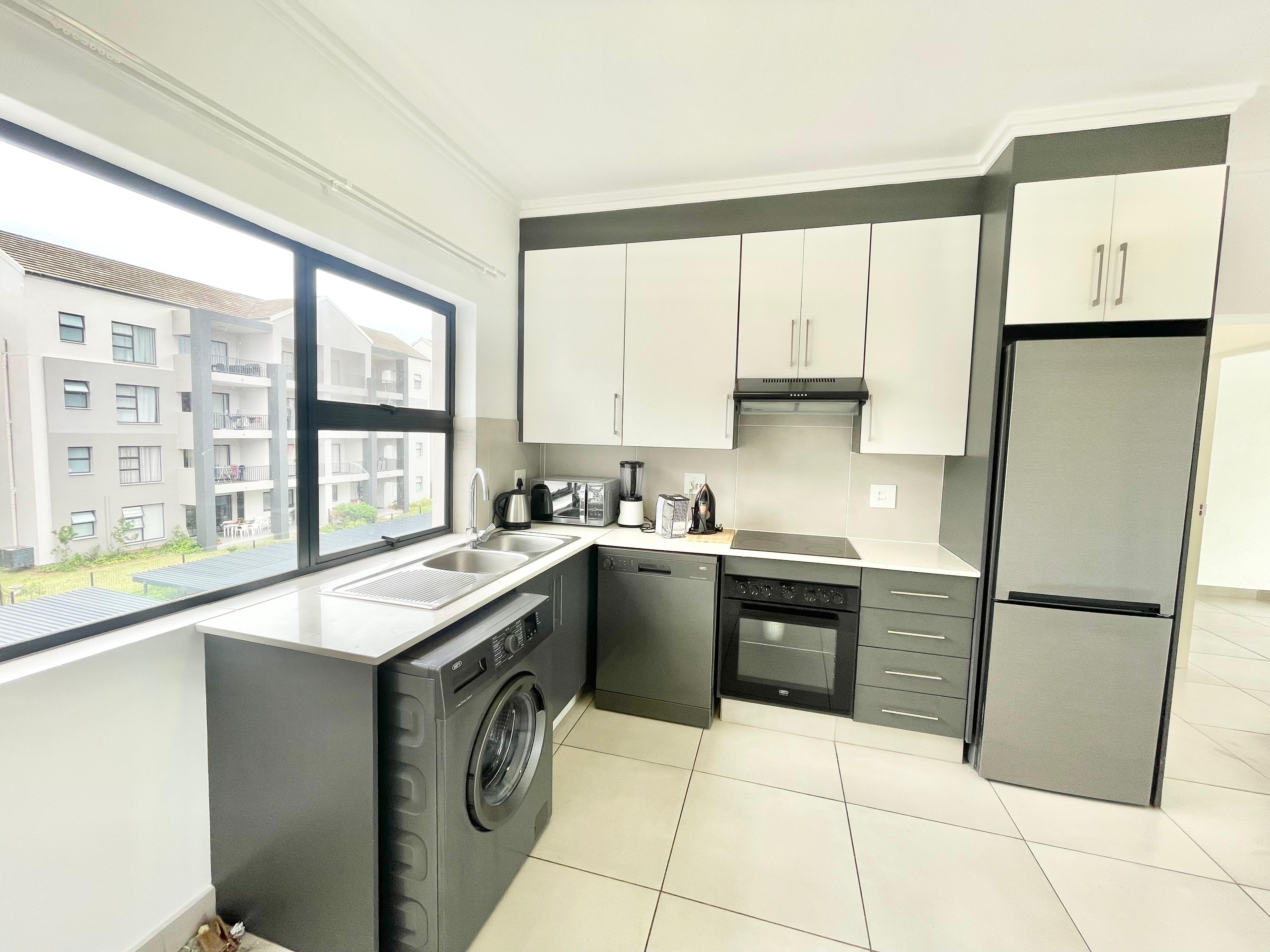 This modern 2-bedroom, 2-bathroom apartment in Ballito Village is available immediately at R12 500 per month and offers stylish, convenient living in a central location. The unit features a spacious open-plan layout, a well-equipped kitchen, and two comfortable bedrooms, including a main en-suite. A fridge, dishwasher, and washing machine are included, making this a move-in-ready home.