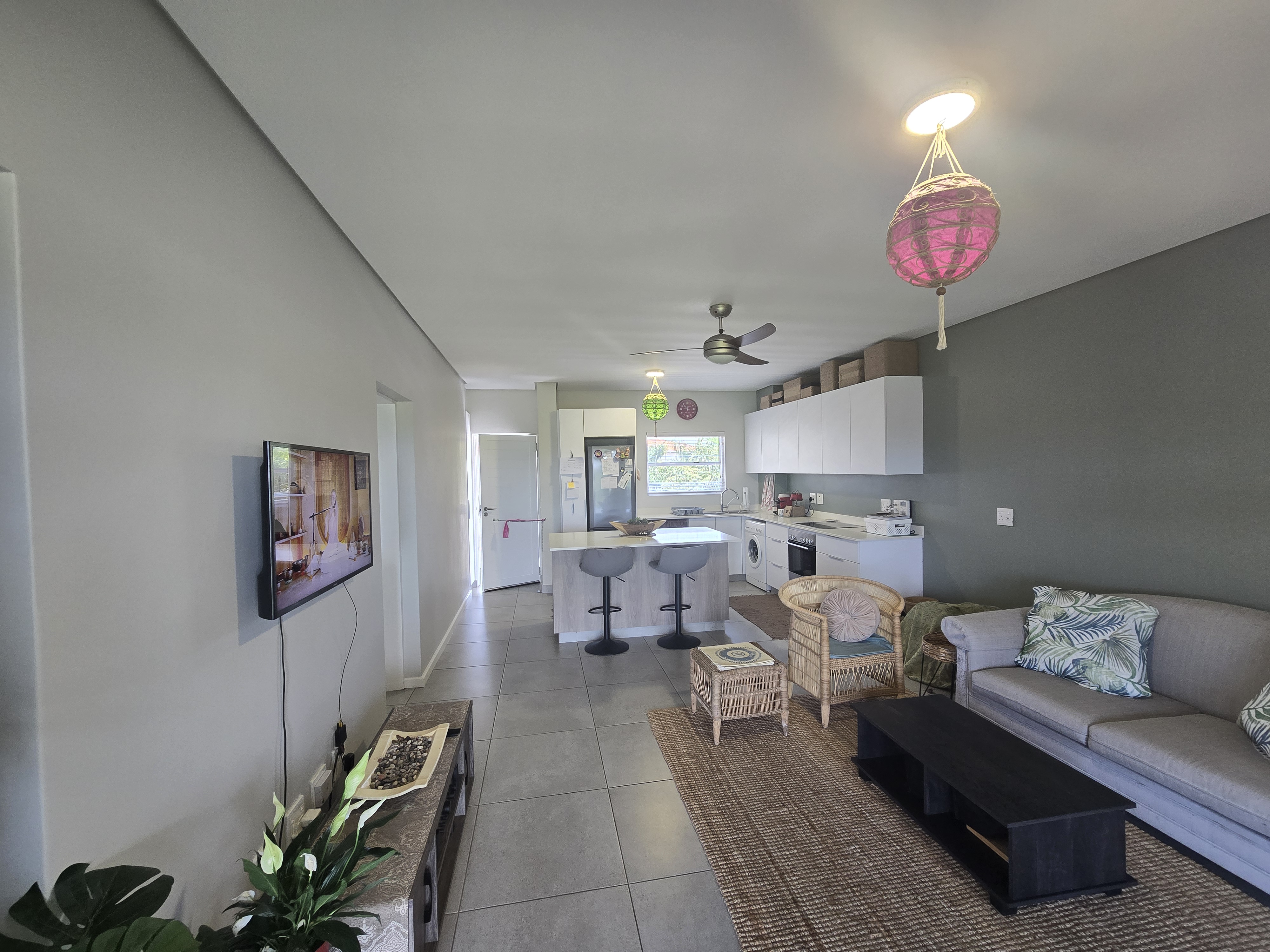 Large indoor-outdoor covered patio, fully enclosed with seamless glass doors, roll blinds when need, stunning views over the sugarcane fields, whilst also enjoying the winter sunrises.