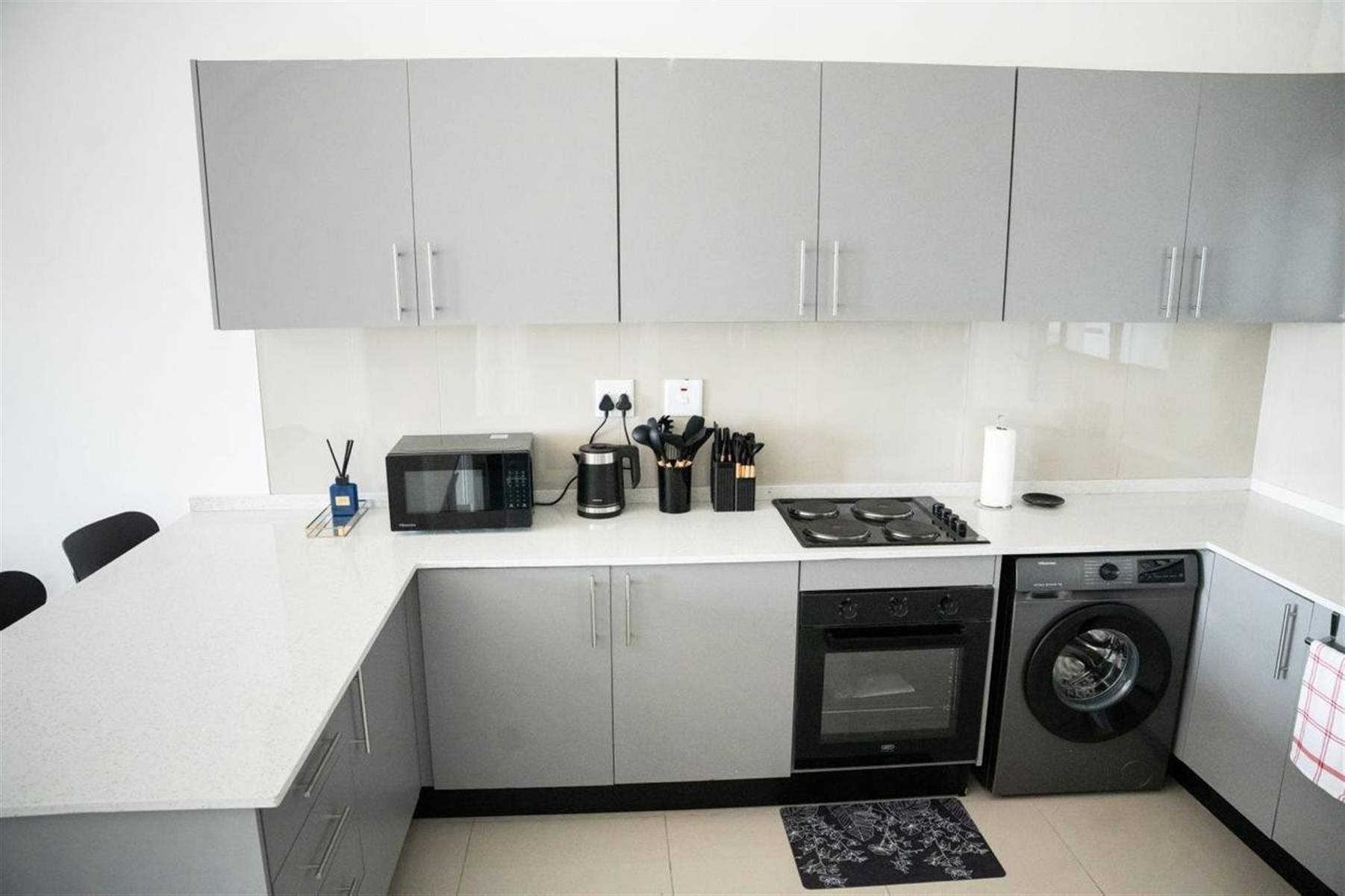 The home features a modern, open-plan living area that flows effortlessly into a well-designed kitchen, providing a welcoming and practical space for everyday living. Both bedrooms are comfortably sized with built-in cupboards, and the bathroom is neat and functional.