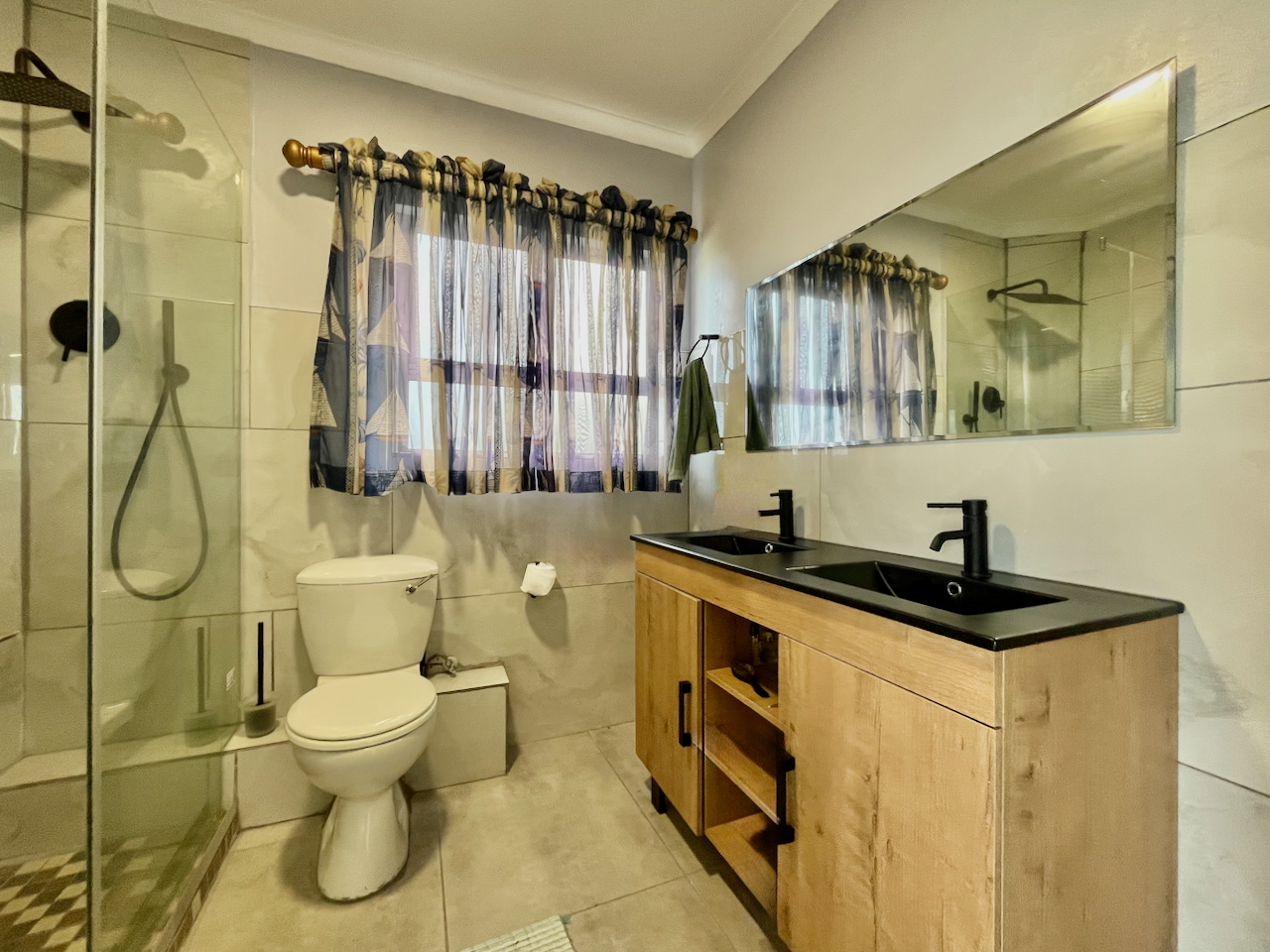 The main bedroom has a double bed with plenty of cupboard space and a newly renovated en-suite bathroom offering a spacious double shower. The remaining two bedrooms have a double and single bed respectively, sharing a classic bathroom fitted with a shower and bath.