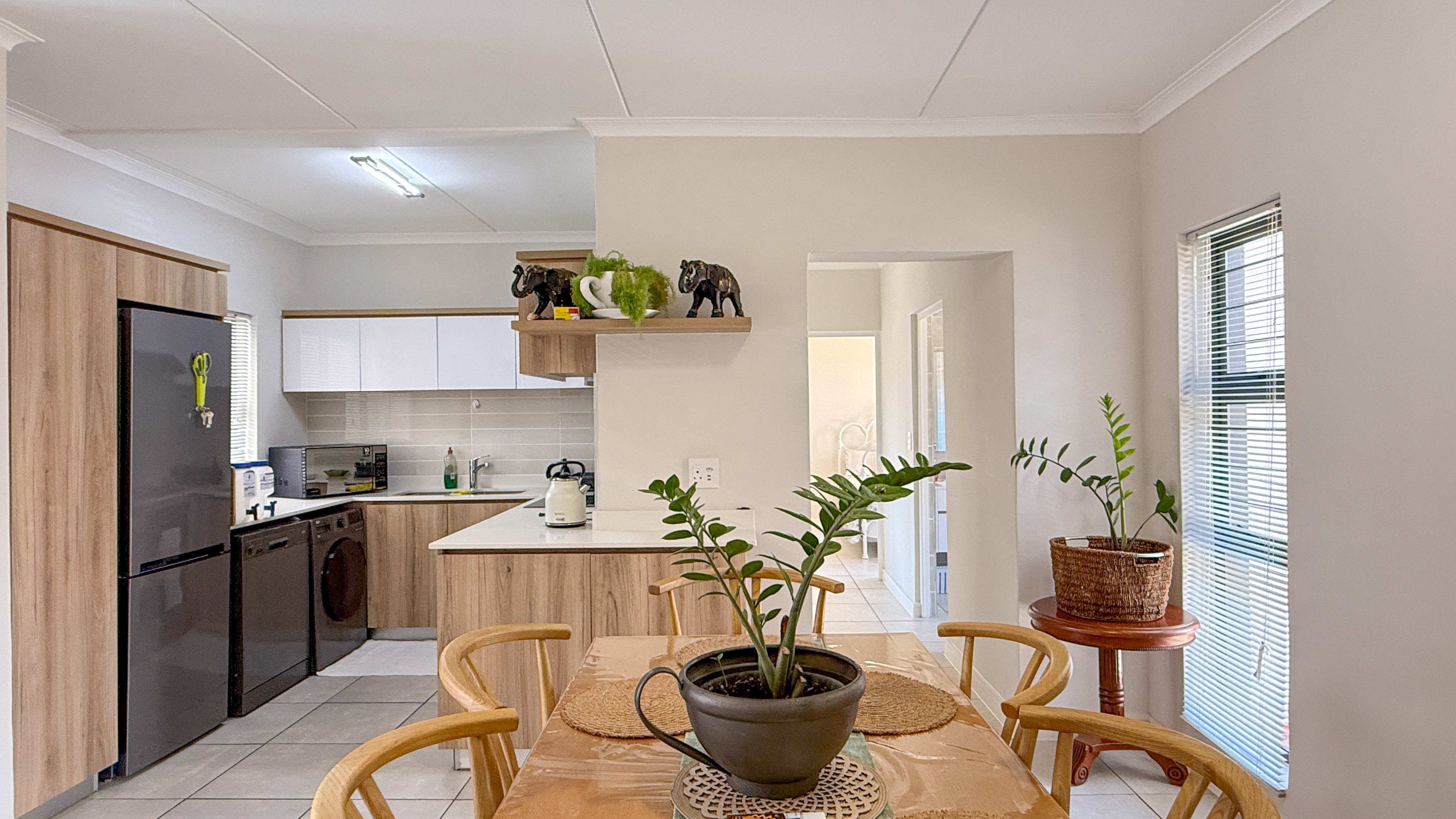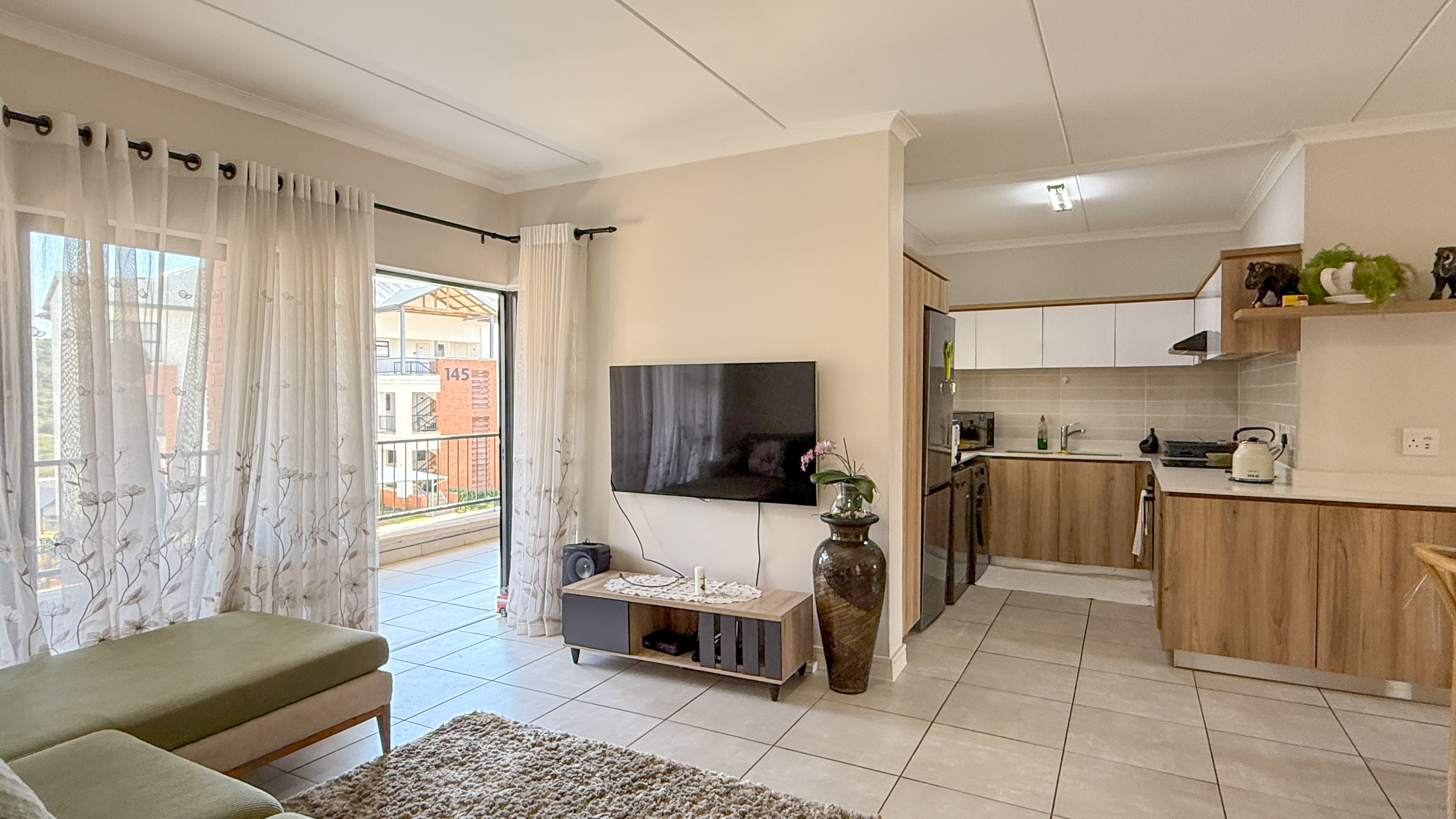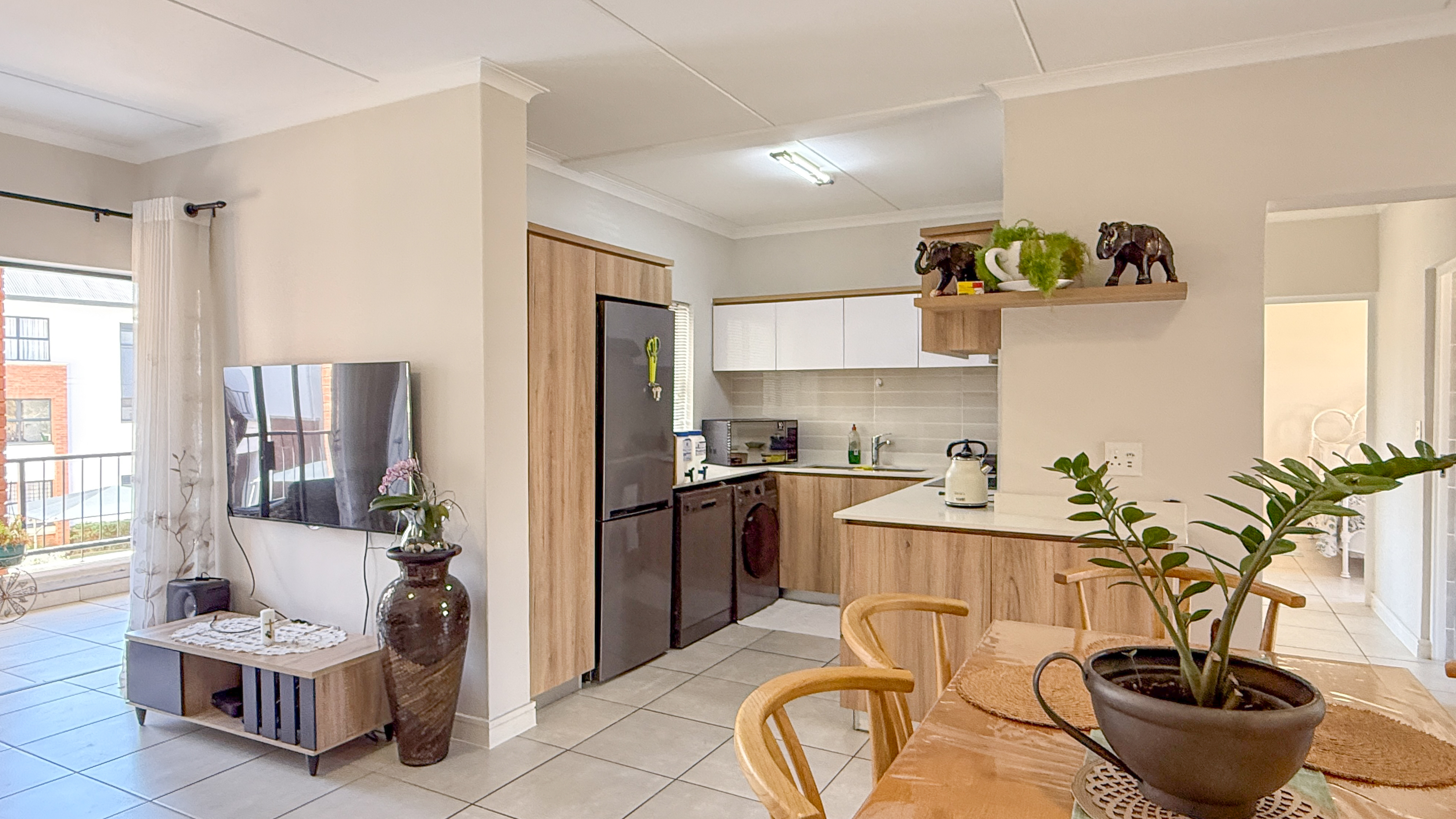 Step into this stylish apartment, welcomed by an open-plan living area and modern kitchen featuring Caesarstone countertops and all appliances included (fridge, dishwasher, and washer/dryer combo). The living space flows seamlessly onto a spacious balcony with a built-in braai — perfect for entertaining. This apartment offers privacy and tranquility due to where it is located.
