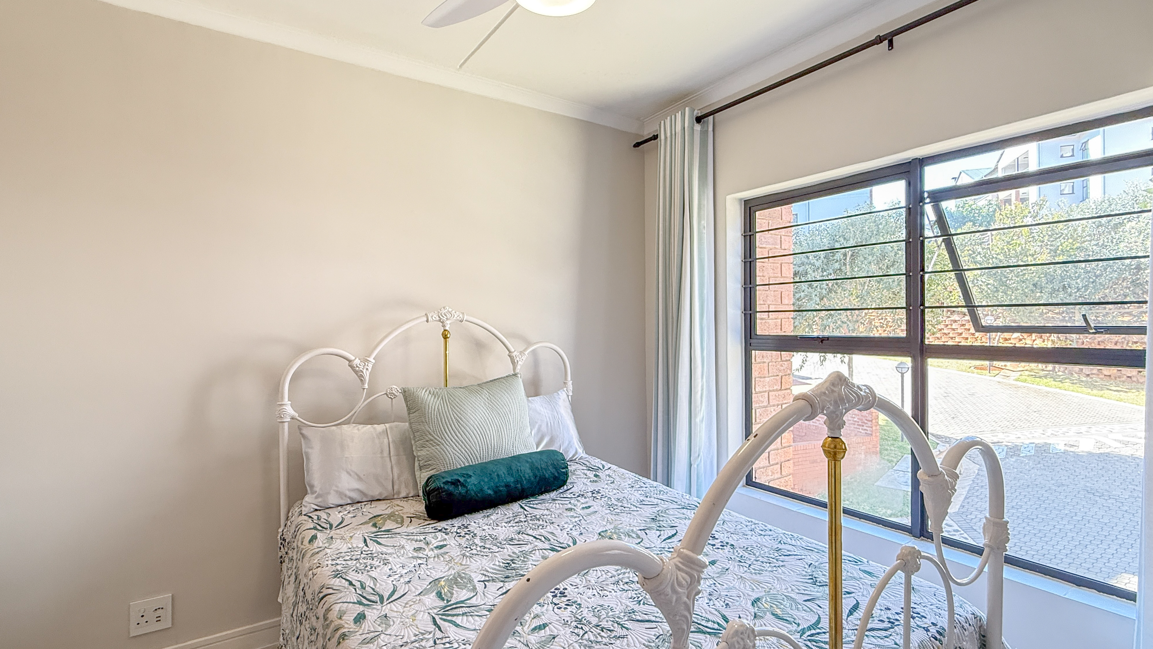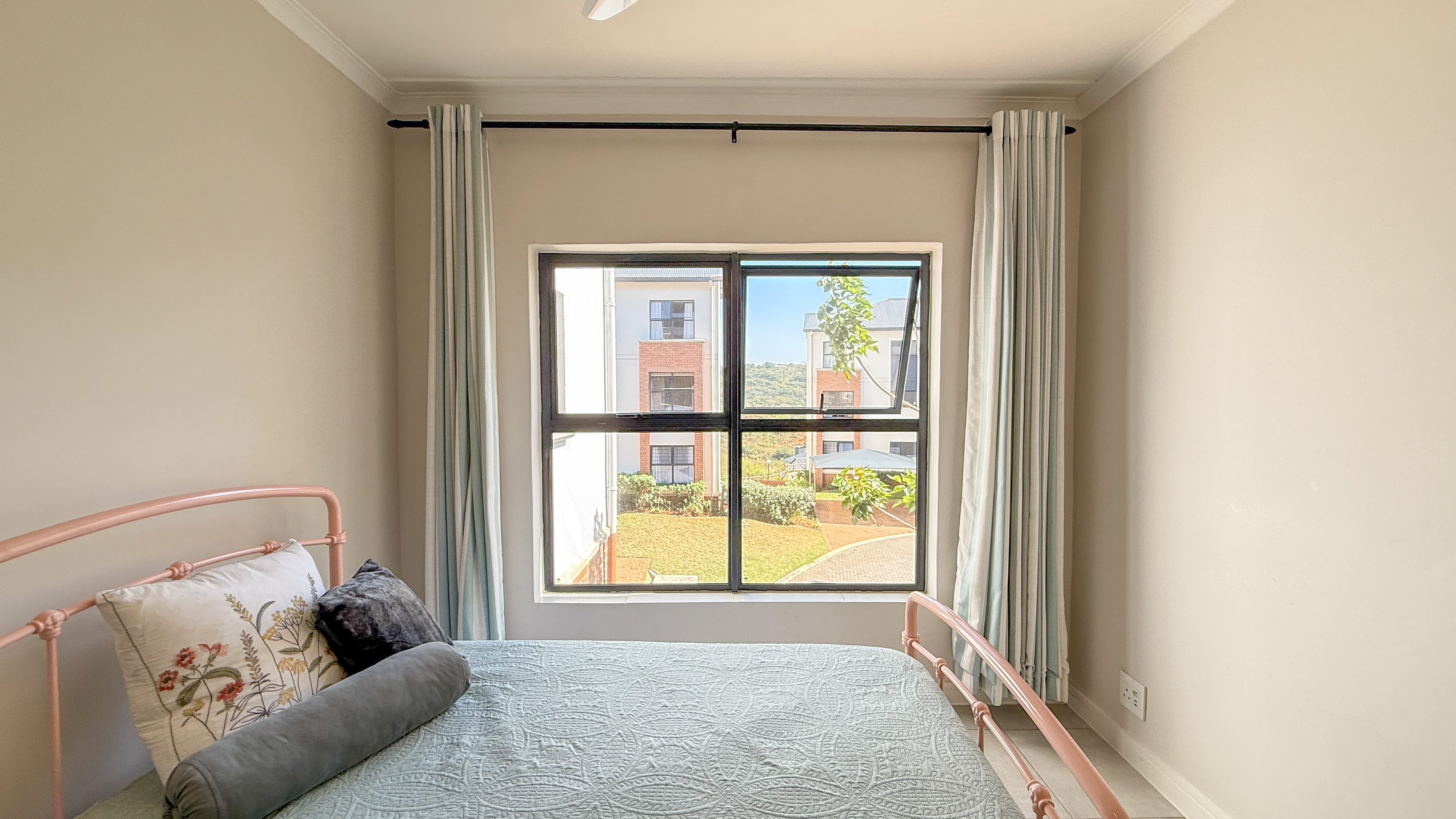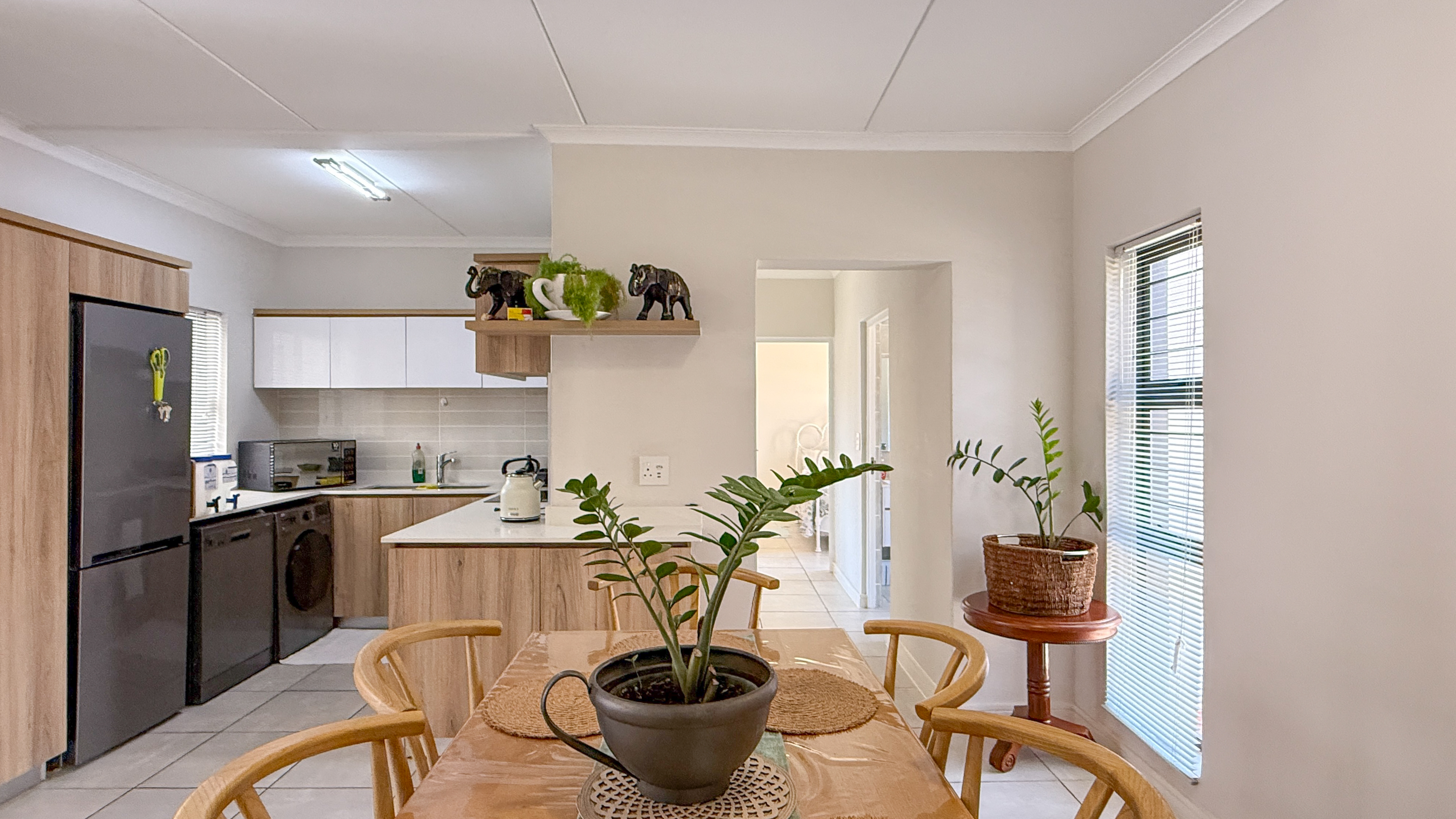 Step into this stylish apartment, welcomed by an open-plan living area and modern kitchen featuring Caesarstone countertops and all appliances included (fridge, dishwasher, and washer/dryer combo). The living space flows seamlessly onto a spacious balcony with a built-in braai — perfect for entertaining. This apartment offers privacy and tranquility due to where it is located.