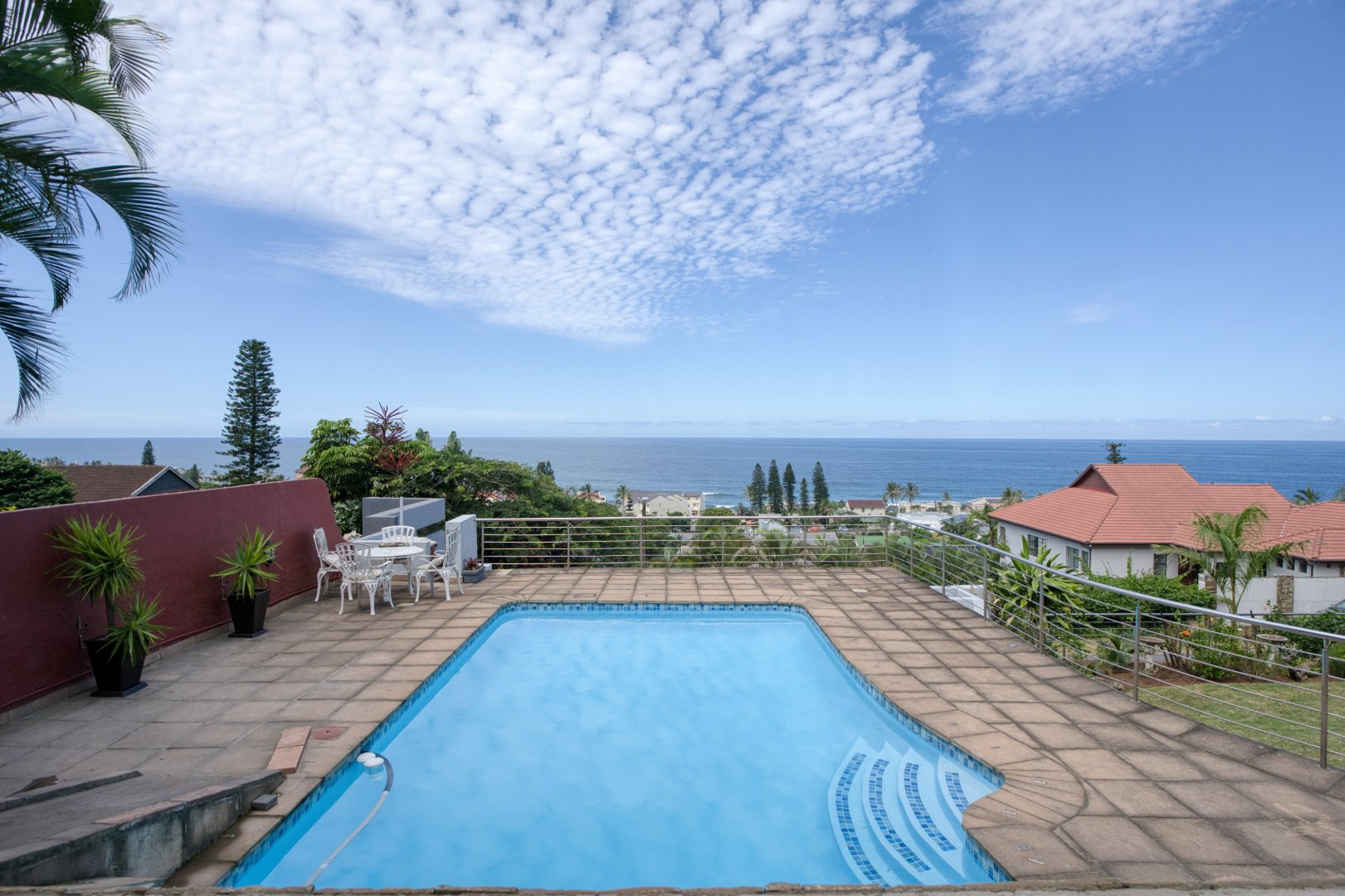 Designed for those who love to entertain, the property features a large pool, a dedicated braai area, and ample garden space. Imagine hosting memorable gatherings with the ocean as your backdrop, or simply relaxing by the pool as the waves provide a soothing soundtrack to your day.