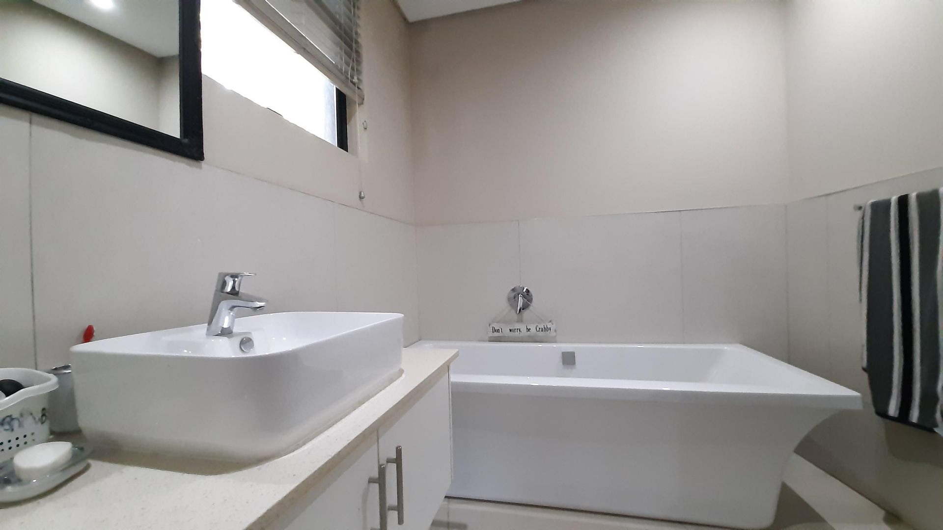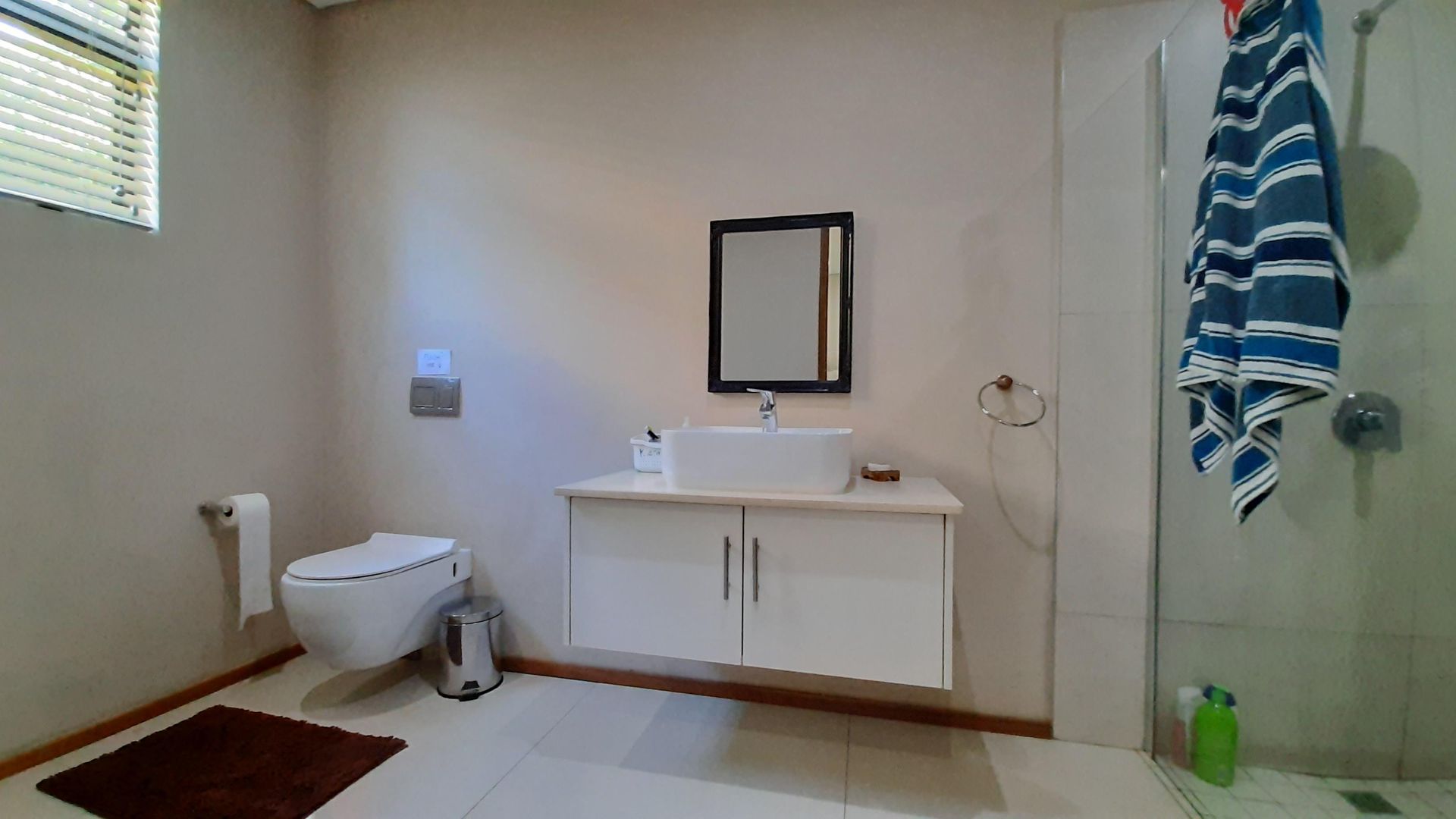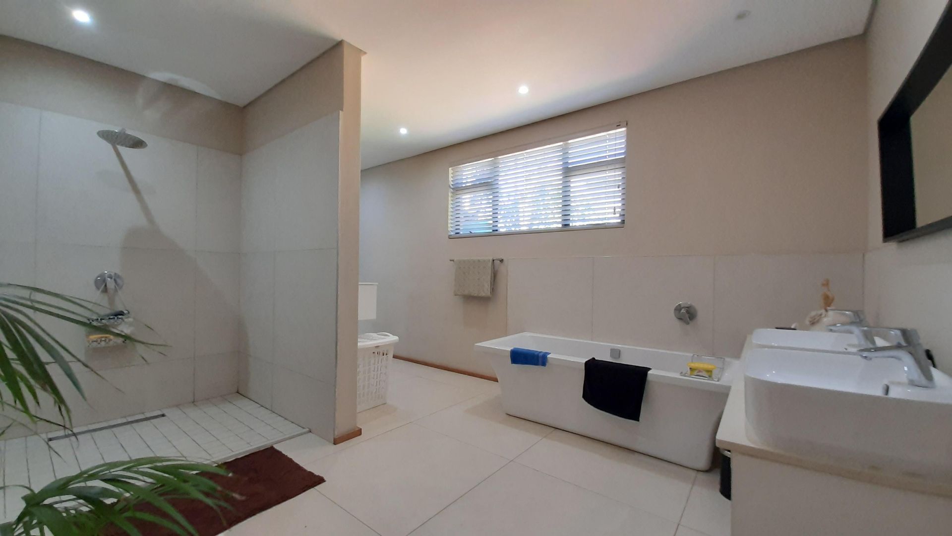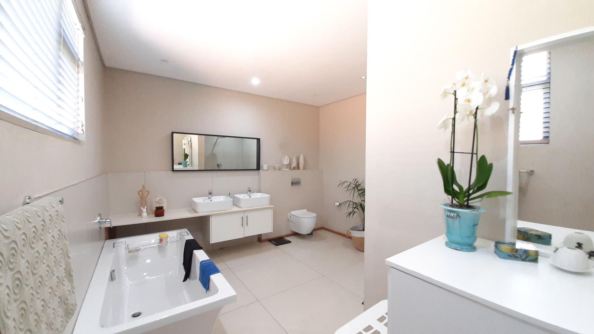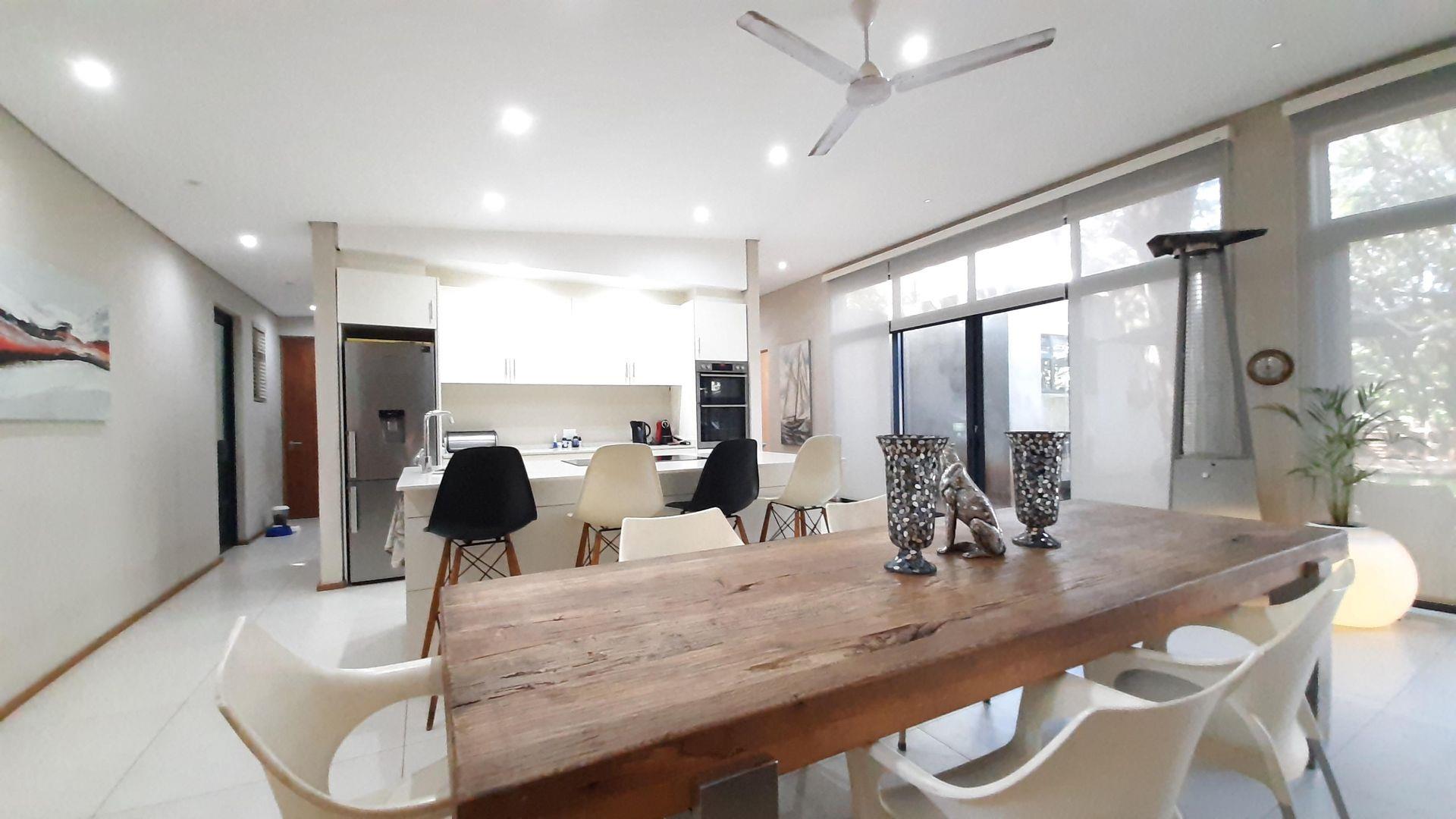 With its spacious open-plan design, the house boasts a comfortable living area that flows seamlessly into a modern kitchen, with Caesarstone countertops, a kitchen island, ample cabinetry and a separate scullery. In this light-filled culinary hub, you can indulge your love for cooking while your loved ones keep you company from the adjoining open-concept dining and living areas.