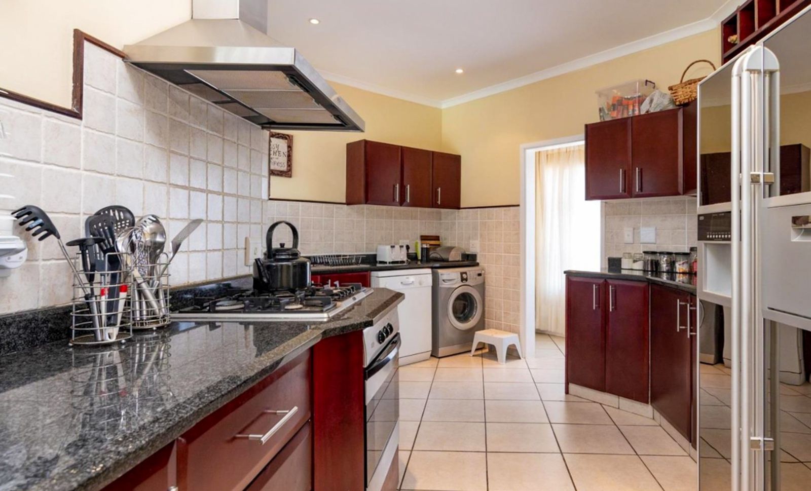 The kitchen is a chef’s delight, boasting sleek granite countertops and a welcoming breakfast bar. With a gas hob and space for two appliances, it blends style with practicality. A versatile second lounge gazes out over the pool, ready to become your entertainment hub, creative studio, or tranquil home office.
