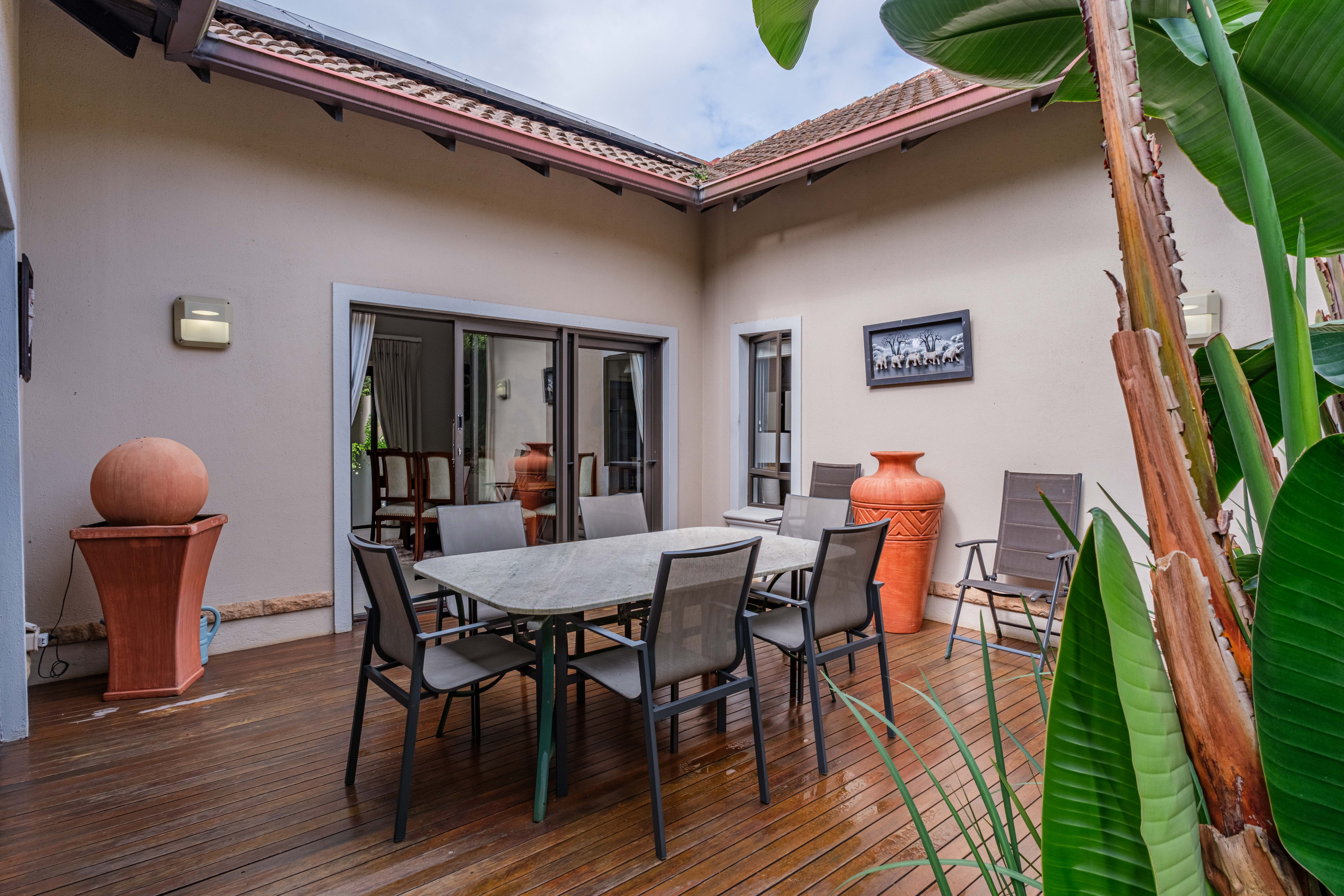 The home features a practical, easy-living layout with open-plan living spaces designed for comfort and accessibility. With 2 separate outdoor dining areas is home delivers on all front! Additional highlights include solar power and backup water supply, ensuring reliability and reduced running costs. With its level design, low-maintenance appeal, and secure surroundings, this property presents an excellent opportunity for retirement living or long-term investment in one of Ballito’s most desirable locations. The property also has an extended garage with parking for your golf cart!