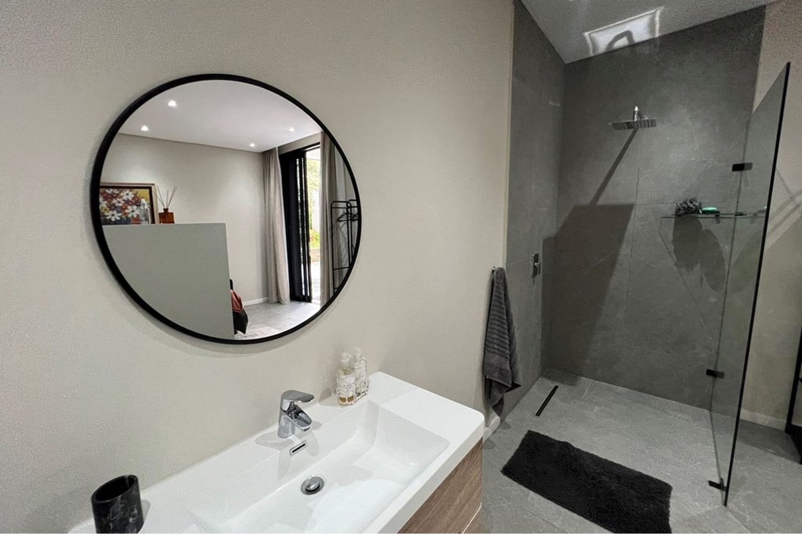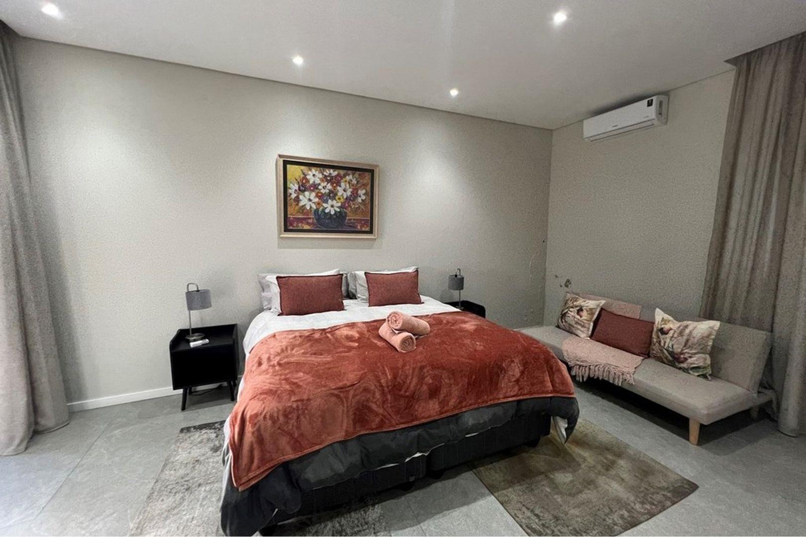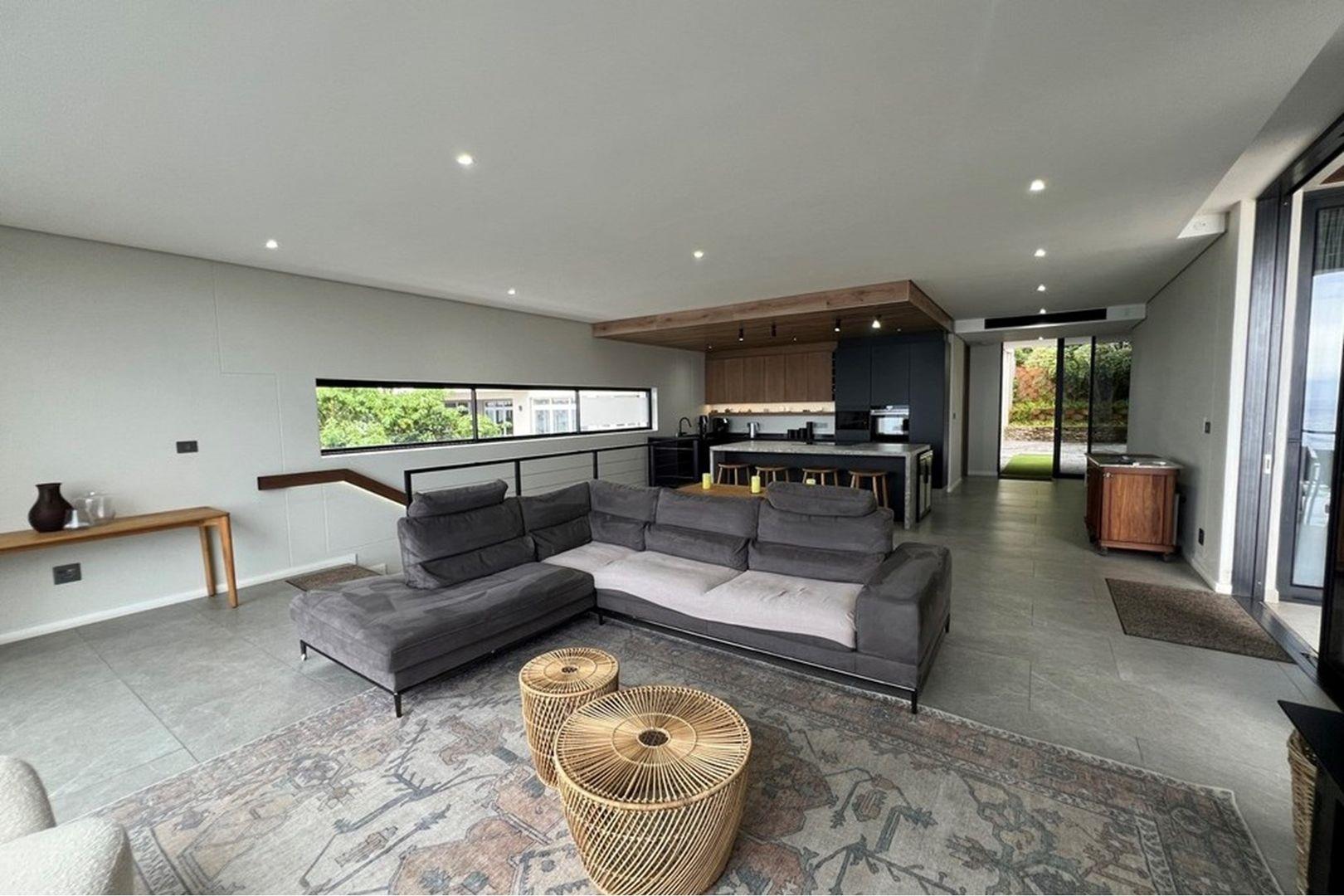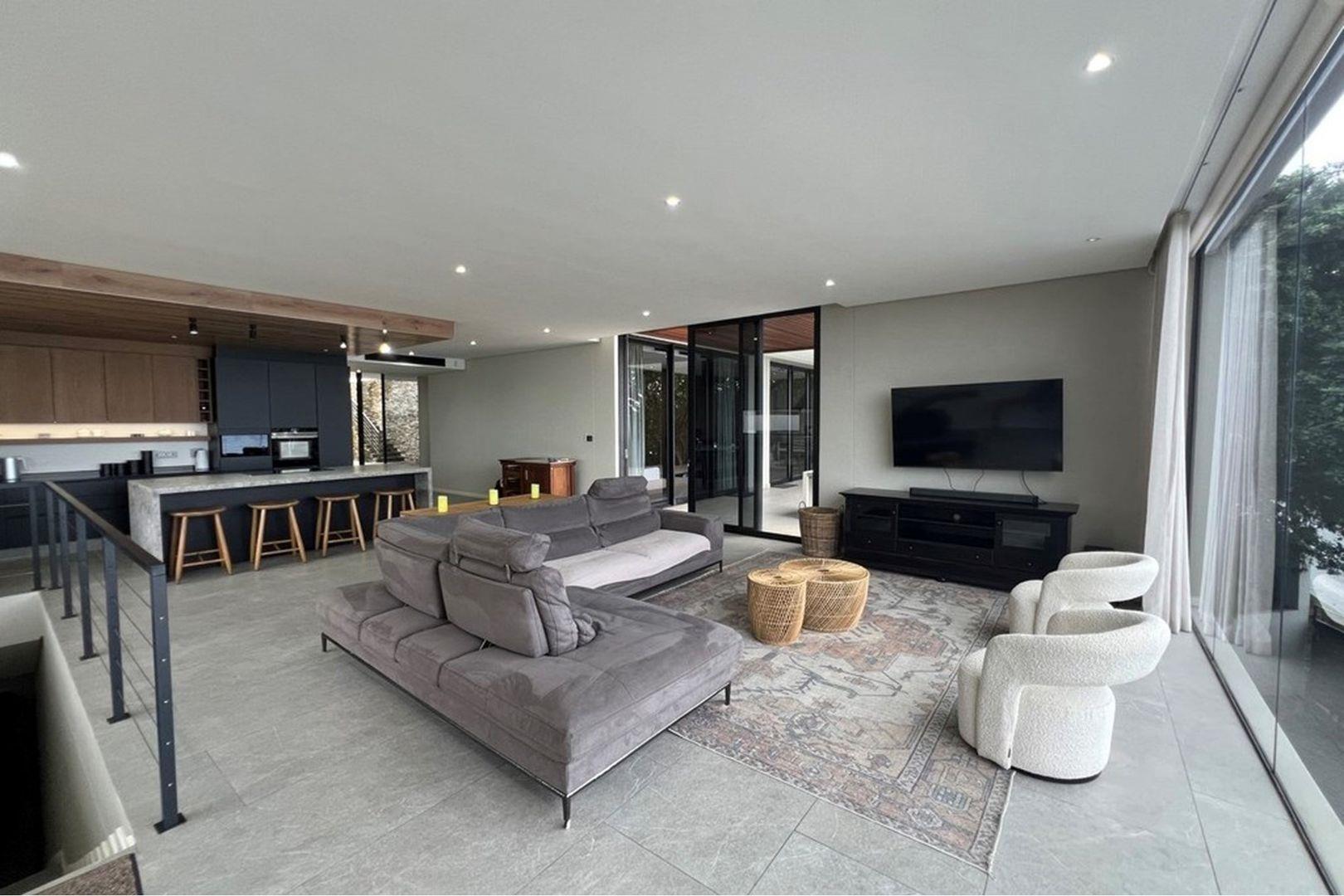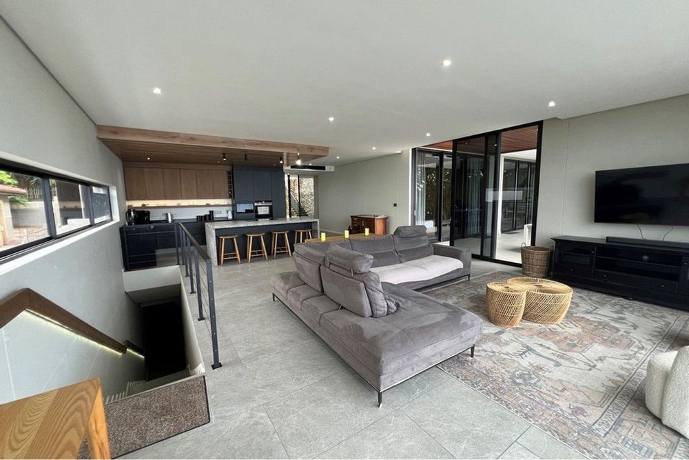 This level mirrors the top with a second kitchen, lounge, and dining area, along with two additional en suite bedrooms and a separate scullery. A private fifth bedroom with en suite provides flexibility for guests or extended family. A spacious courtyard accessed via the back entrance leads to a covered patio and a second braai area, ideal for casual outdoor dining.
