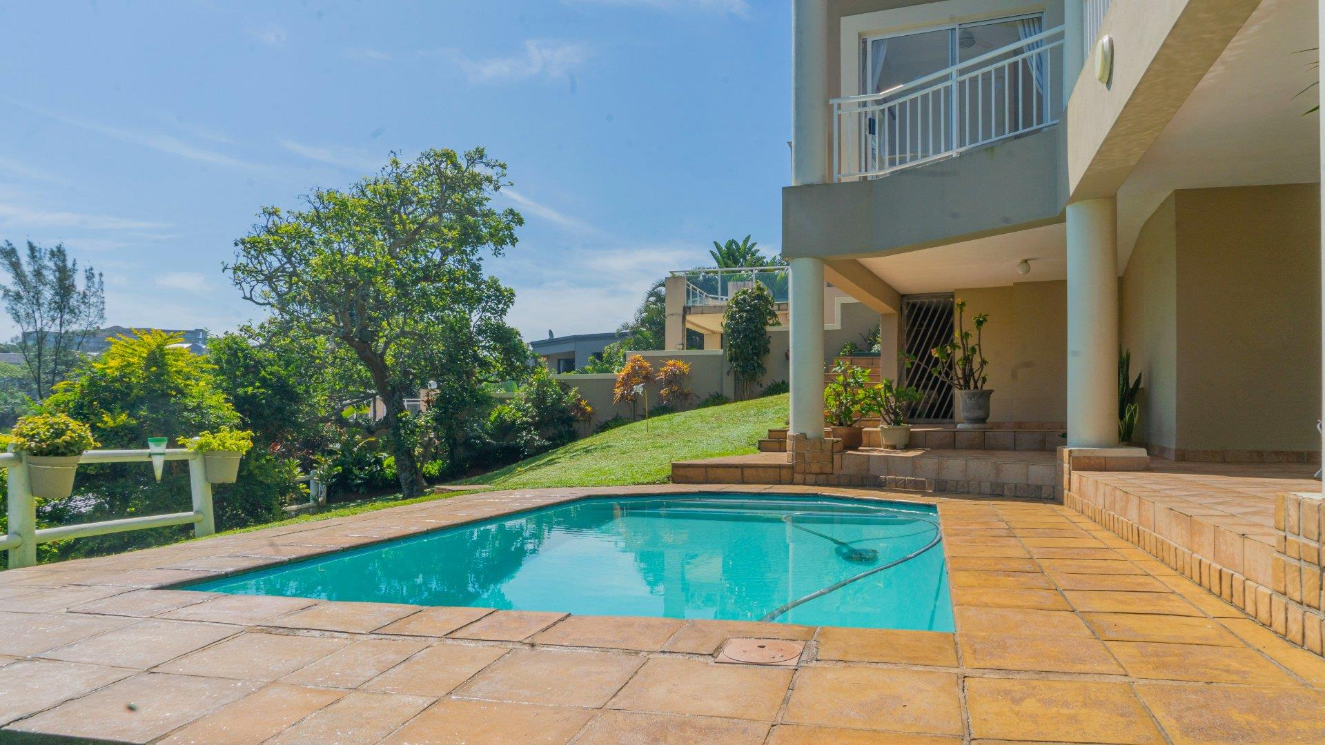 The entertainment area is where the home truly comes alive. A sparkling pool, undercover braai zone, and lush garden create a private retreat for hosting, relaxing, or simply soaking up the Salt Rock vibe.