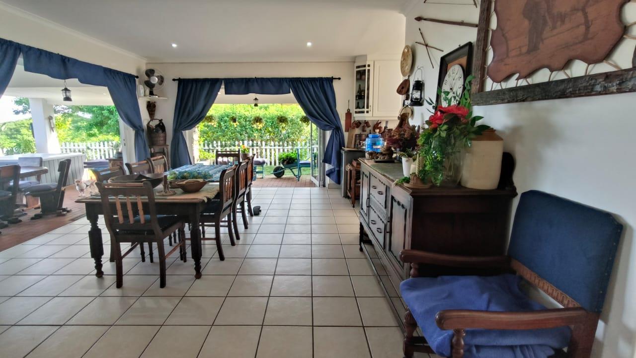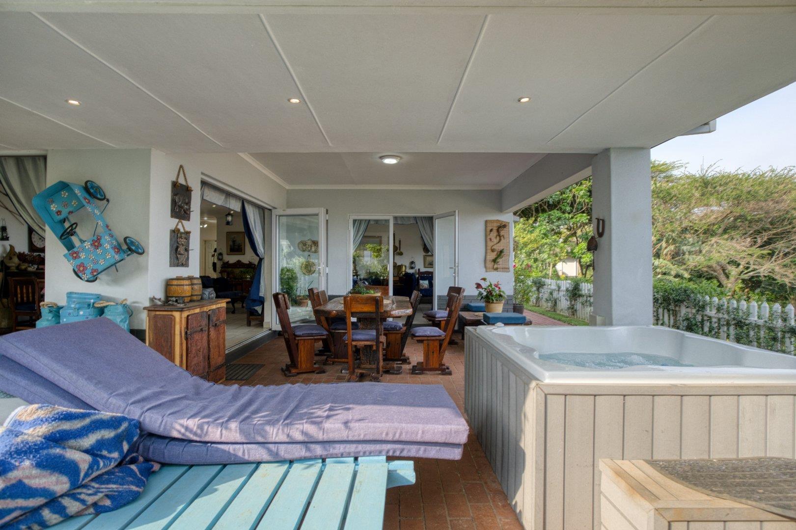 Picture yourself enjoying sunny afternoons on the expansive wraparound veranda, complete with an outdoor Jacuzzi and a built-in braai in the outdoor kitchen—perfect for entertaining or just soaking up the salty breeze. Inside, the open-plan lounge and dining area flow effortlessly onto the veranda through large sliding doors, while the classic white kitchen provides plenty of storage and prep space for whipping up family meals or hosting friends.