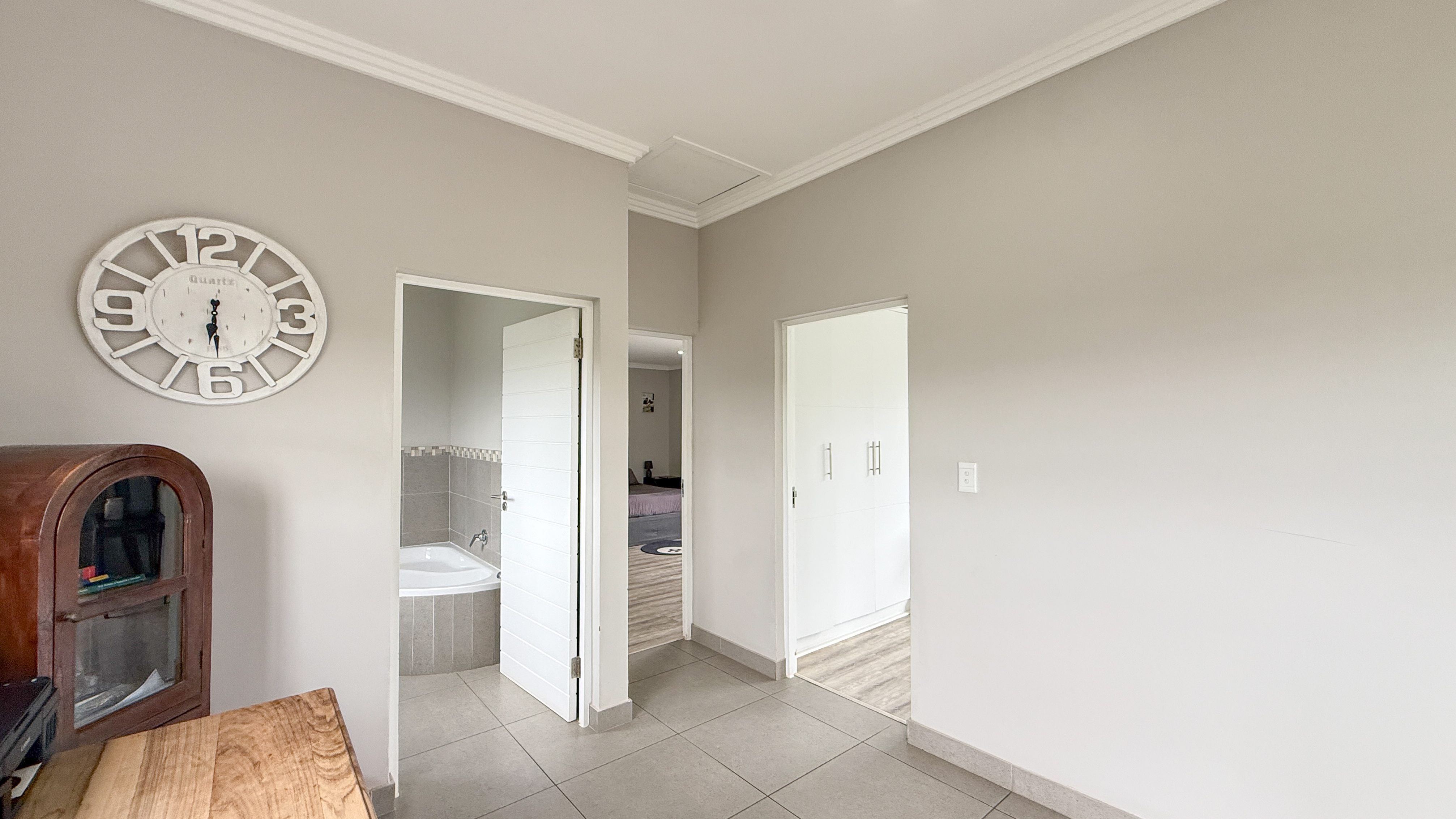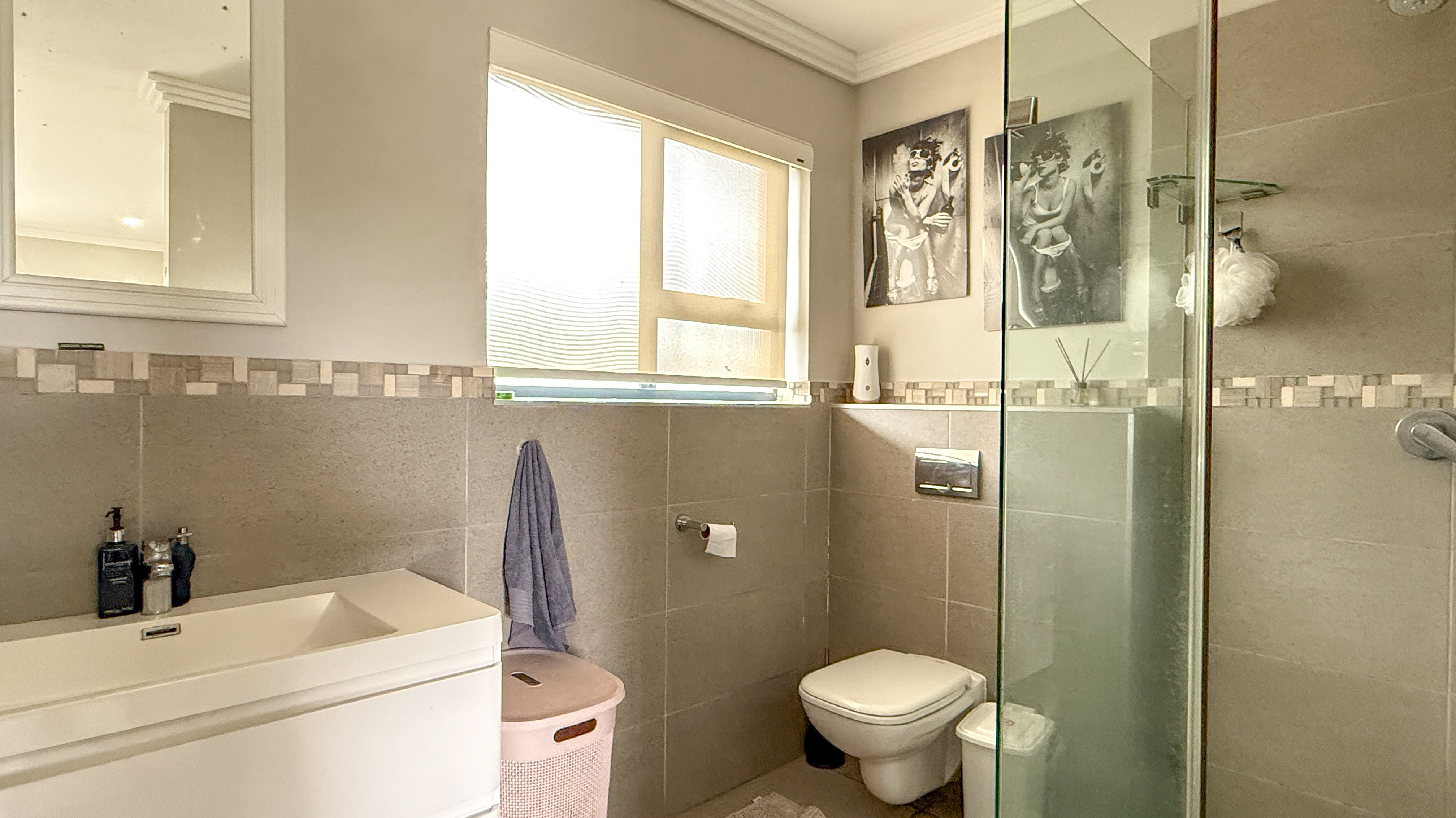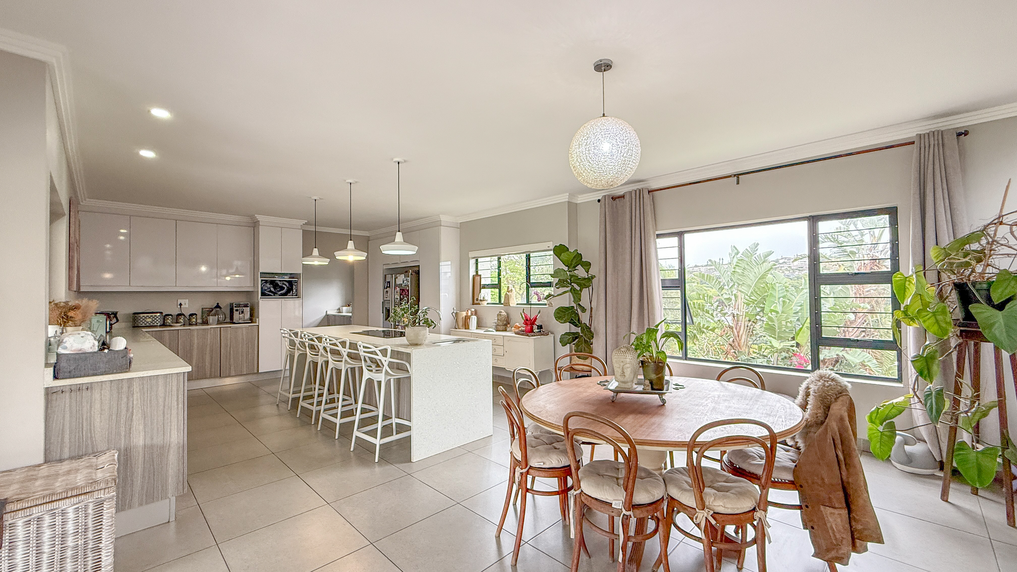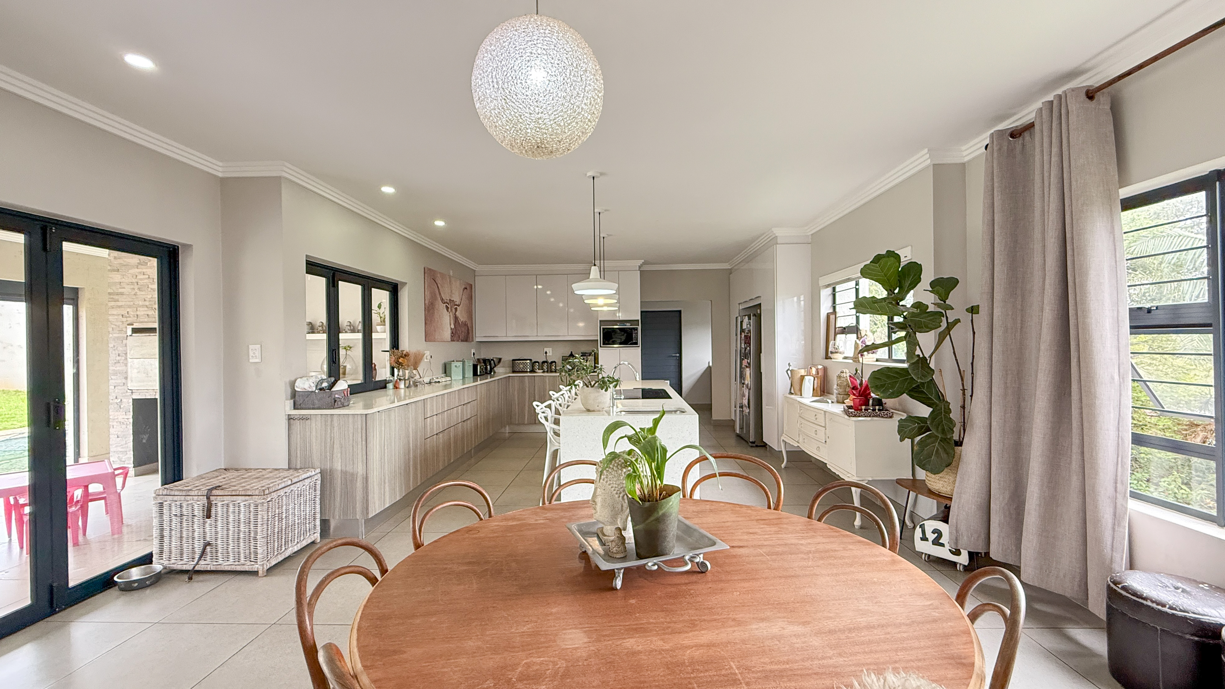 The entertainment area is fitted with a built-in braai and stylish sheer weave roller shutter blinds, so it works well in any weather. This space opens up to the front garden and pool, creating the perfect indoor-outdoor flow for entertaining or just enjoying the Ballito climate.