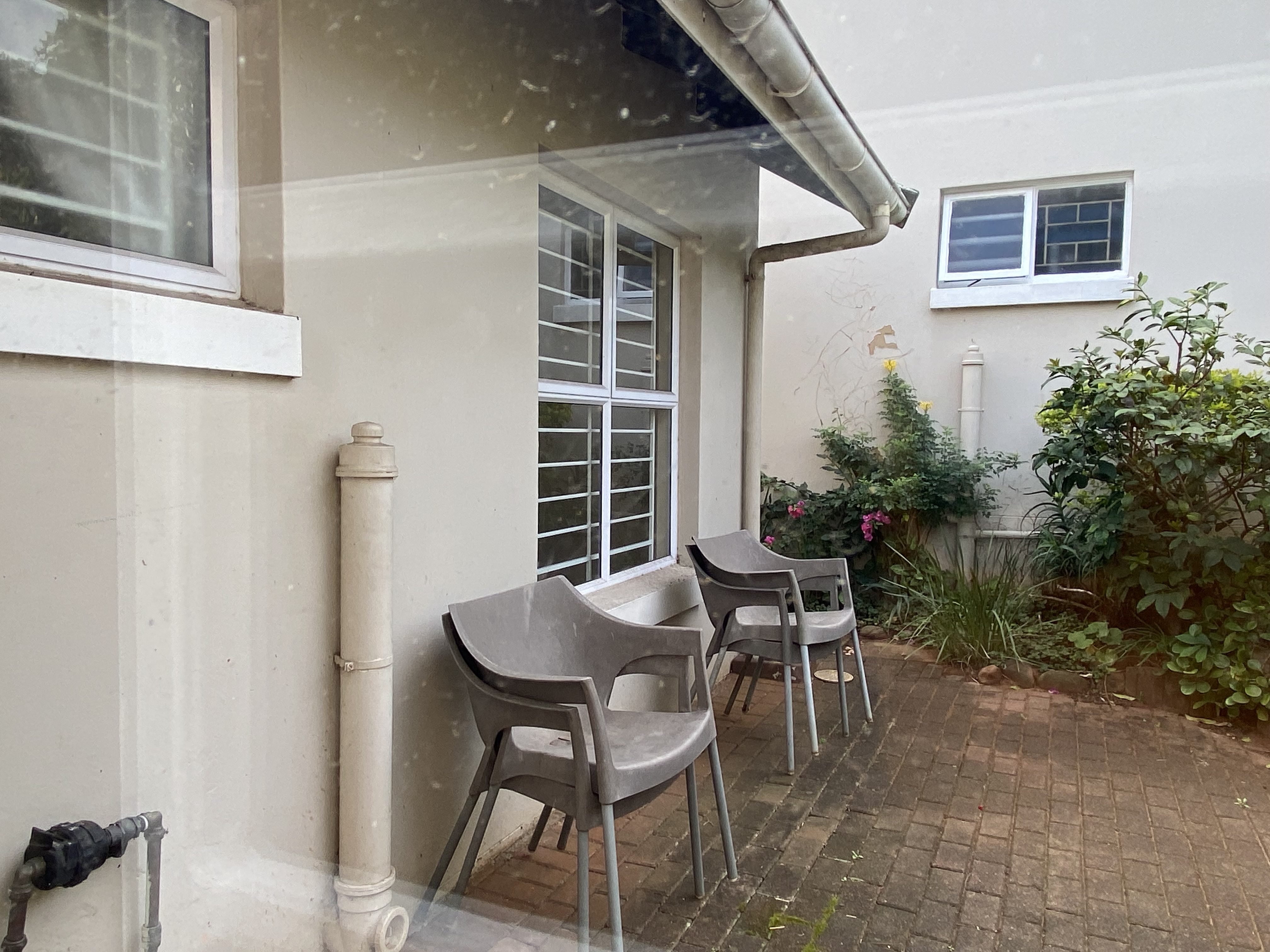 Cosy space with open plan layout to tiled lounge and well fitted kitchen with space for 2 under-counter machines. Enjoy the separate dining nook or hobby area, with a back door opening to pristine complex gardens. The 2 bedrooms are carpeted, with the main bedroom offering an en-suite shower. Generous BIC's with a linen / pantry cupboard. The family bathroom has a bathtub. Great security with upgraded access control and close proximity to town central. This is perfect for those without transport. A lock-up garage plus a separate allocated parking bay comes with this unit. This complex is ideal for lock-up and go living and the recreational element is great. 3 Pools, Tennis and squash court plus there is a small gym and meeting room. Pretty gardens to explore and all this across the road from shopping centres, restaurants and medical facilities. Single sectional title levy. You have got to make this yours today. These units let out very well so don't let this slip through your fingers. Call me o view.