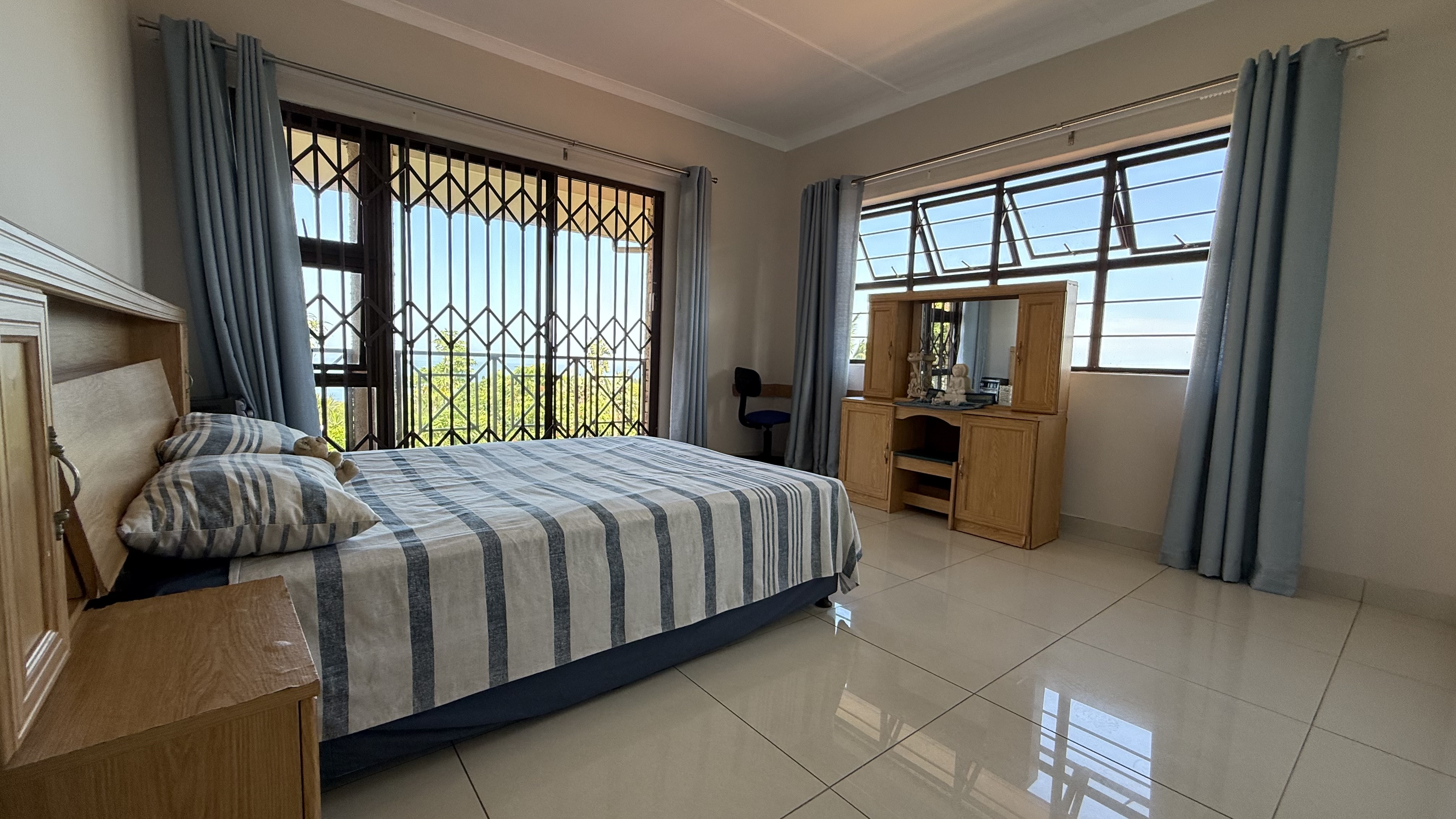 -Featuring five well-sized bedrooms, including three that open onto a wrap-around balcony, you can wake up to the soothing sights and sounds of the ocean every day. The additional downstairs bedroom provides flexibility—perfect for guests, a home office, or a cozy den.