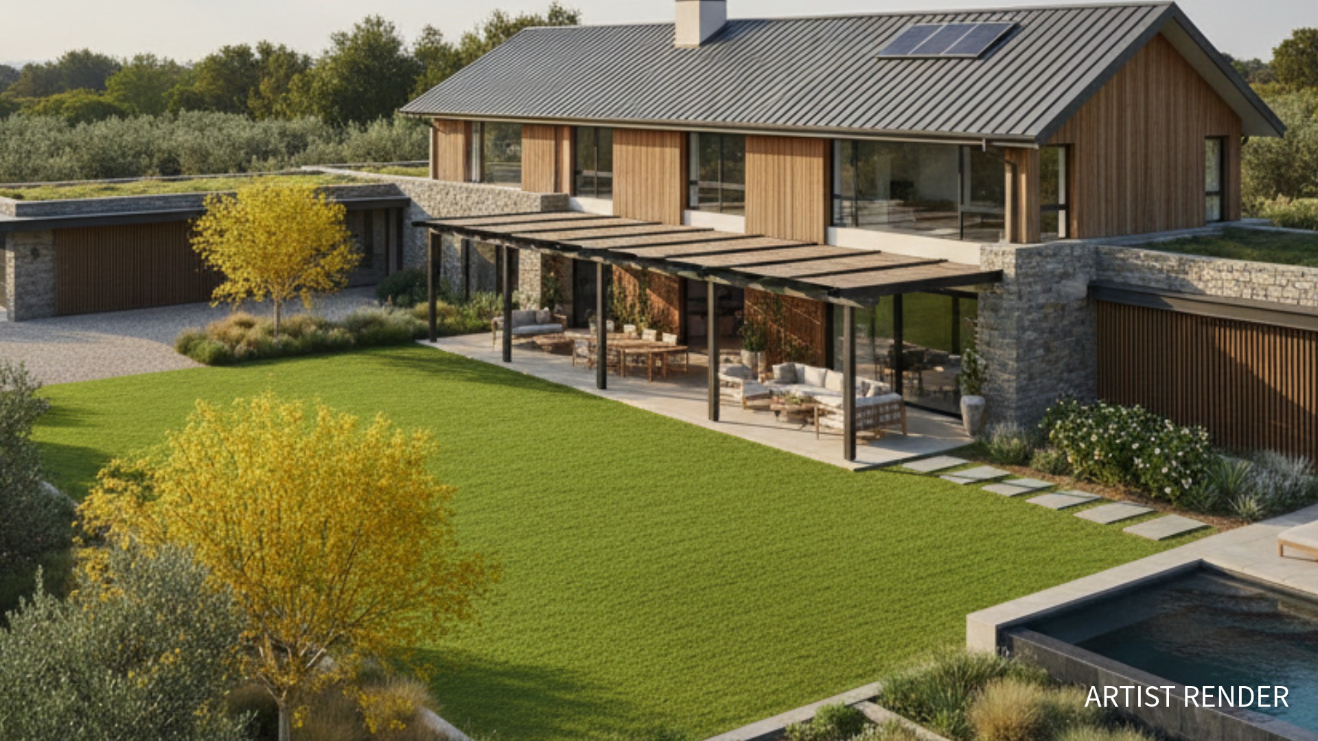 • Modern country architectural aesthetic