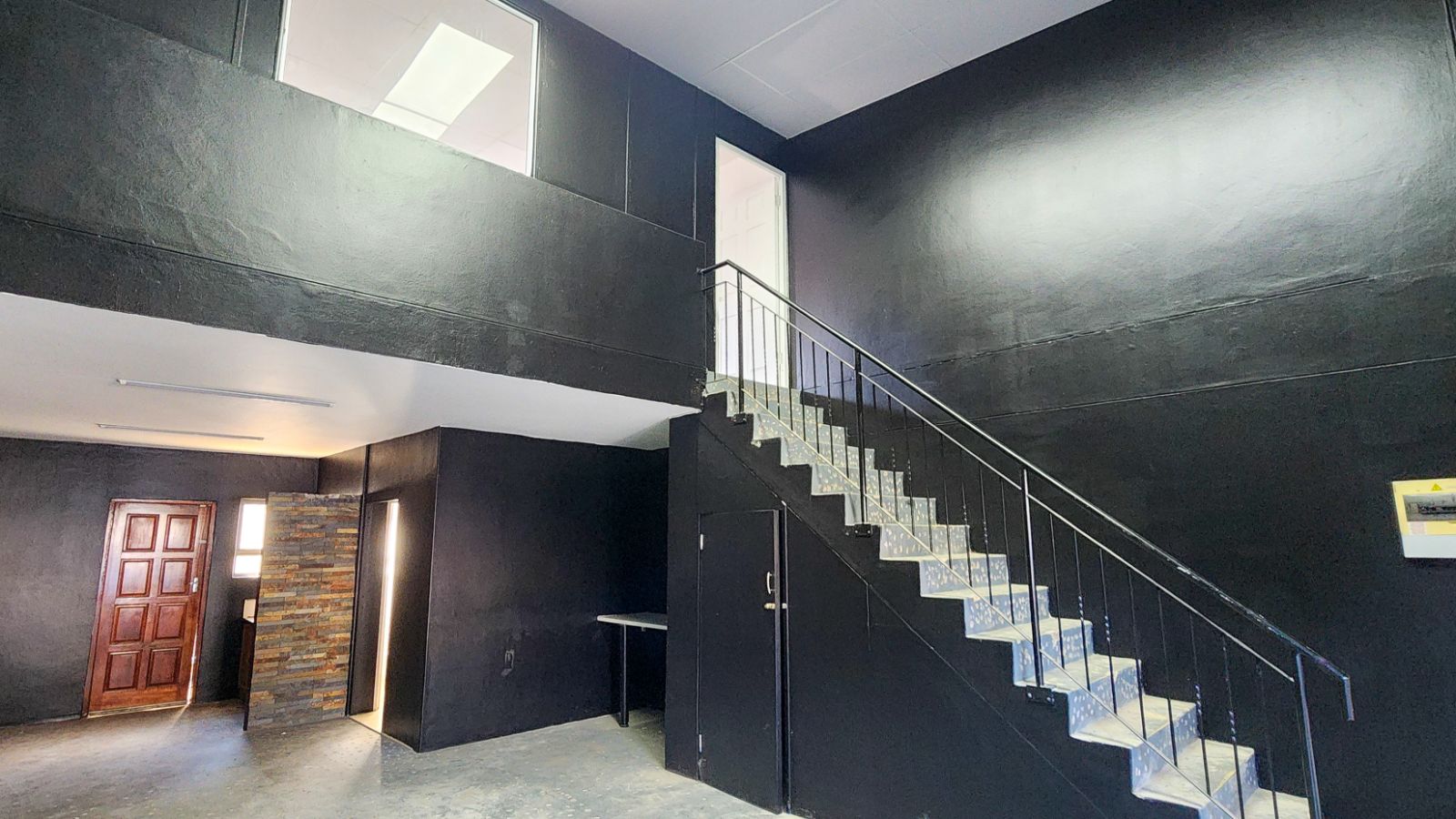 The space features an open-plan interior with a mezzanine level, offering additional office or storage space. A private kitchenette and dedicated toilet ensure convenience, making the unit fully self-contained and suitable for day-to-day business operations.