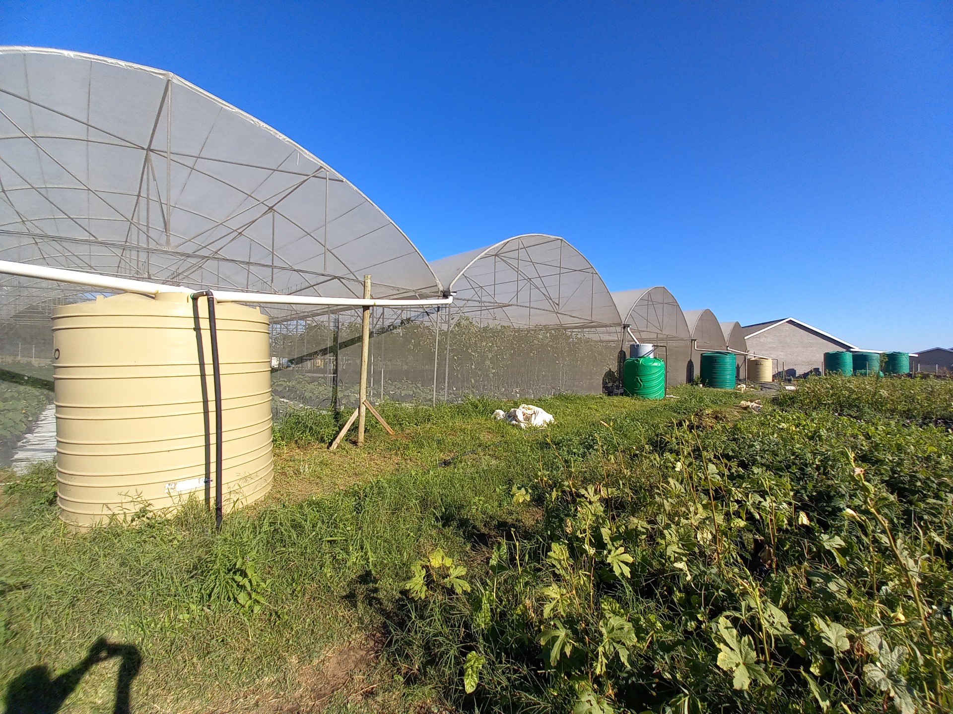With a borehole, and 5 Tunnels , 1000m2 of upright farming and space for a further 10 tunnels to be erected.
