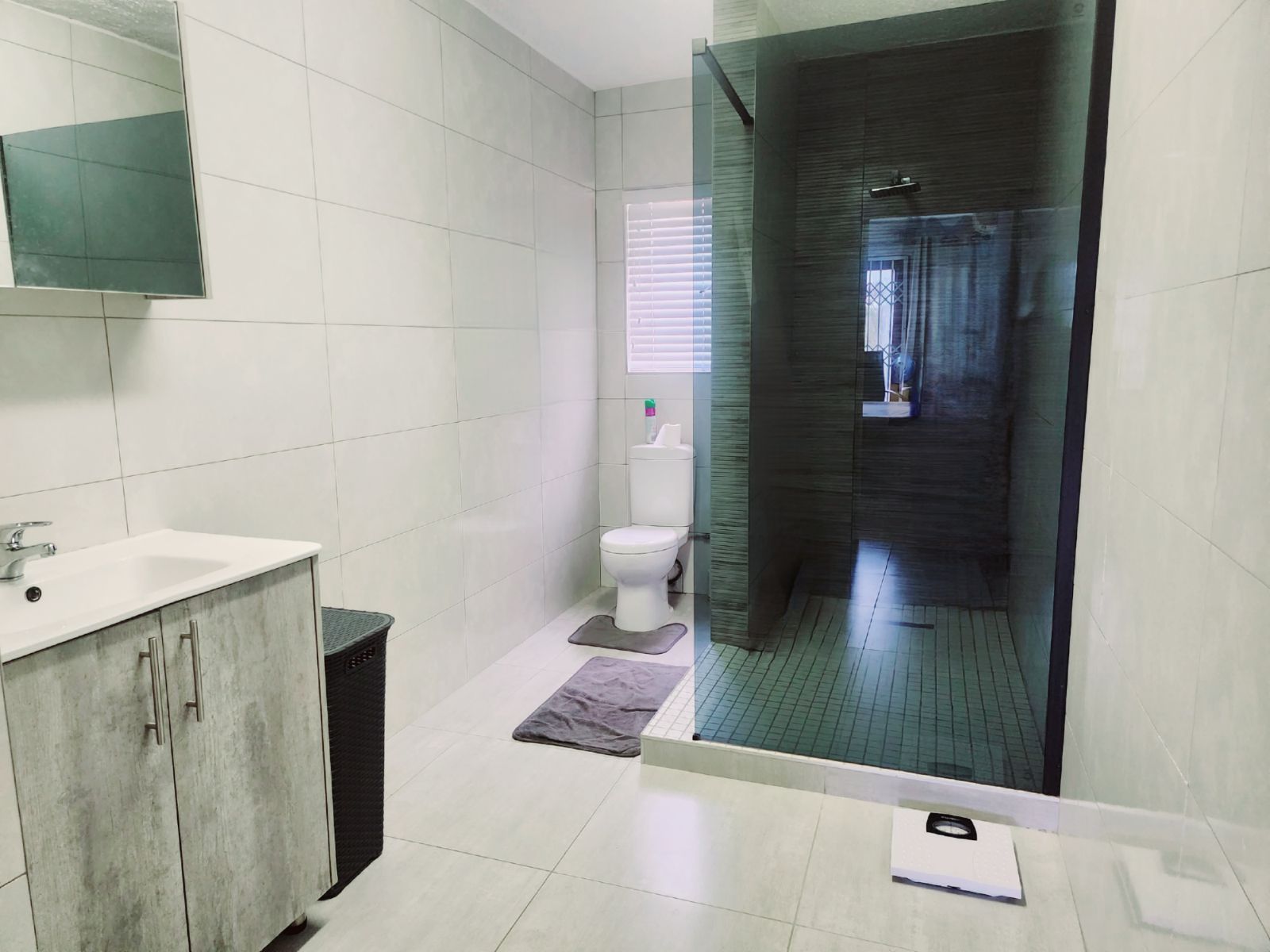 An open-plan kitchen, lounge and dining area that opens up onto a gorgeous covered patio with a partial sea view. 3 large bedrooms with ample cupboard space. The main bedroom has a modern and spacious en-suite bathroom and the very spacious family bathroom has a bath and shower.
