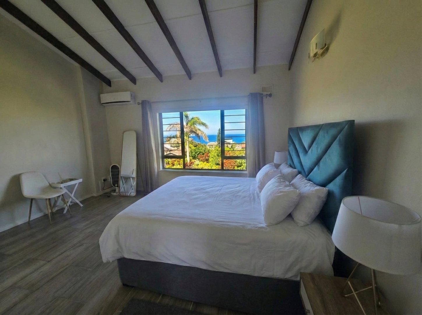 Upstairs, the home offers two spacious ensuite bedrooms, both fitted with air conditioning for year-round comfort. One of the bedrooms opens onto a private balcony, allowing you to wake up to stunning ocean views and gentle sea breezes.