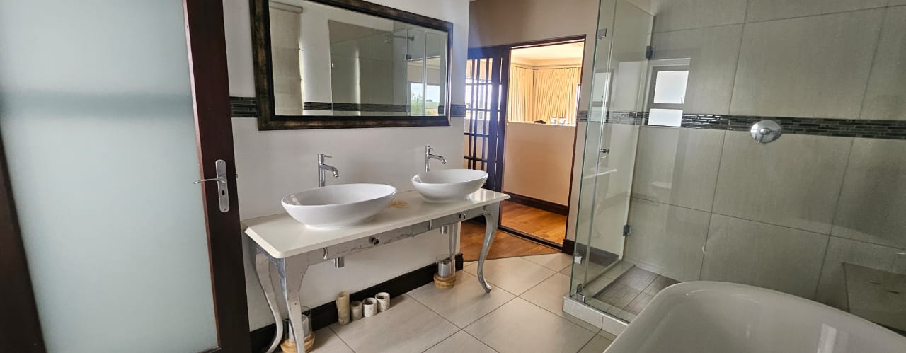 Experience luxury living in this stunning double-story house featuring 4 spacious bedrooms and 4 modern bathrooms. Enjoy the convenience of a sparkling pool and a water tank, ensuring comfort and peace of mind. The open-plan kitchen boasts a central island, scullery, and pantry, seamlessly connecting to the dining and lounge areas for effortless entertaining. The versatile 4th bedroom on the ground floor can easily serve as a study. Upstairs, unwind in the expansive lounge area, while the main bedroom offers a walk-in closet and access to a private balcony. Each bedroom is equipped with centralized air conditioning for year-round comfort, complemented by three motorized garages and a beautifully manicured garden, making this home a perfect blend of elegance and functionality.