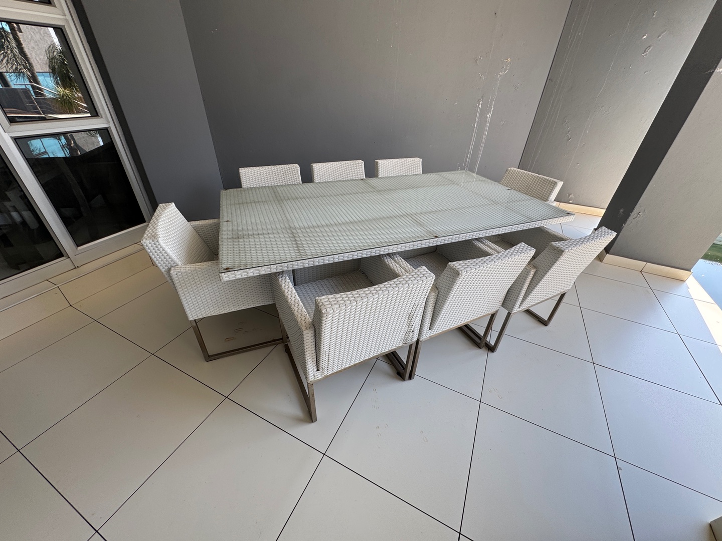 • Slate dining room with custom chess-match dining table