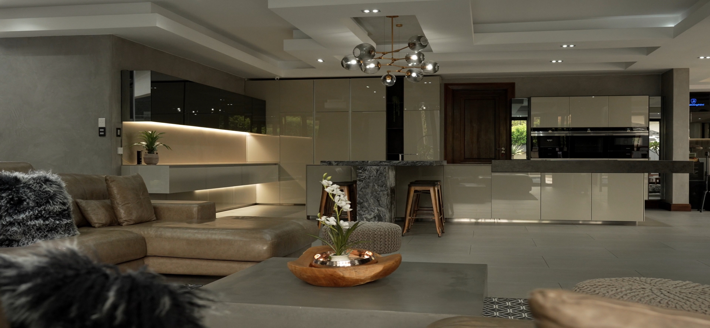 Step into a grand open-plan entrance hall that flows into a state of the art kitchen, perfect for culinary enthusiasts.