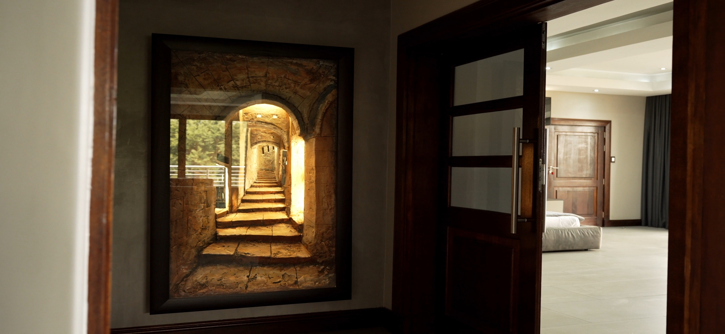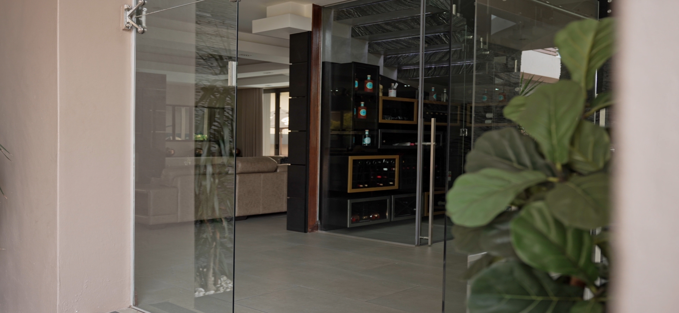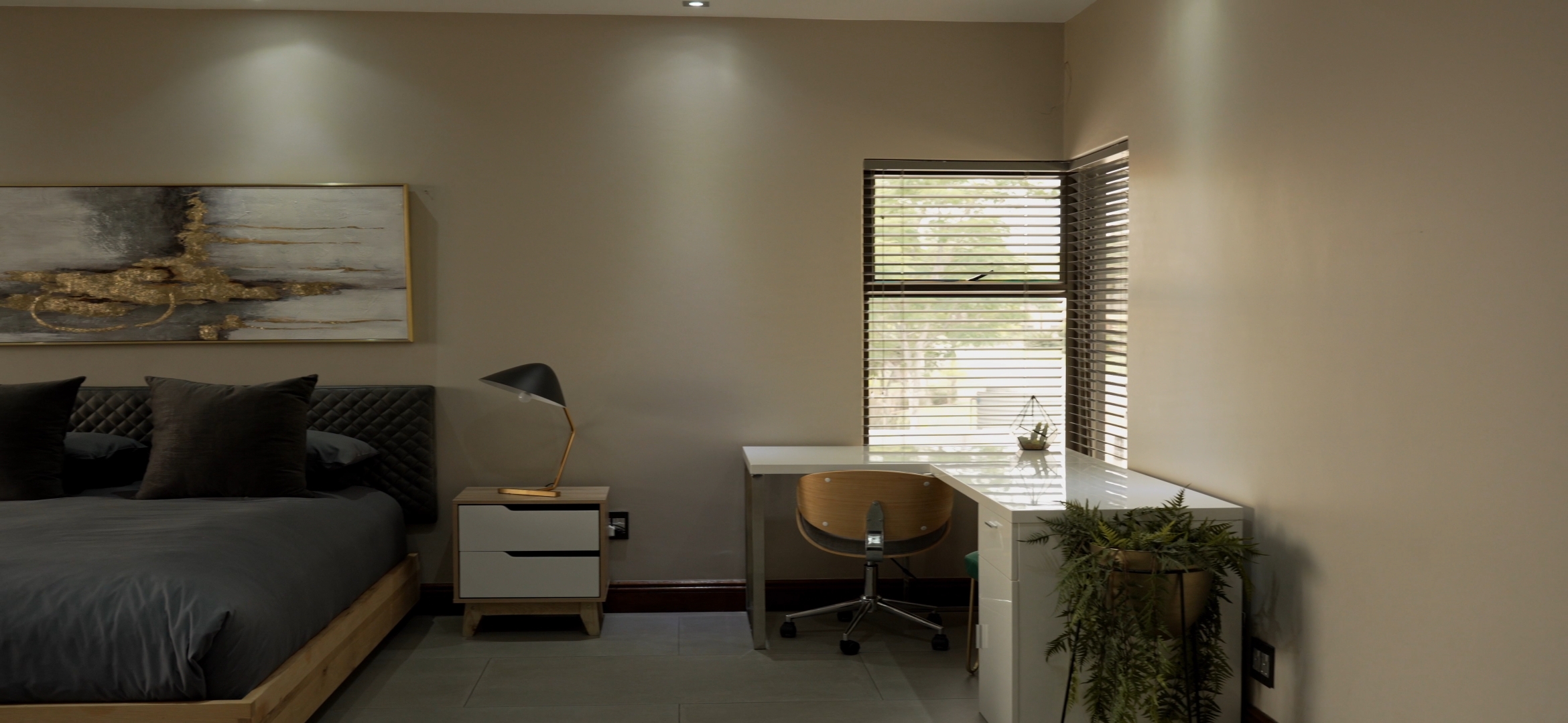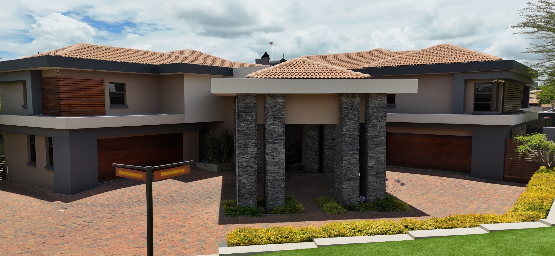 The study aswell as the fifth bedroom is downstairs and opens up with sliding doors to the pool area. The outdoor space is equally impressive, with a stunning pool, an outdoor boma, and a wrap-around balcony offering breathtaking views from the upstairs bedrooms. Additional highlights include four spacious garages with built-in shelves, a powerful generator, a back-up water supply, and a beautifully landscaped low-maintenance garden. This fully furnished home, designed by an architect, comes complete with exclusive custom furniture and even a golf cart, making it the perfect retreat for those who appreciate elegance and functionality.