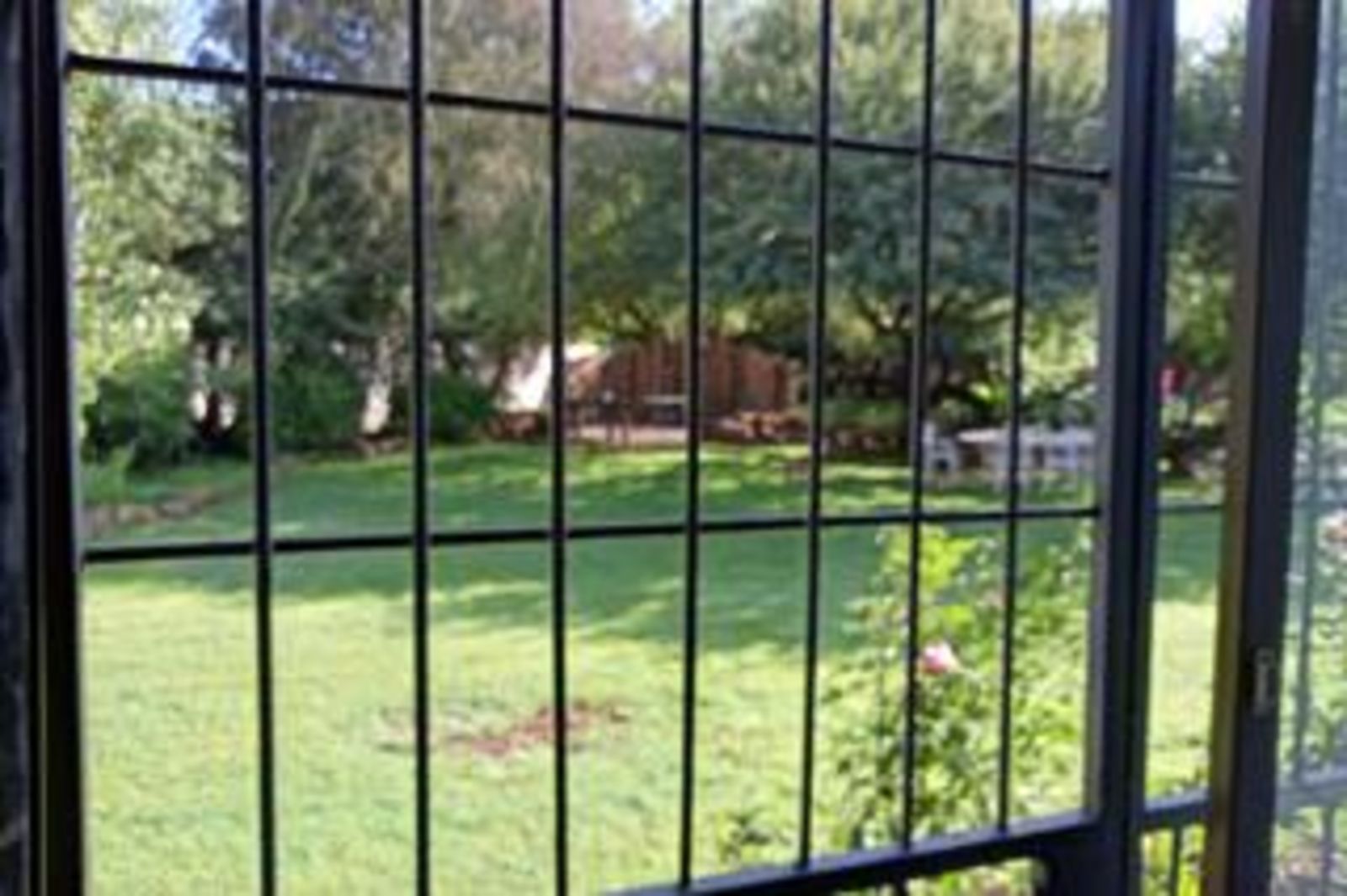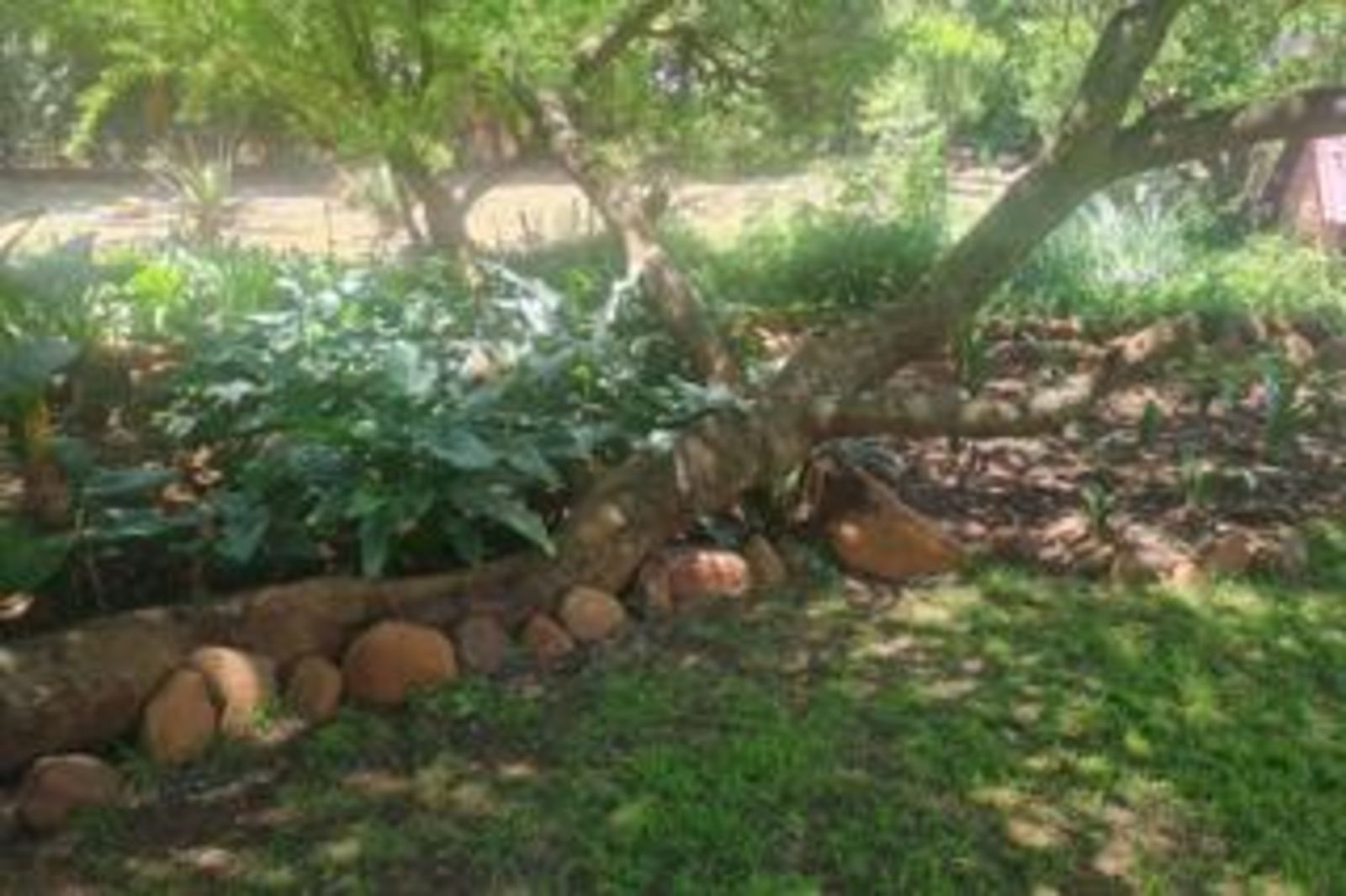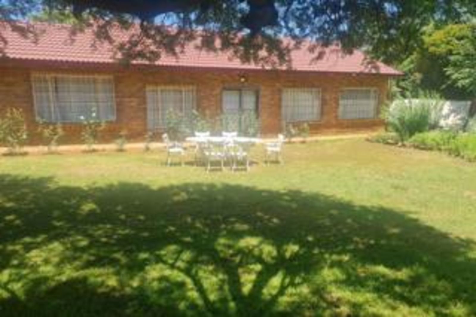 - Beautiful garden with large trees, roses, willow trees, and fruit trees