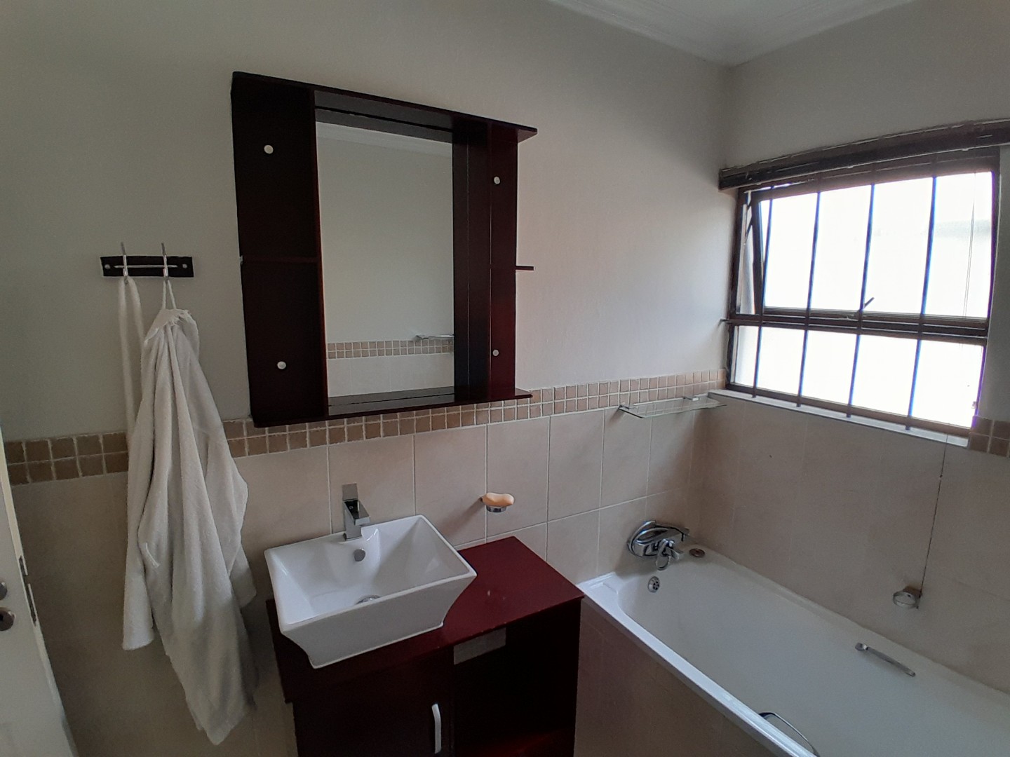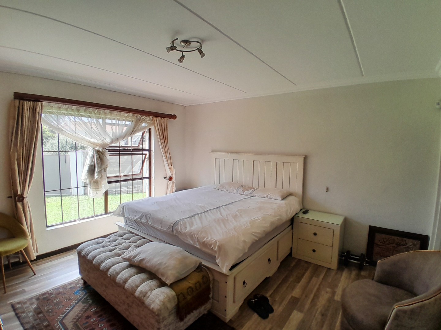 When summer comes, the sliding door takes you onto a large covered patio with built-in braai, while the children and pets run around the spacious garden having fun.