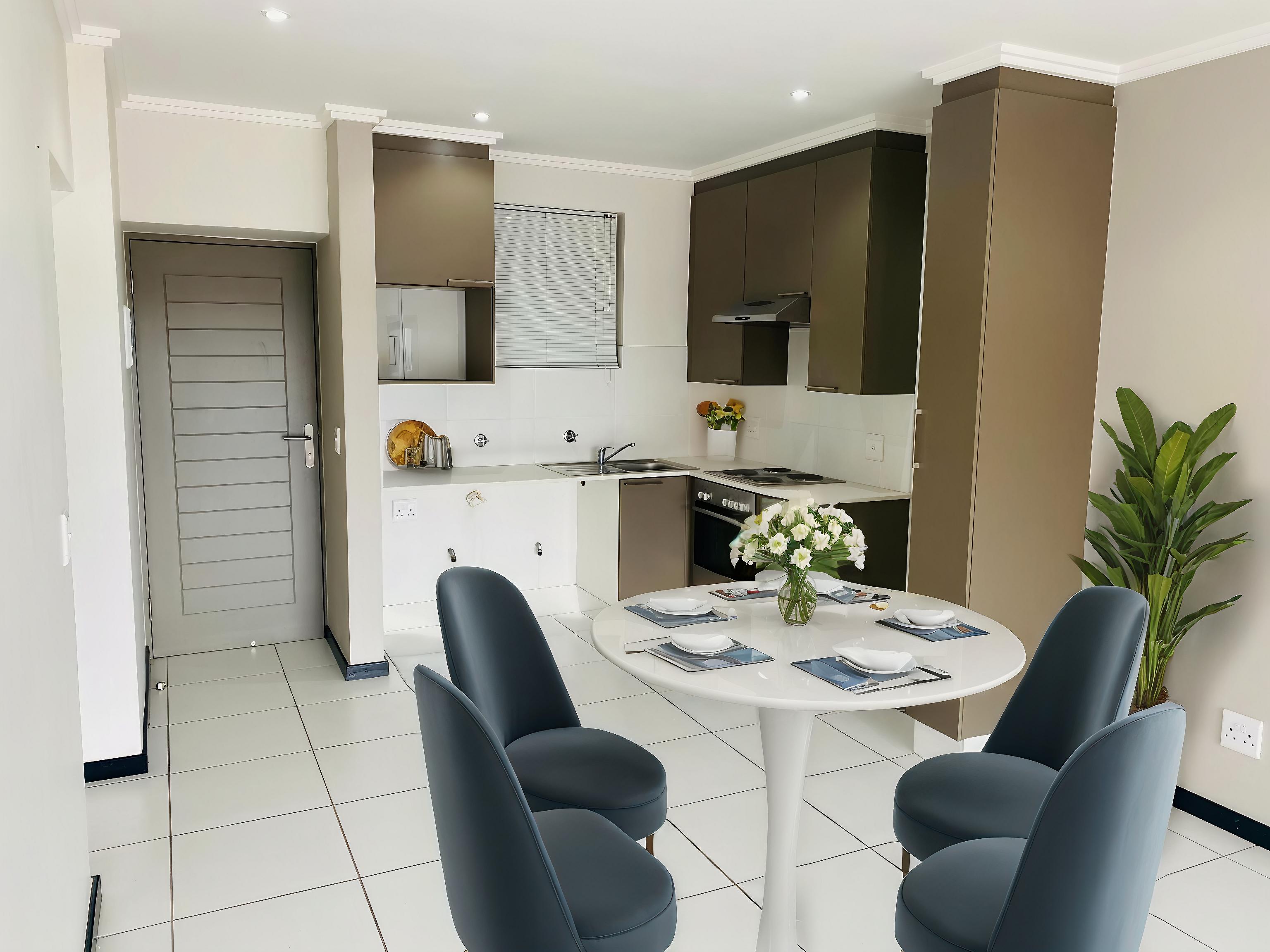 The open-plan kitchen and living area create a contemporary and functional design, ideal for hosting guests or unwinding after a busy day. An added bonus is the double balcony, providing a luxurious outdoor space to enjoy from the comfort of home.