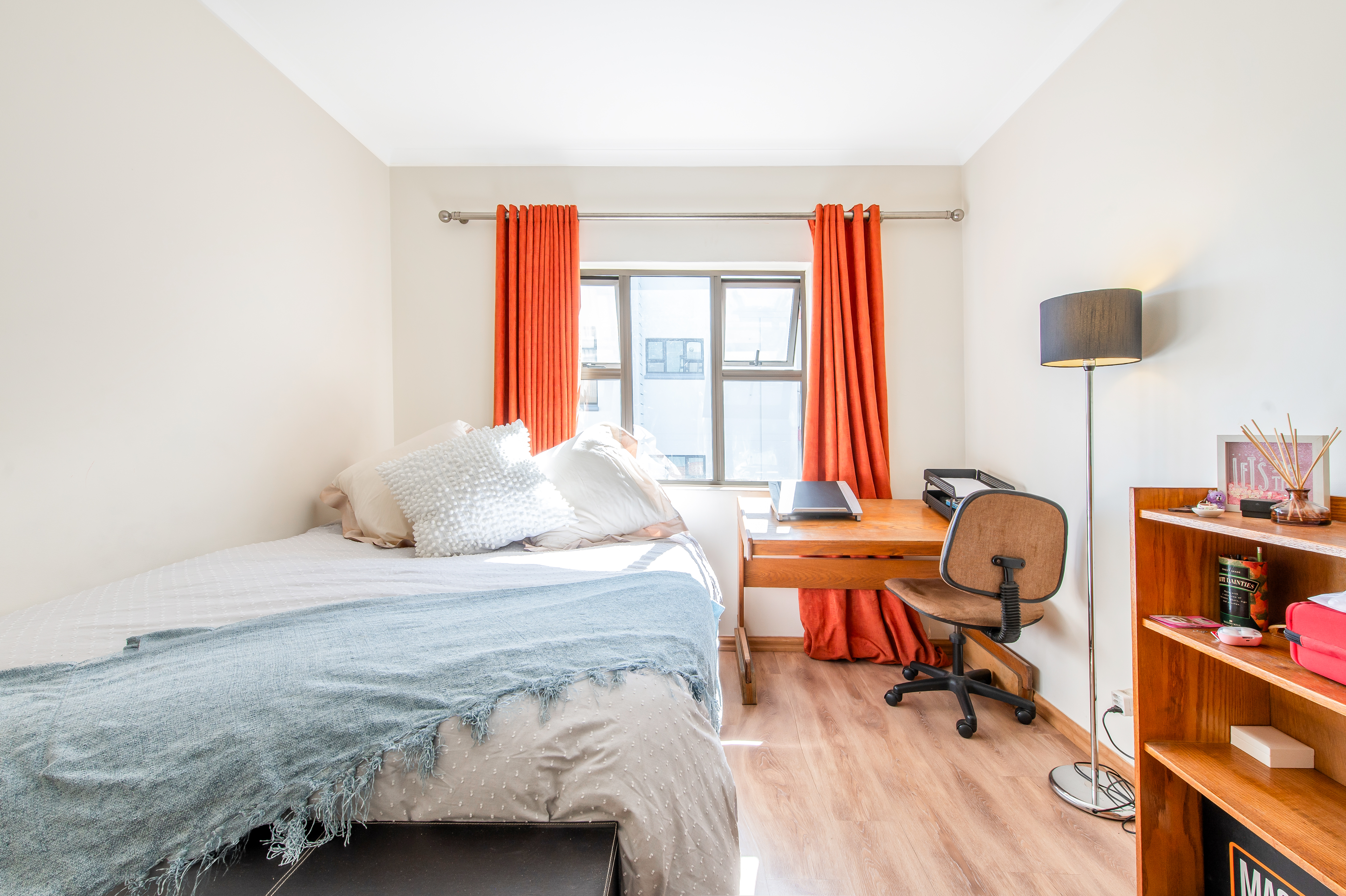 The bedroom fits in a large bed and has ample wardrobe space along with an adjoining fully fitted full bathroom.