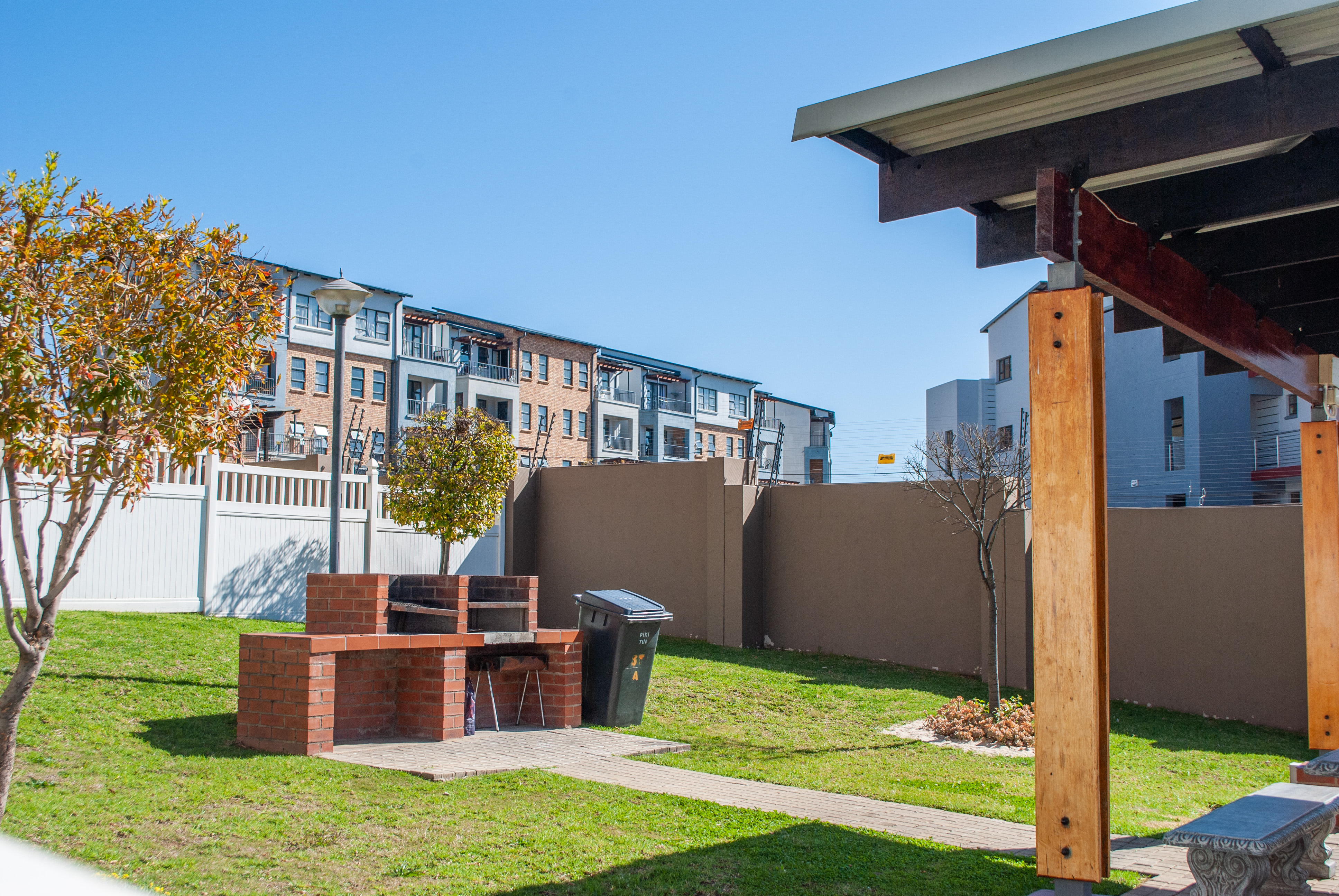 The apartment features a bright open-plan living area that flows seamlessly into a contemporary kitchen with ample cupboard space. Designed for easy living, this 1-bedroom apartment for sale is well-suited to first-time buyers, professionals, or investors looking for a high-demand rental asset in Barbeque Downs.