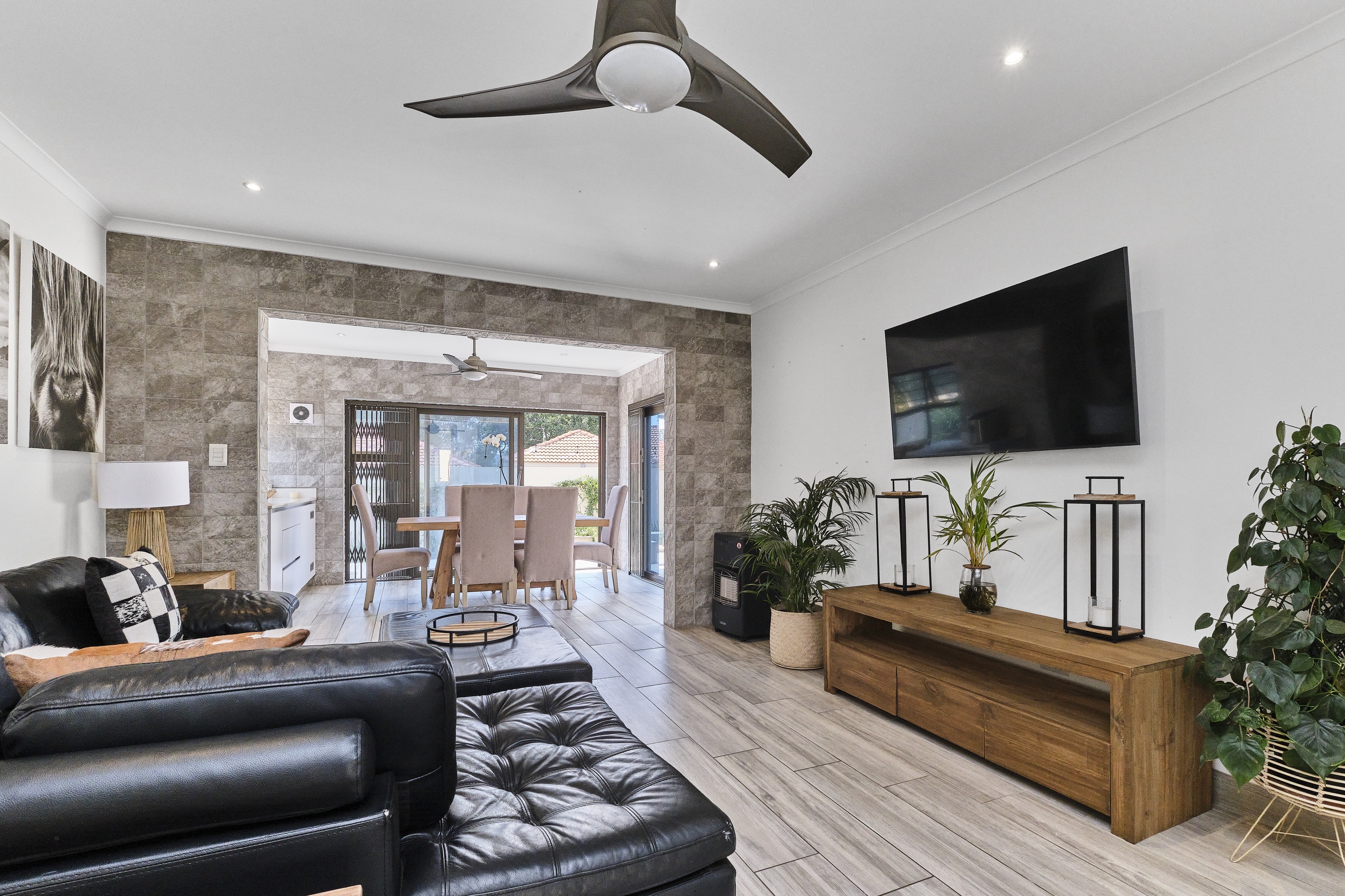 Step inside to discover a spacious and inviting layout, designed for both relaxation and entertaining. The house features elegant tile flooring throughout, providing both style and easy maintenance. The open-plan living areas are perfect for family gatherings or entertaining friends, while the large windows allow natural light to flood in, creating a warm and welcoming atmosphere.