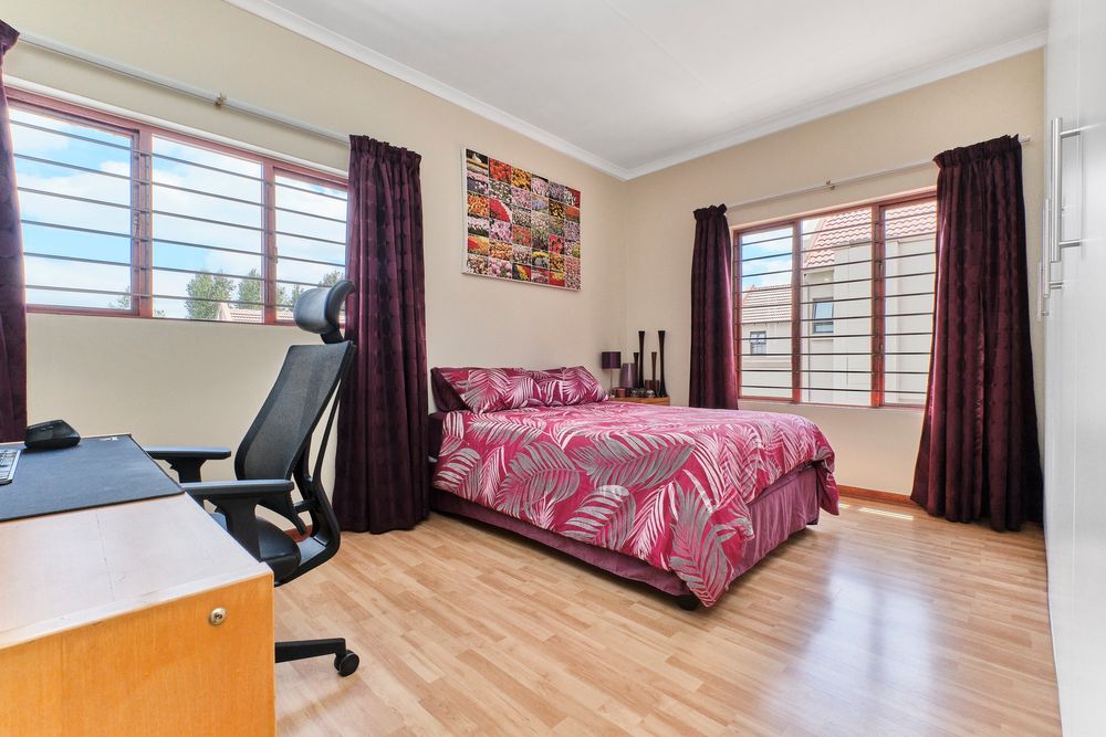 This exceptionally spacious 2-bedroom, 2.5-bathroom, north-facing double-storey home is situated in a full-title security estate in the heart of sought-after Barbeque Downs. The home is beautifully maintained and offers the perfect balance of space, comfort, and peace of mind. Thanks to its unique position within the estate, it enjoys clear, unobstructed views of the Kyalami Racetrack in the distance, with stunning sunset views from the main bedroom.