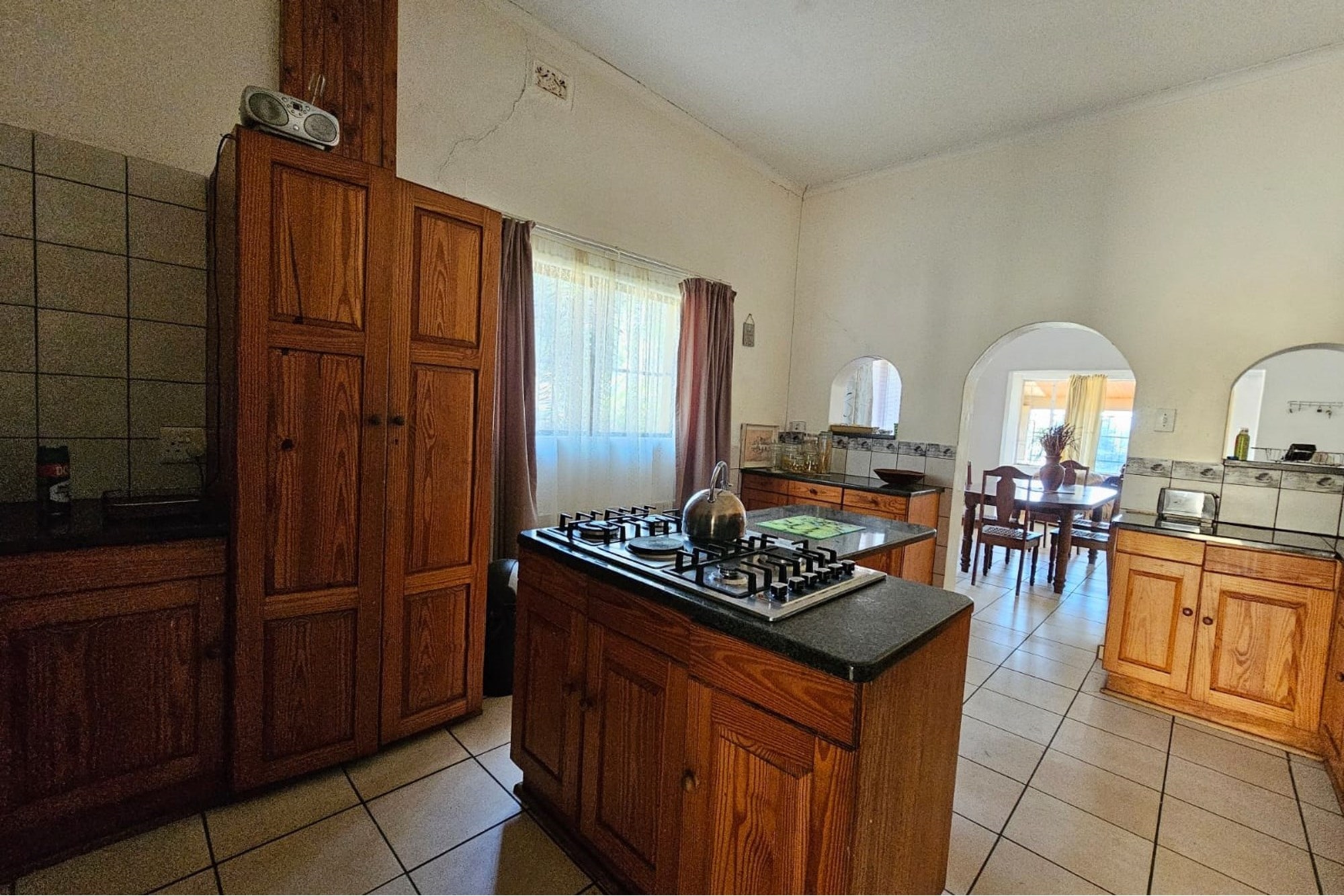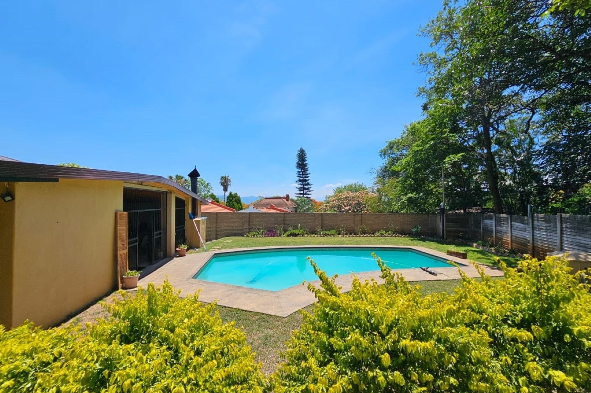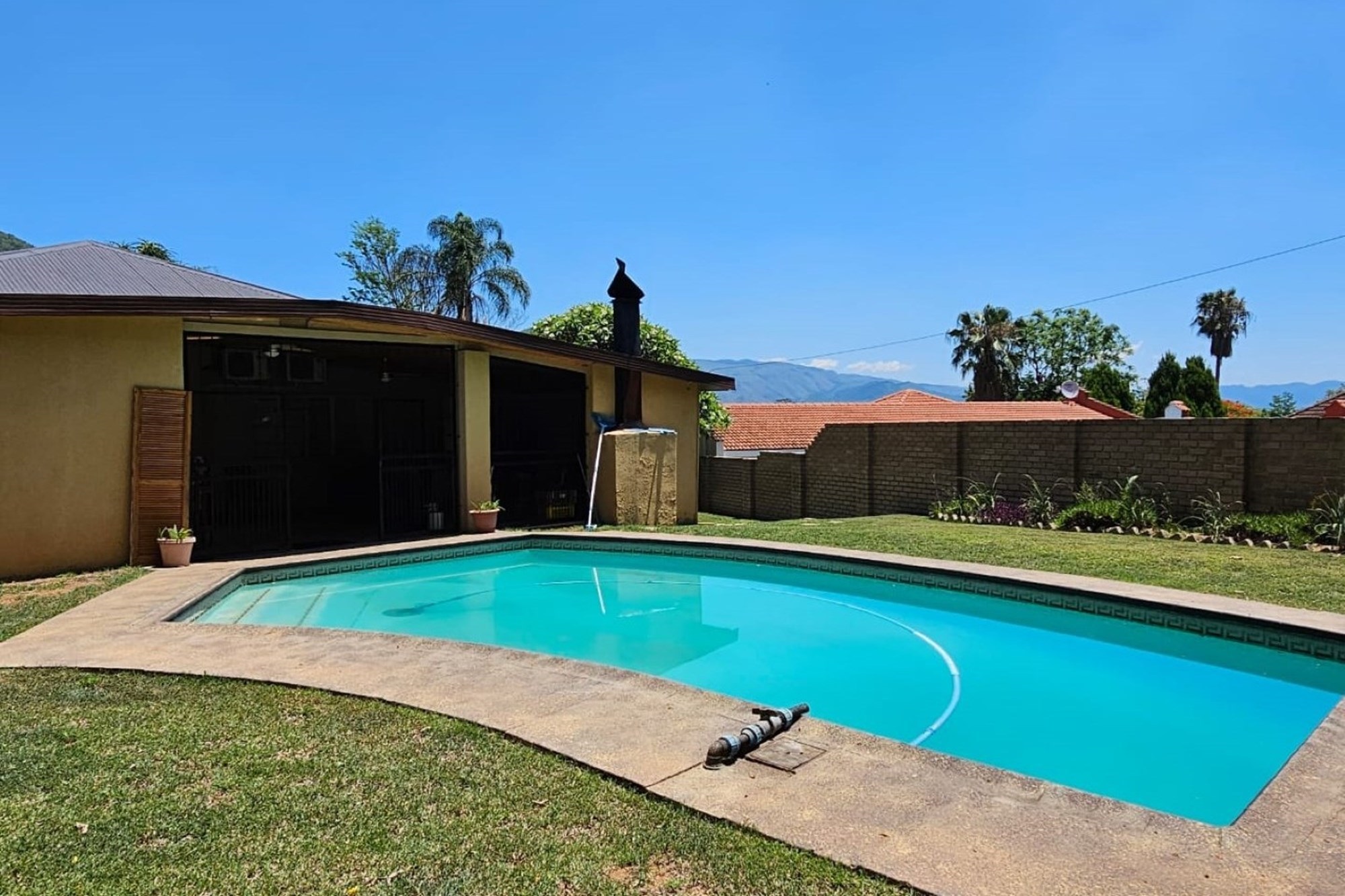 Spacious 3-Bedroom Home with Pool, Entertainment Area, Bachelors Flat and An Extra Large Double Garage Discover the potential of this generously sized 3-bedroom, 2-bathroom house, offering a perfect blend of space, convenience, and opportunity. Nestled in a desirable location close to town and schools, this property features: Key Features: Expansive Living Spaces: Enjoy the roomy, semi open-plan living and dining areas that provide ample space for family gatherings and relaxation. Well-Equipped Kitchen: The kitchen, while functional, offers a solid foundation for upgrades. It includes plenty of cabinet space and room for a dining nook or additional upgrades to create your dream culinary space. Luxurious Master Suite: The master bedroom is a tranquil retreat, featuring generous proportions and an en-suite bathroom. Two additional bedrooms offer comfort and flexibility for family or guests. Entertainment Paradise: , complete with a built-in braai (barbecue) and a sparkling pool. This outdoor oasis is ideal for hosting summer gatherings, weekend barbecues, or simply enjoying a sunny day with family and friends. Bachelors Flat: A separate bachelors flat adds versatility to the property. Perfect for guest accommodation, a home office, or rental income. Double Garage with Extra Space: The double garage is designed to accommodate up to 4 cars, providing ample space for vehicles and additional work space. Large Yard: The expansive yard is perfect for kids to play and dogs to roam freely. The large, open space offers endless possibilities for landscaping or outdoor activities. Opportunity for Improvement: While this home is structurally sound and well-located, it does require some TLC. With a bit of updating and personal touches, this property has the potential to be your dream home. Convenient Location: Situated close to town and reputable schools, this home offers easy access to essential amenities and daily conveniences. Extras:2 x 10 000 liter JOJO tanks Don’t miss out on this opportunity to create a personalized haven in a fantastic location. Schedule a viewing today and envision the possibilities for making this house your own!