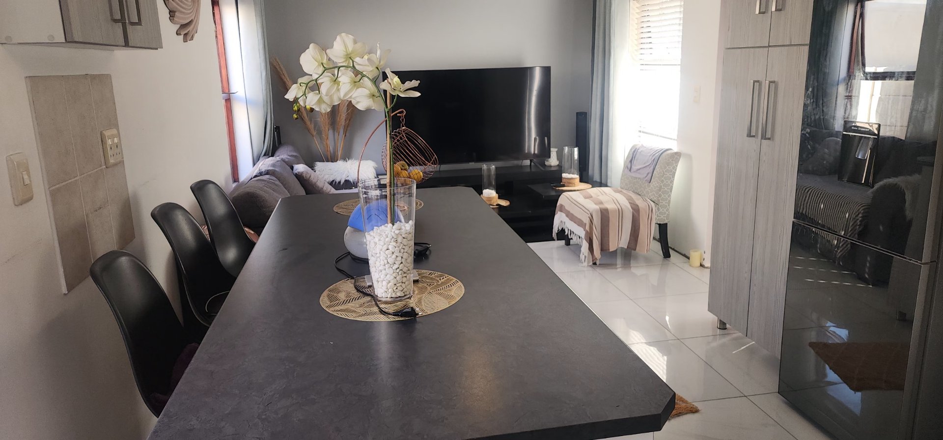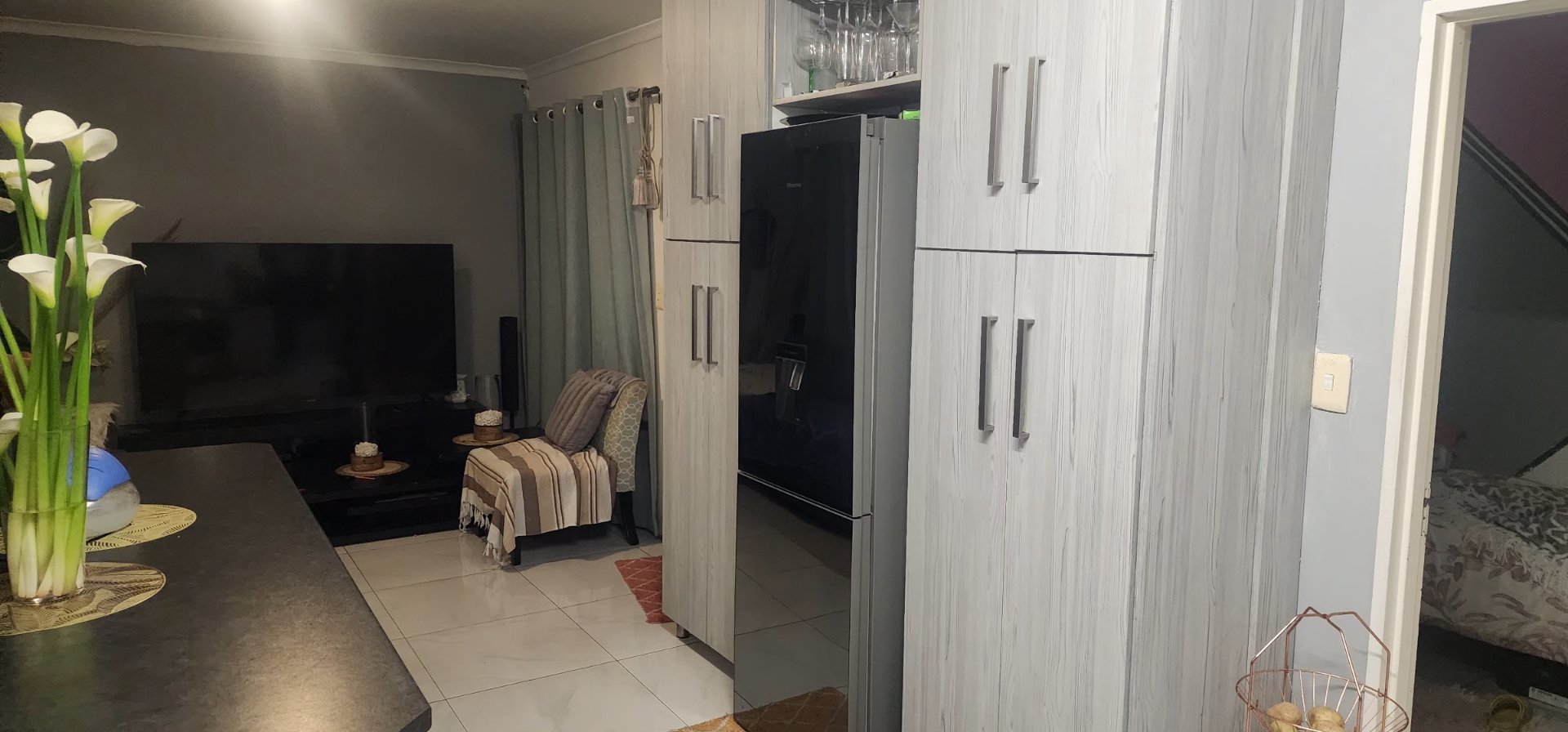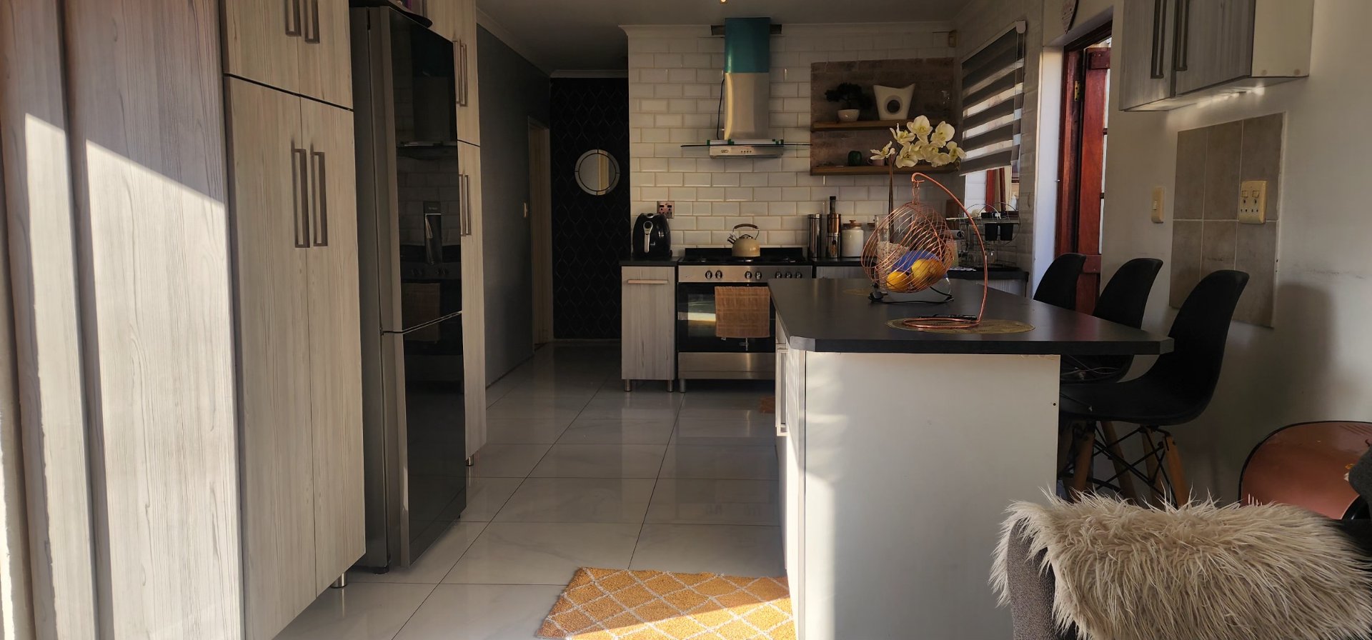 This lovely free standing 3-bedroom family home is situated in Bardale Security Village phase 1, and is centrally located. The open plan kitchen has lots of extra cupboards space with a cozy open plan dining and lounge area. All the bedrooms have built in cupboards and is tiled out, with newly fitted aluminium windows. This family home is paved with parking space for two cars in front of the house.