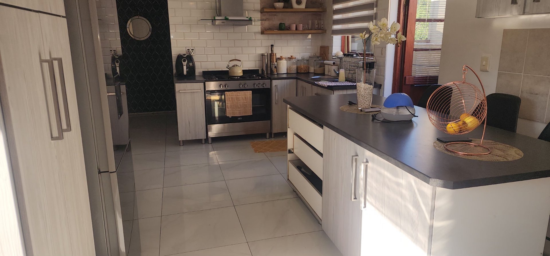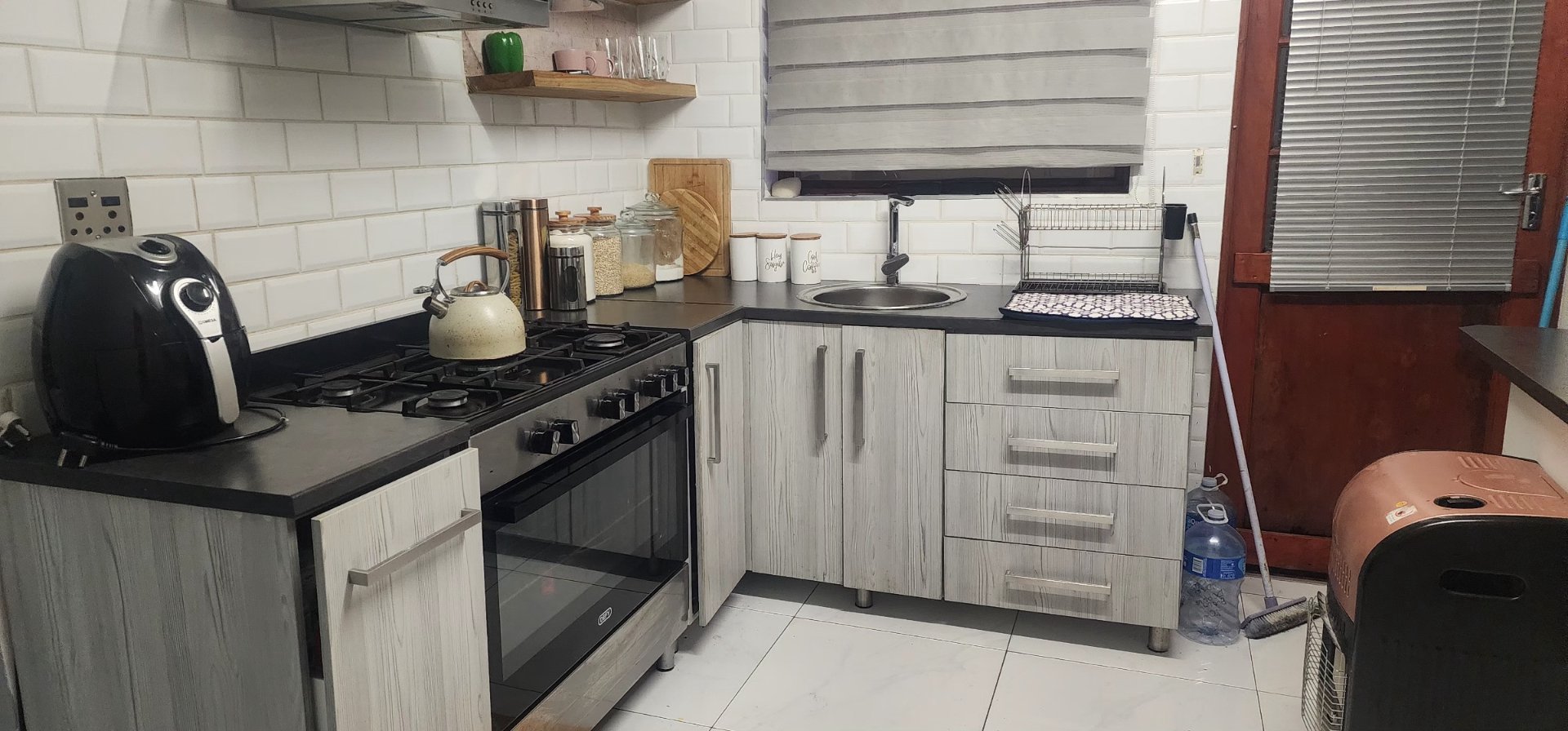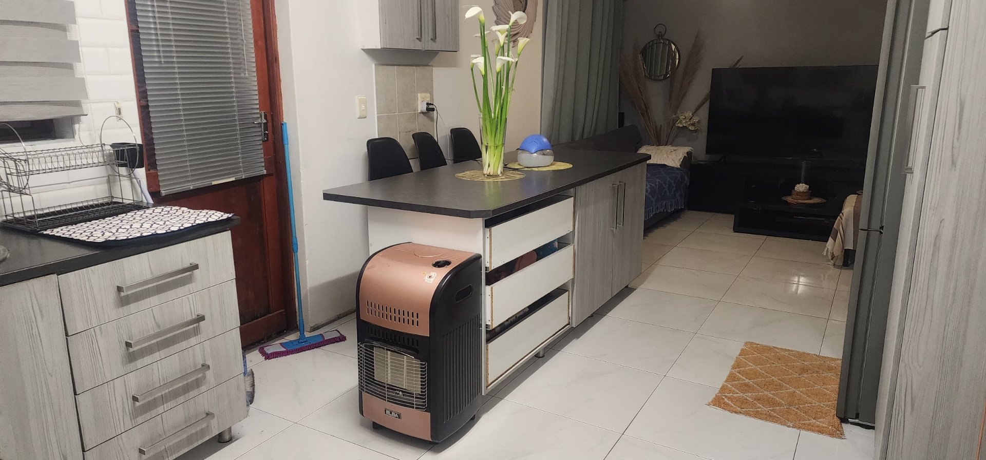 This lovely free standing 3-bedroom family home is situated in Bardale Security Village phase 1, and is centrally located. The open plan kitchen has lots of extra cupboards space with a cozy open plan dining and lounge area. All the bedrooms have built in cupboards and is tiled out, with newly fitted aluminium windows. This family home is paved with parking space for two cars in front of the house.