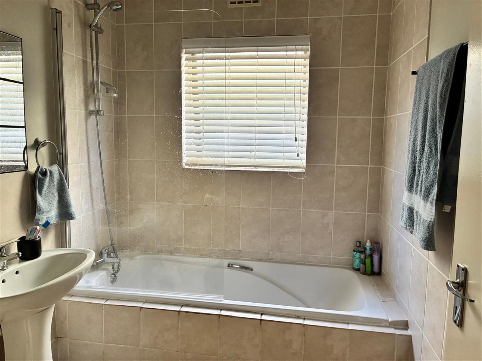 A full family bathroom includes a bath, handbasin, toilet, and a shower over the bath with a shower screen.