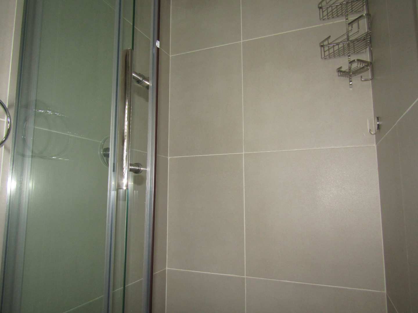 The apartment offers ample storage with additional built-in cupboards, ensuring you have all the space you need. Your safety is a priority, with a security gate installed at the front door. The kitchen is a chef’s dream, equipped with granite countertops, space for a double fridge, double sink, plenty of built-in cupboards, and room for two plumbed appliances. A gas hob, under-counter oven, and extractor fan complete this modern culinary space.